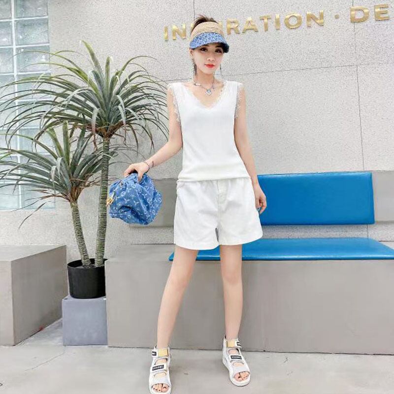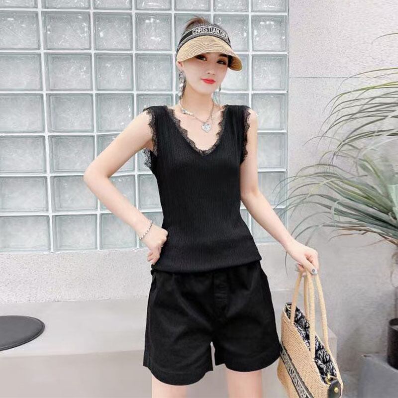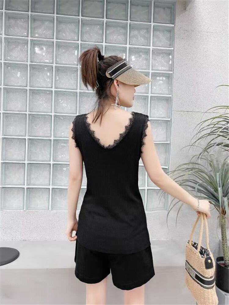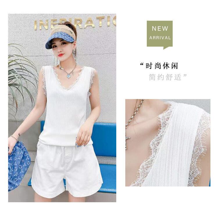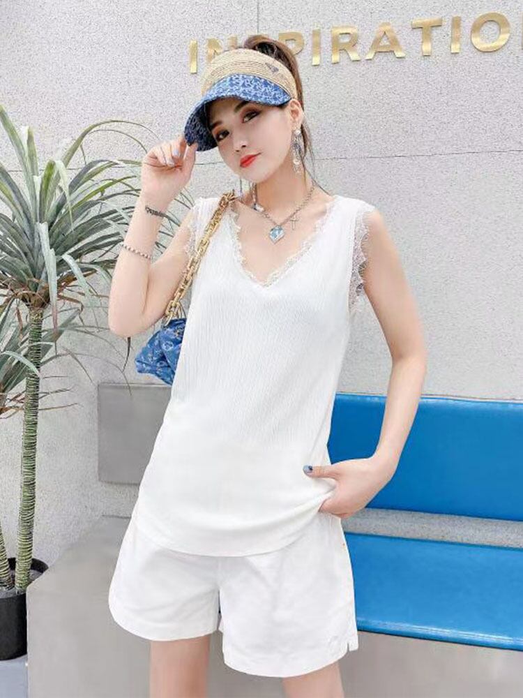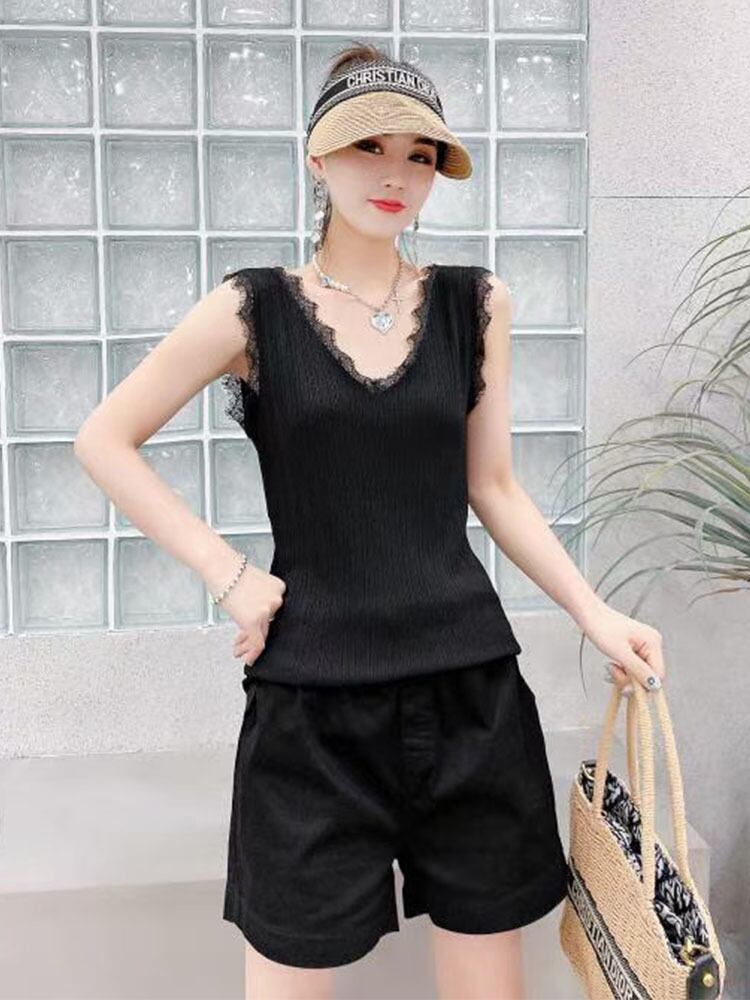 サマースタイルレースノースリーブトップス 大きめサイズ 夏物 Vネック ミックスインファッション70167379697