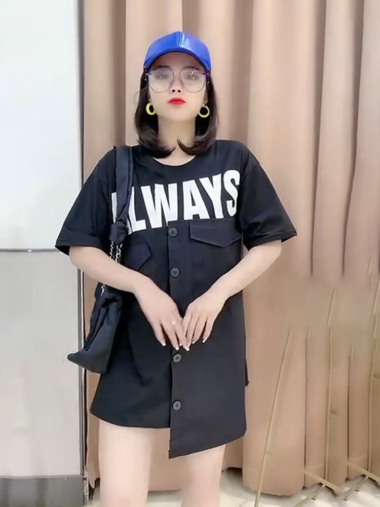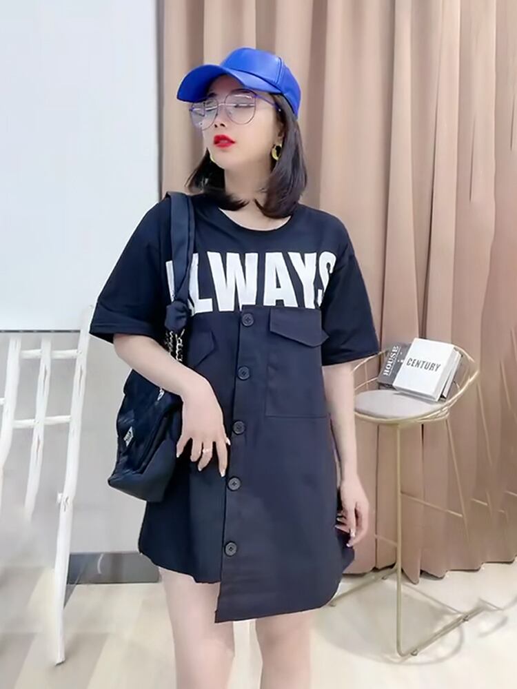 Tシャツ ロングルーズ薄手スタイルトップス 大きめサイズ ミックスインファッション60774819996