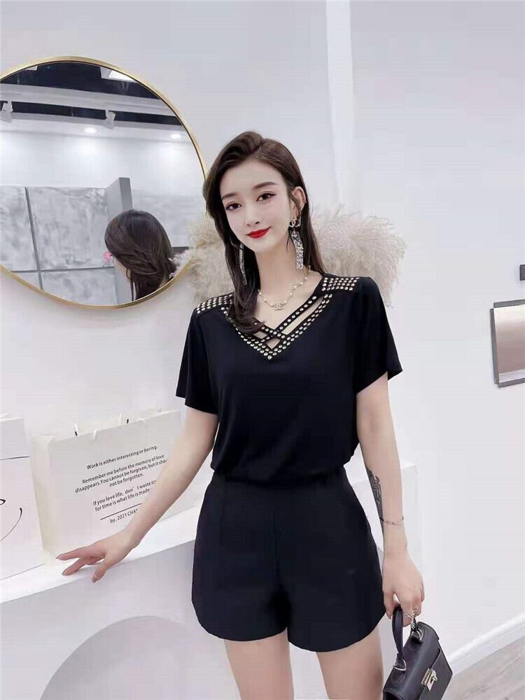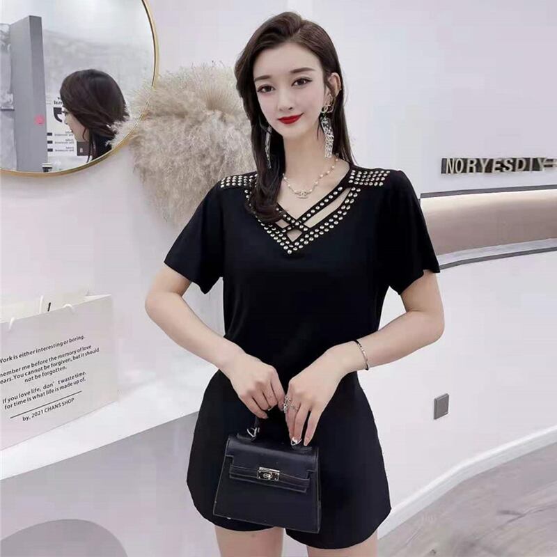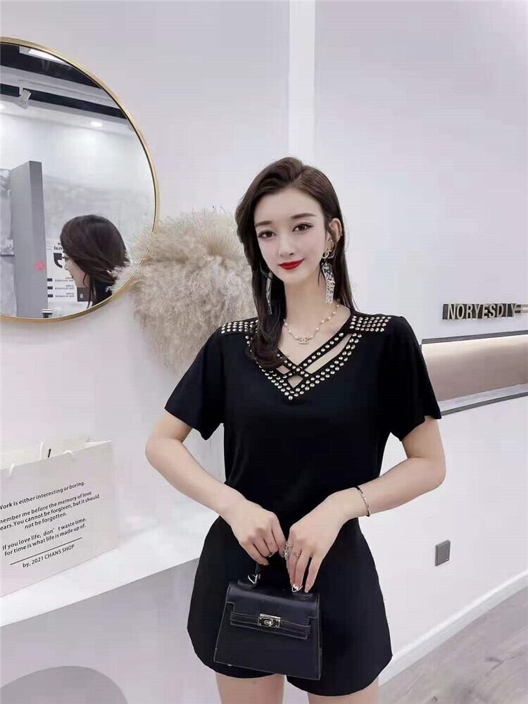 サマーVネッククロスTシャツ トップス 大きめサイズ 夏物 ミックスインファッション71963690672
