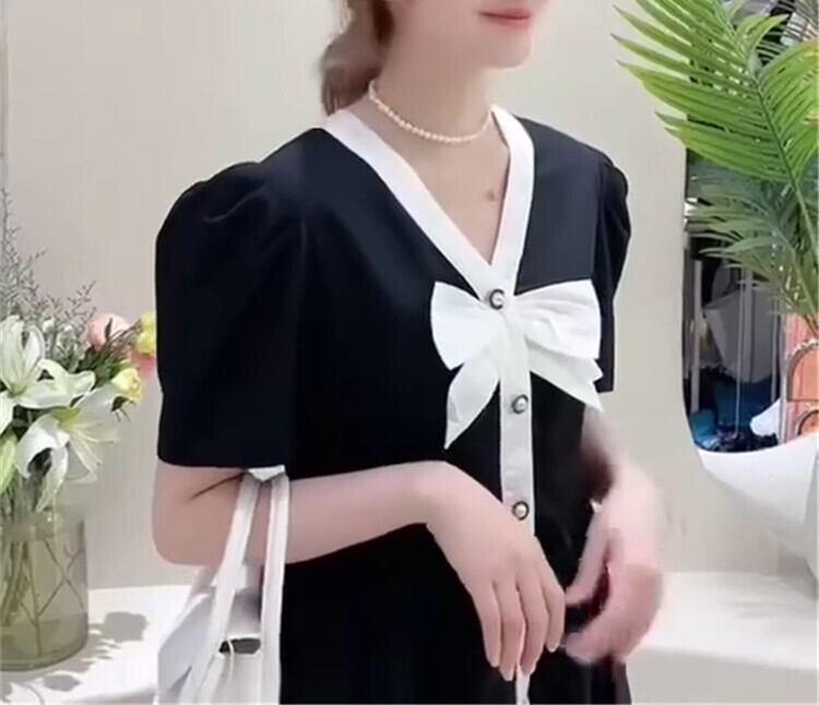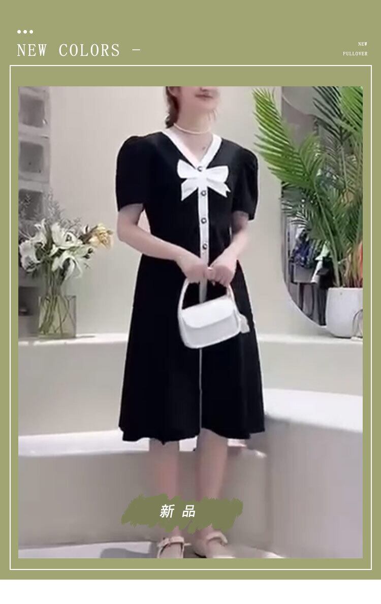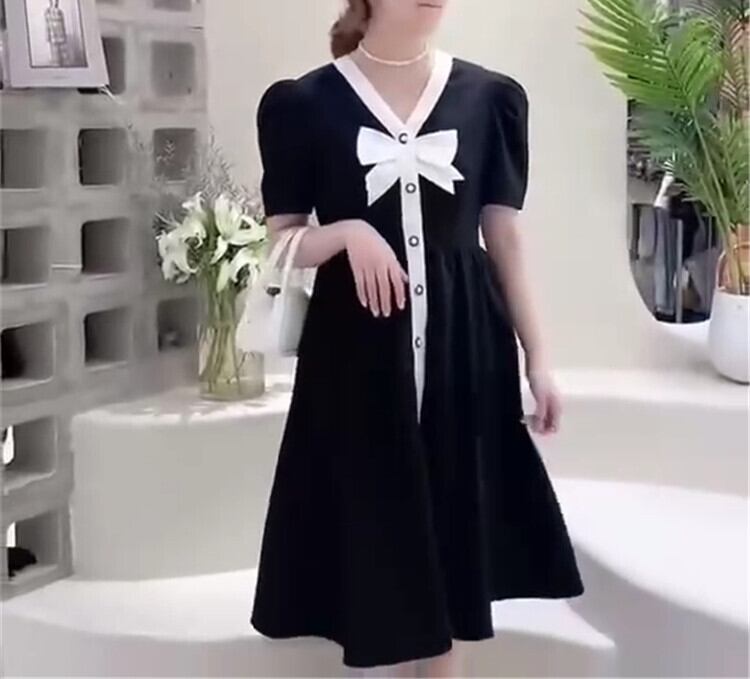 サマースタイルVネックリボンホワイトドレス 大きめサイズ 夏物 ミックスインファッション22853561373