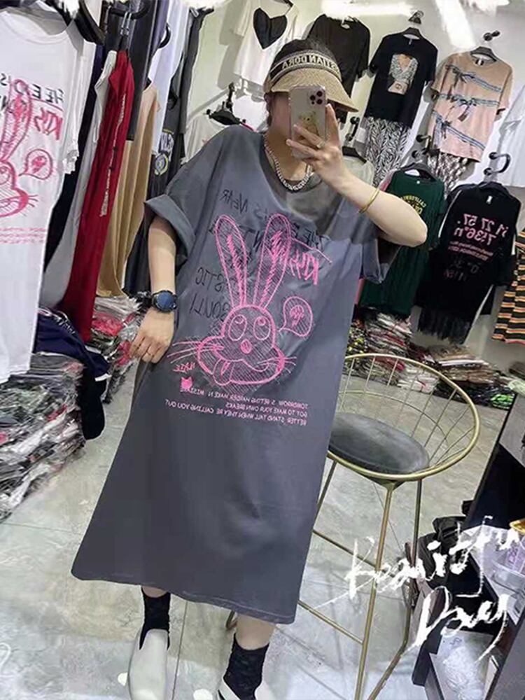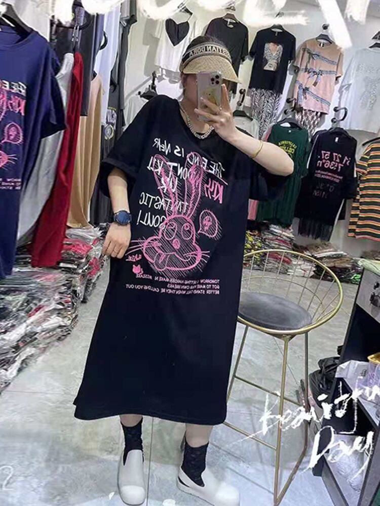 サマードレス Tシャツ スカート 大きめサイズ 夏物 ミックスインファッション34810725661