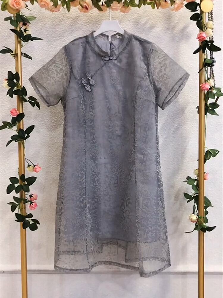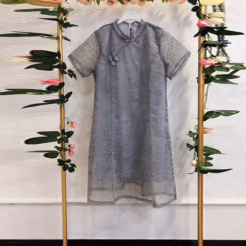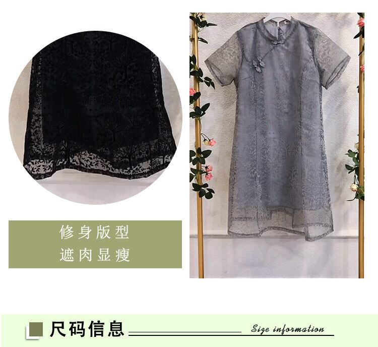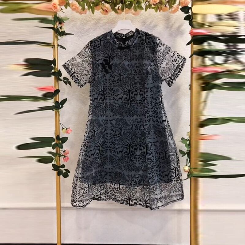 スタンドカラーカラーバックルシフォンドレス サマーFlowerデザイン スカート 大きめサイズ 夏物 フラワーデザイン ミックスインファッション59928454735