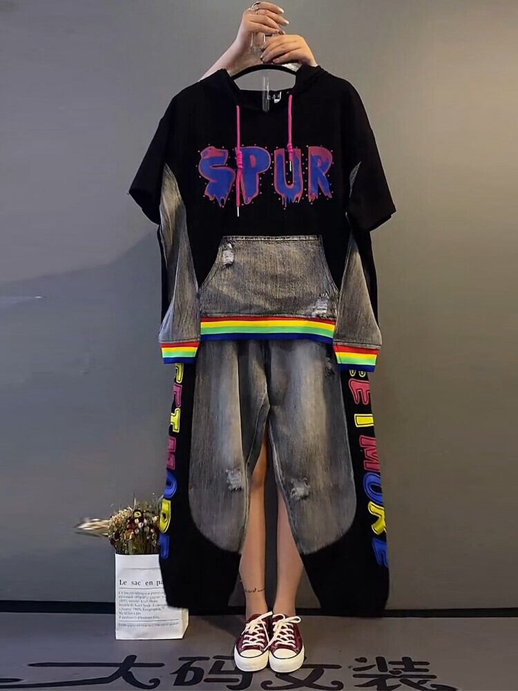 フードジャケット カラーカジュアルパンツ ストリート 大きめサイズ ミックスインファッション21894865589