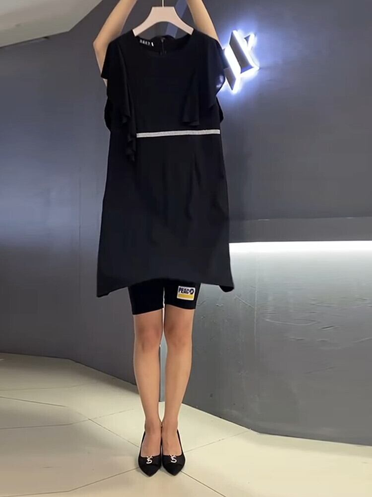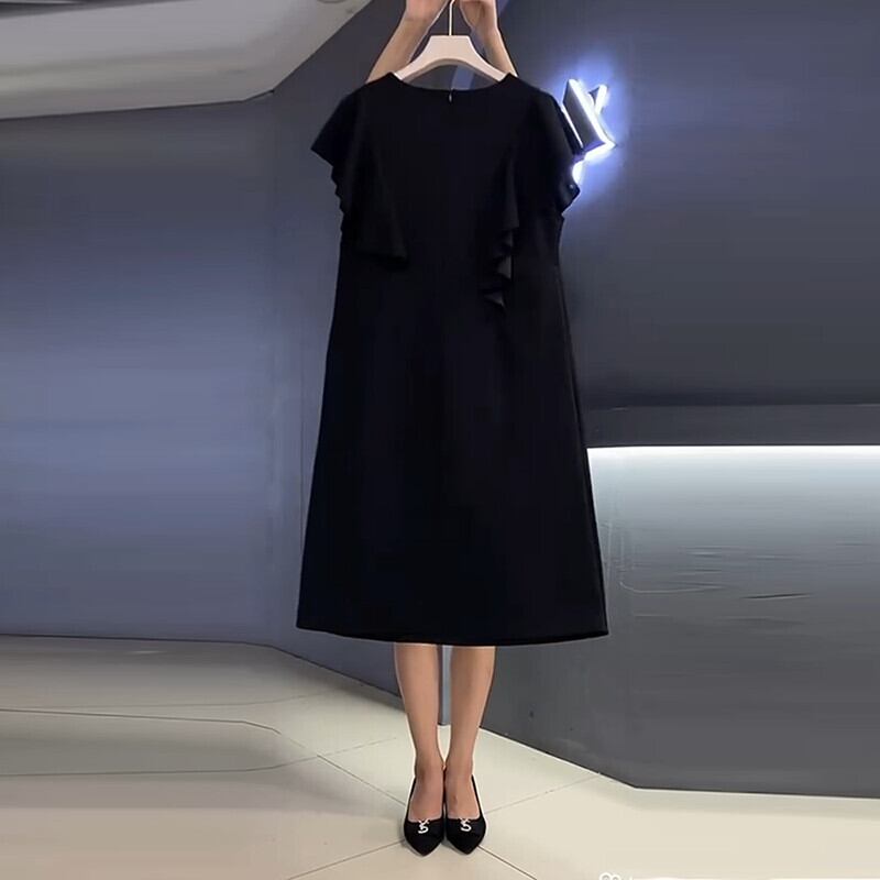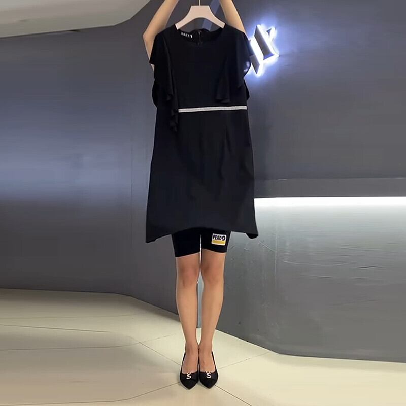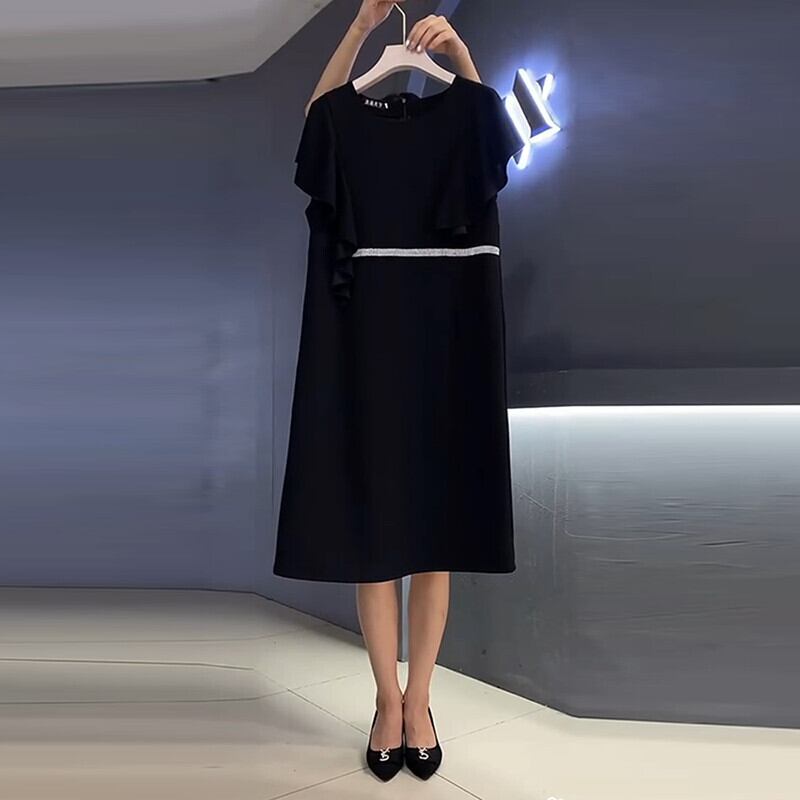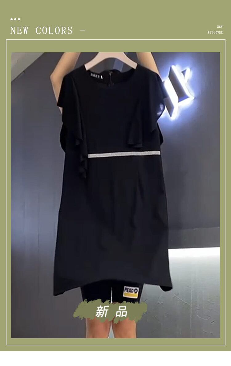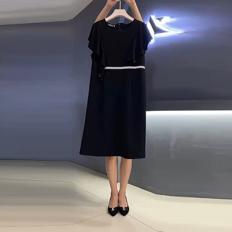 サマードレス ラウンドネックスカート 大きめサイズ 夏物 Oネック ミックスインファッション46969383641