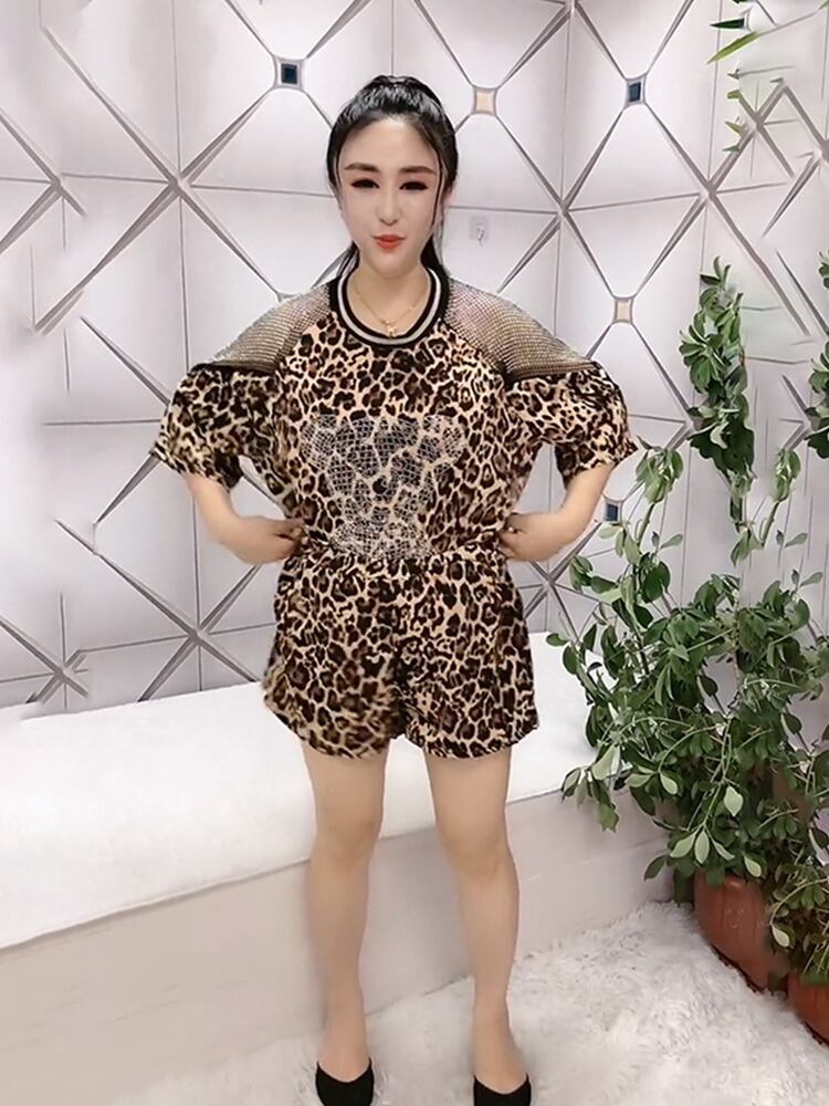 薄手レオパードプリント柄ショーツ サマードレス スタイル レッド 大きめサイズ 夏物 ブルマー ミックスインファッション36846273434