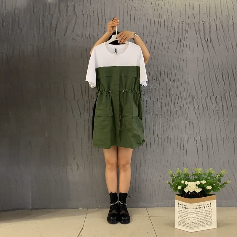 サマーギャザースカート ルーズドレス 大きめサイズ 夏物 ステッチ ミックスインファッション88431890694