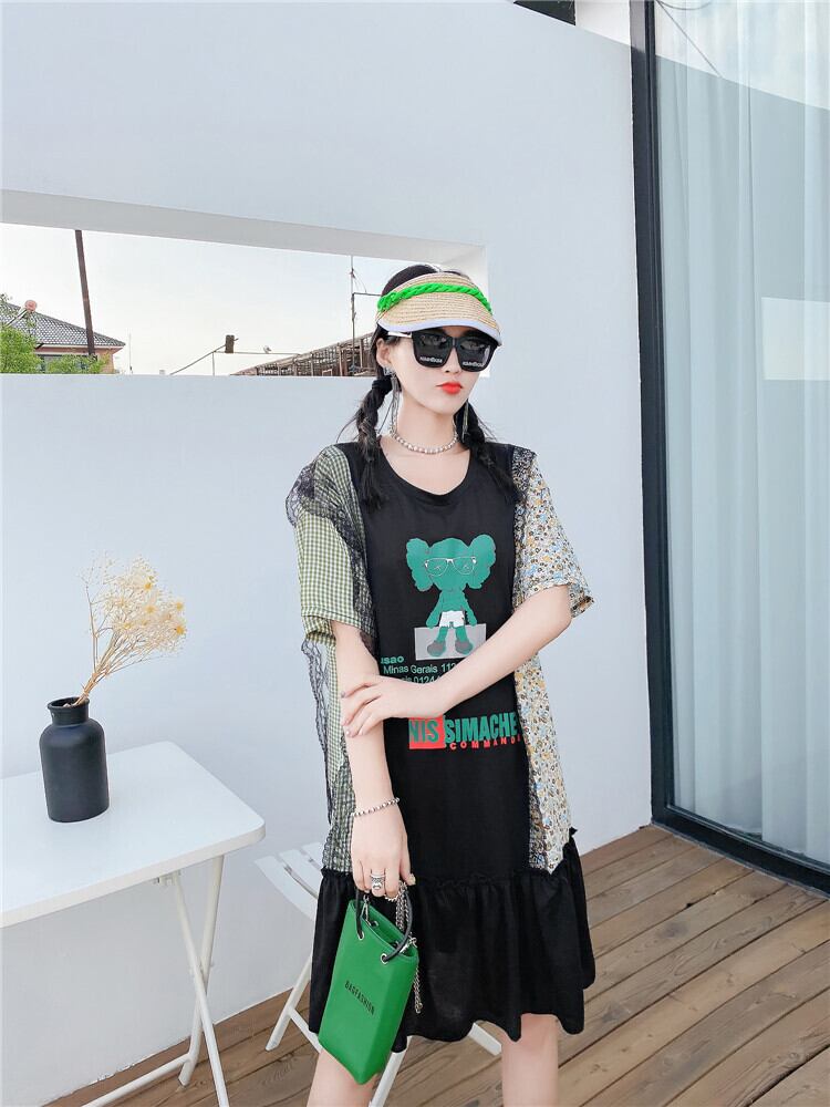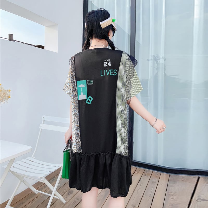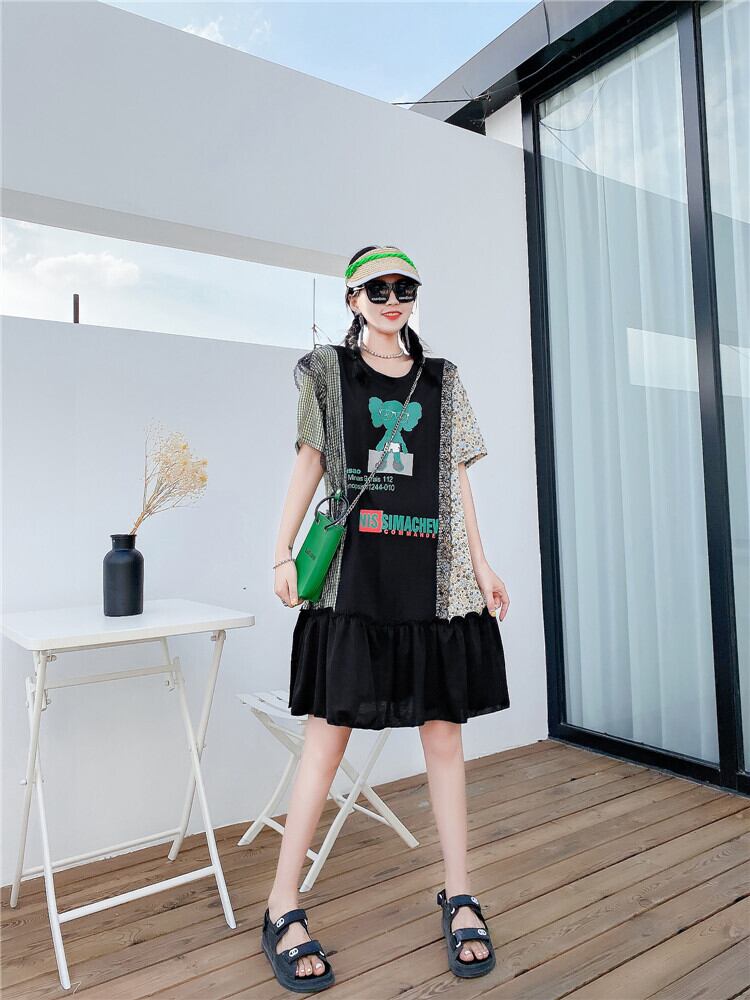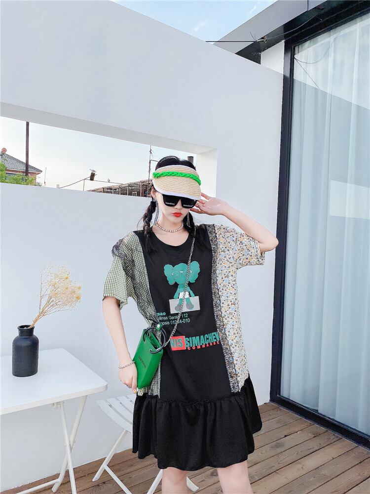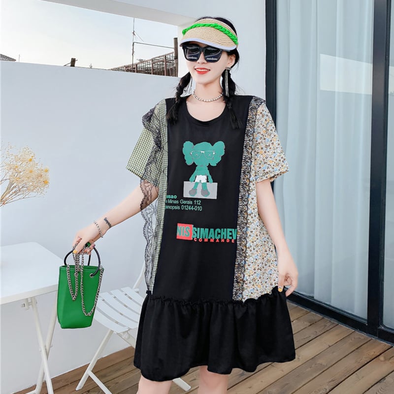 サマードレス ルーズトップス 大きめサイズ 夏物 ミックスインファッション17022527660