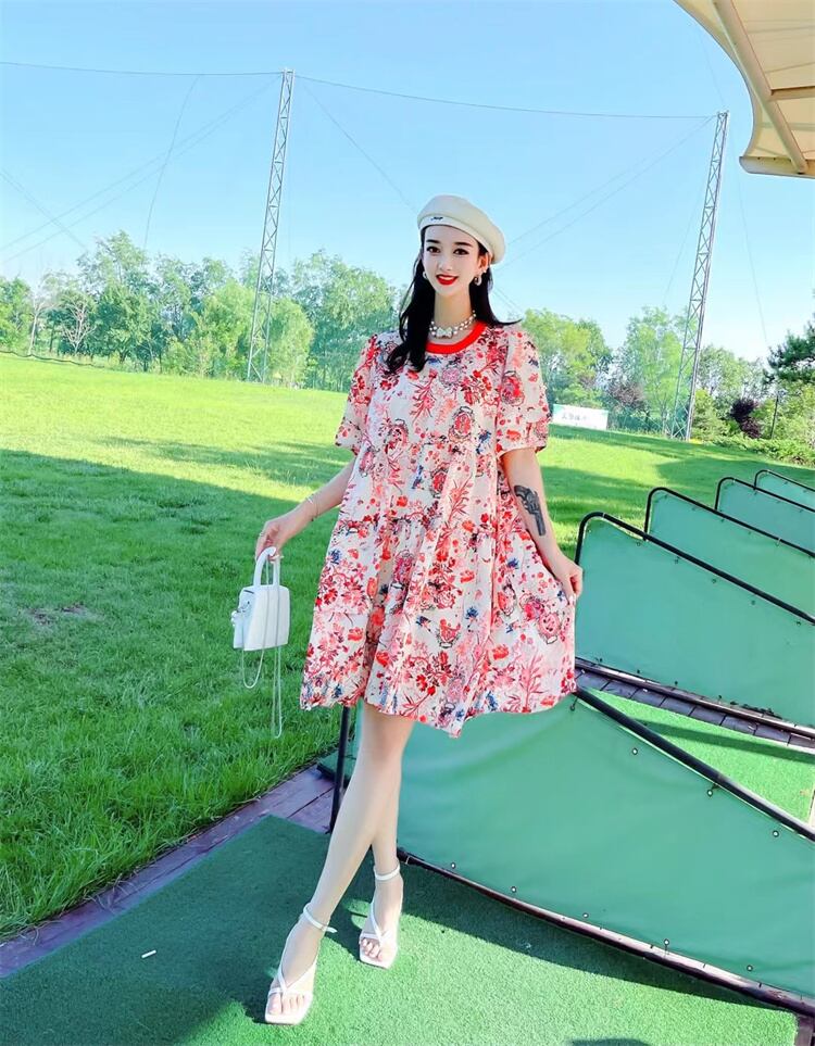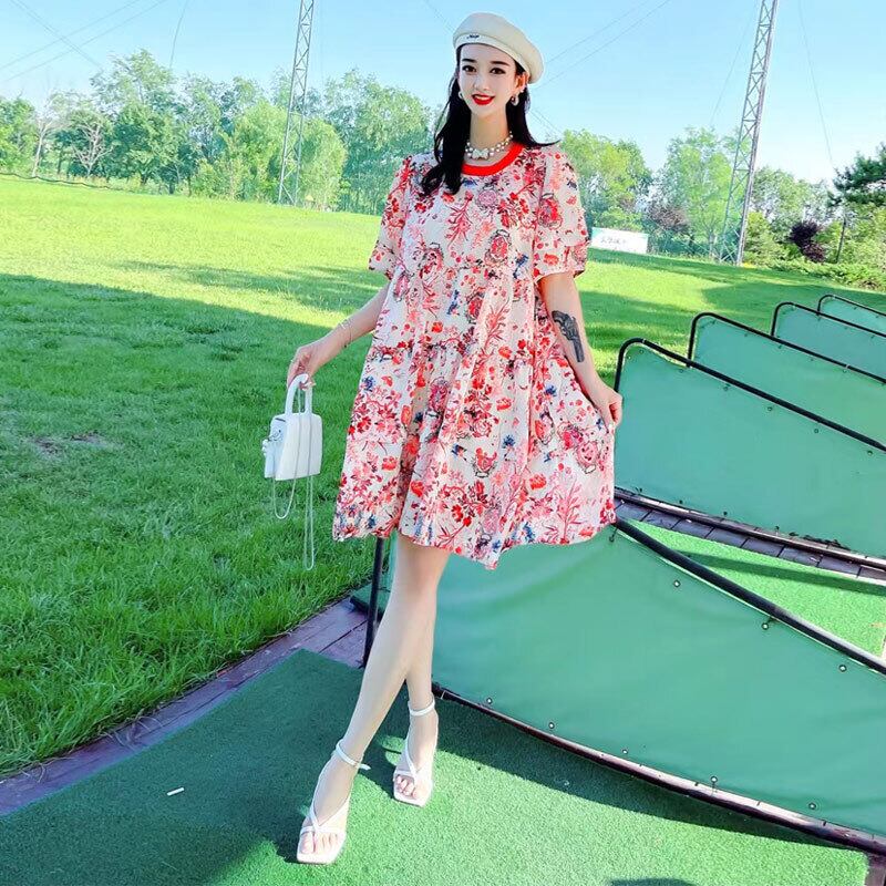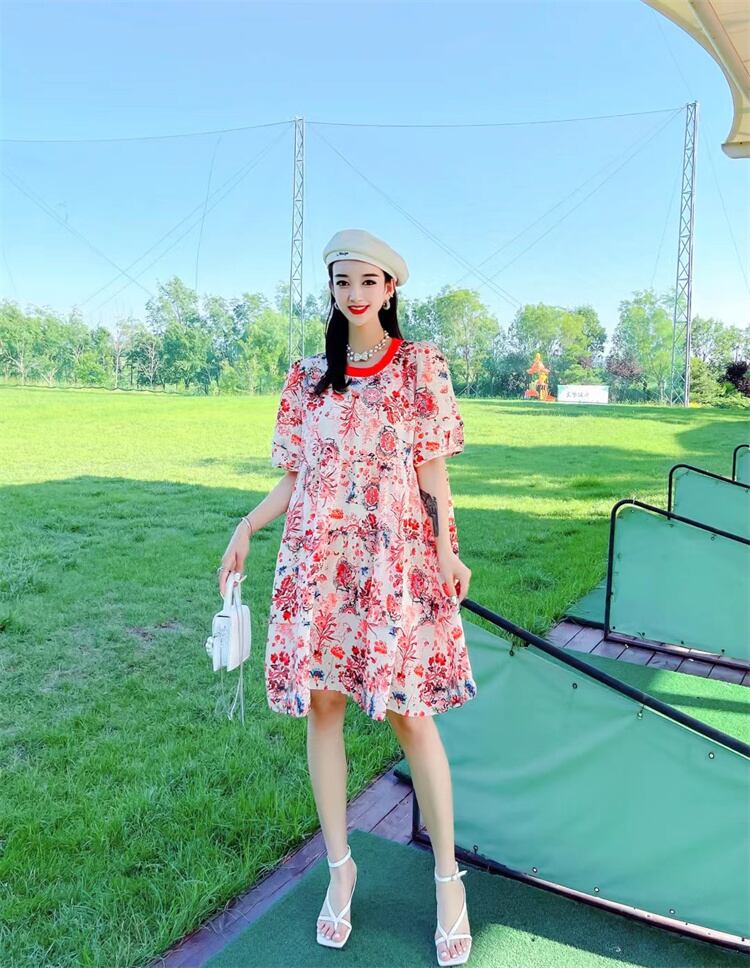 薄手ルーズスタイルフローラルドレス サマー 夏物 花柄 ミックスインファッション57922974384