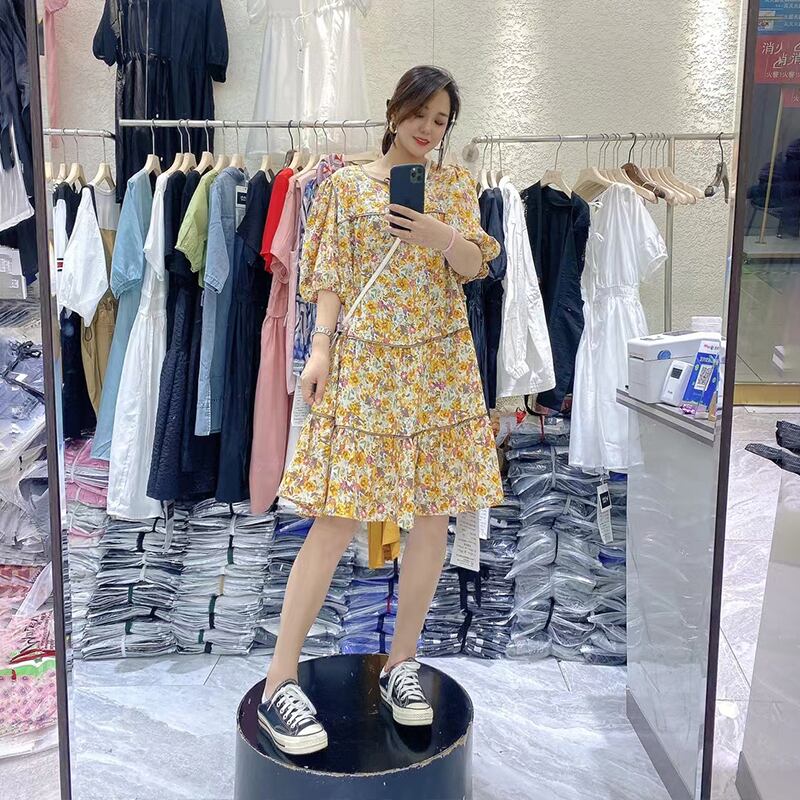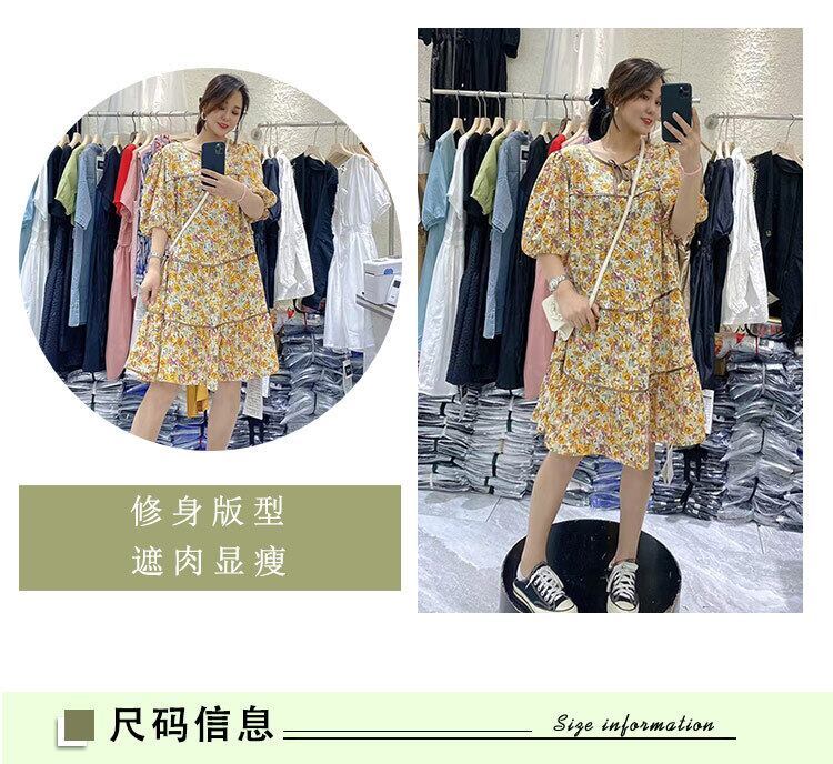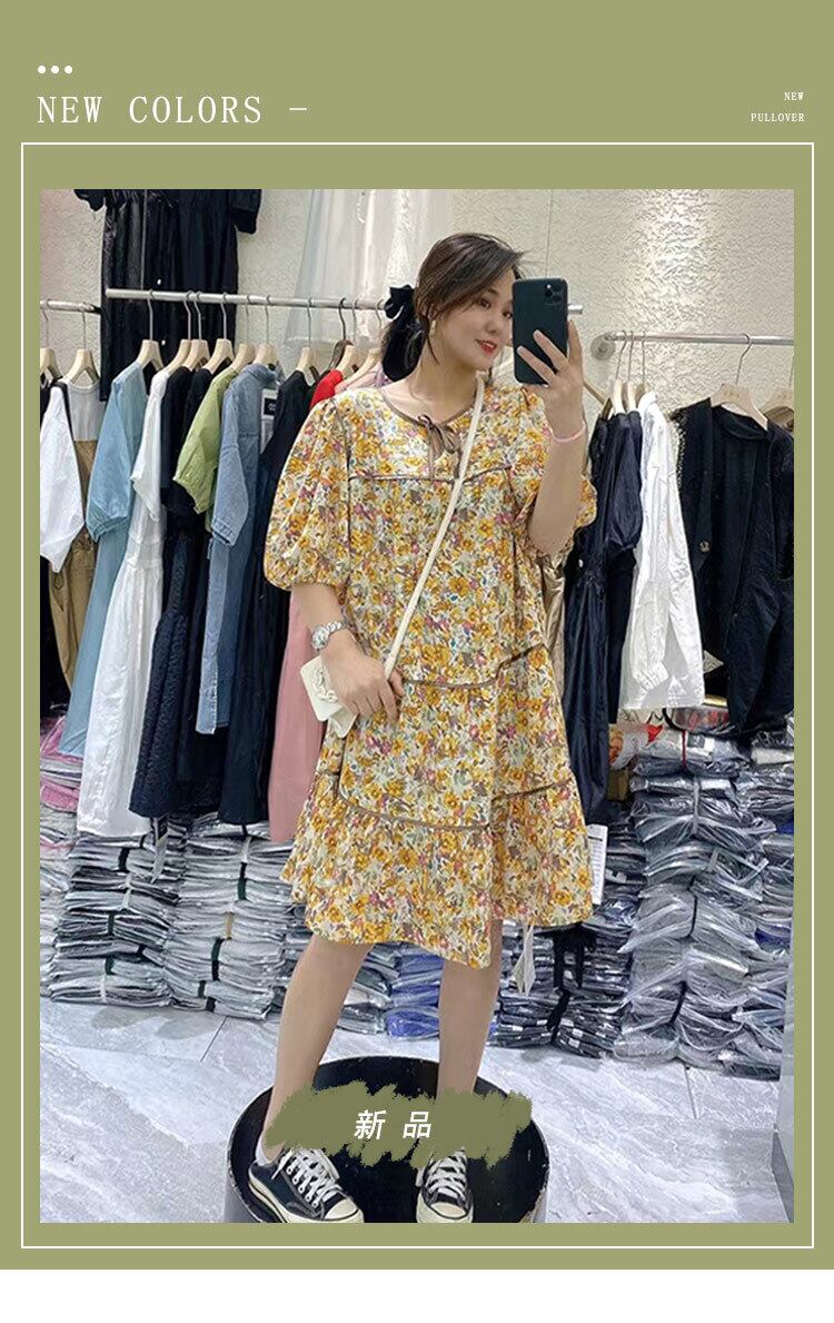 サマードレス ラウンドネックフローラル 大きめサイズ 夏物 花柄 Oネック ミックスインファッション34887872450