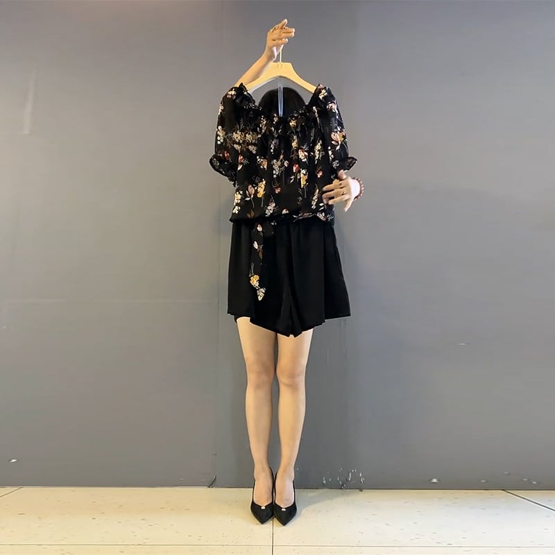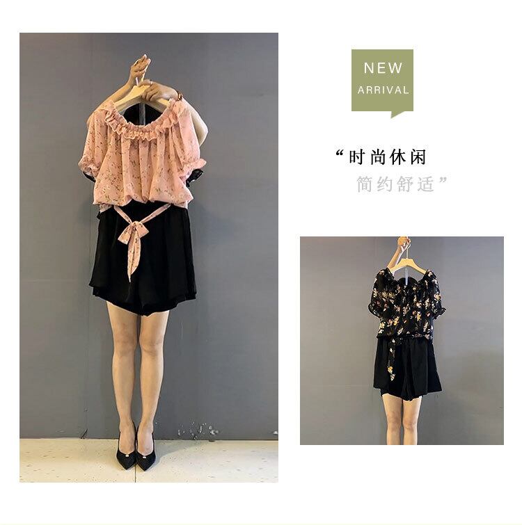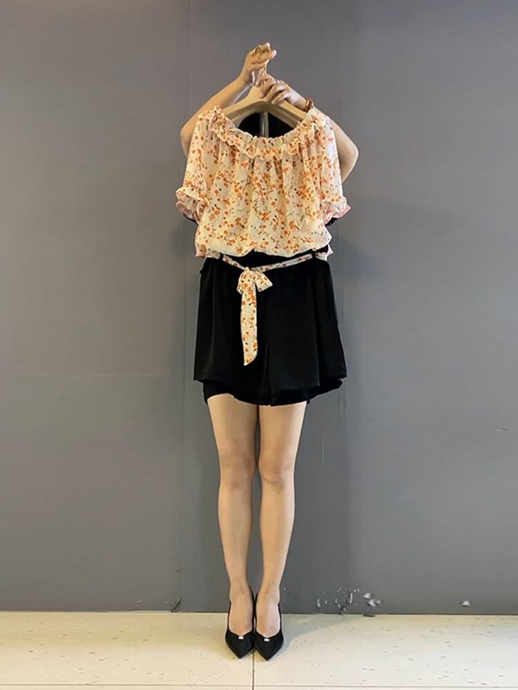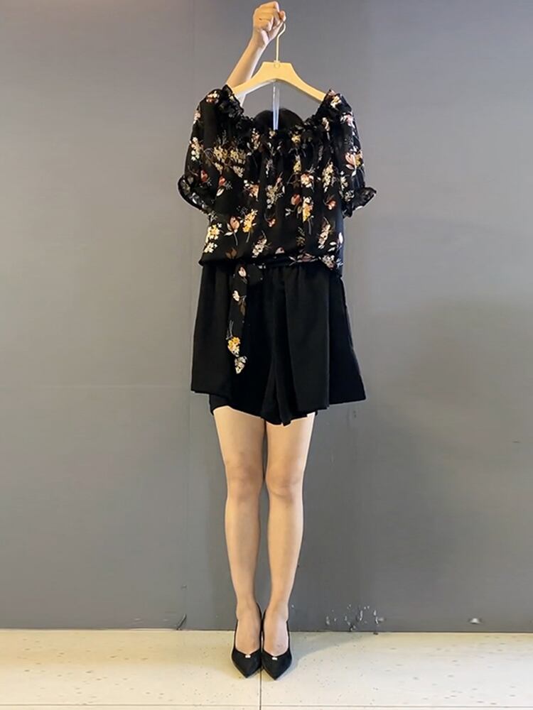 サマールーズ薄手ラウンドネックフローラルトップス ベルト ショーツ 大きめサイズ 夏物 ハーネス ブルマー 花柄 Oネック ミックスインファッション15717311664