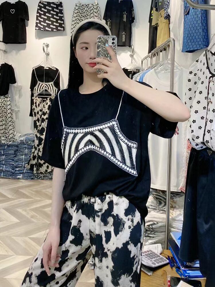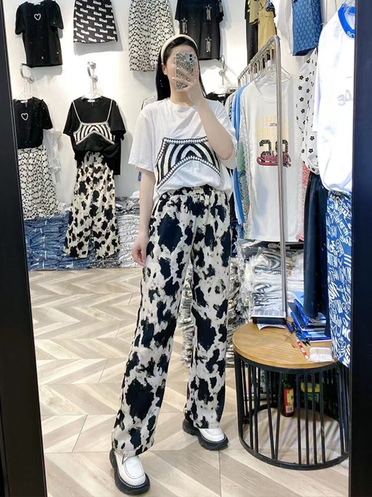 色:ホワイトT+黒と白のパンツツーピーススーツ,黒T+黒と白のパンツツーピーススーツ