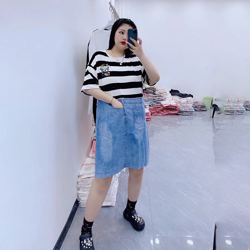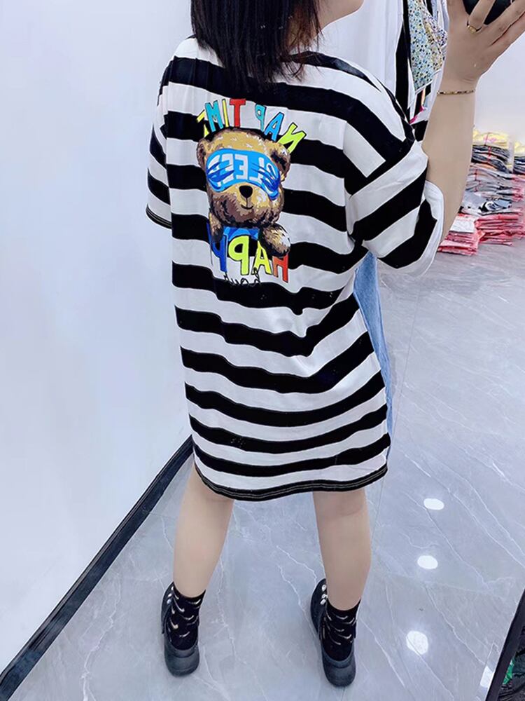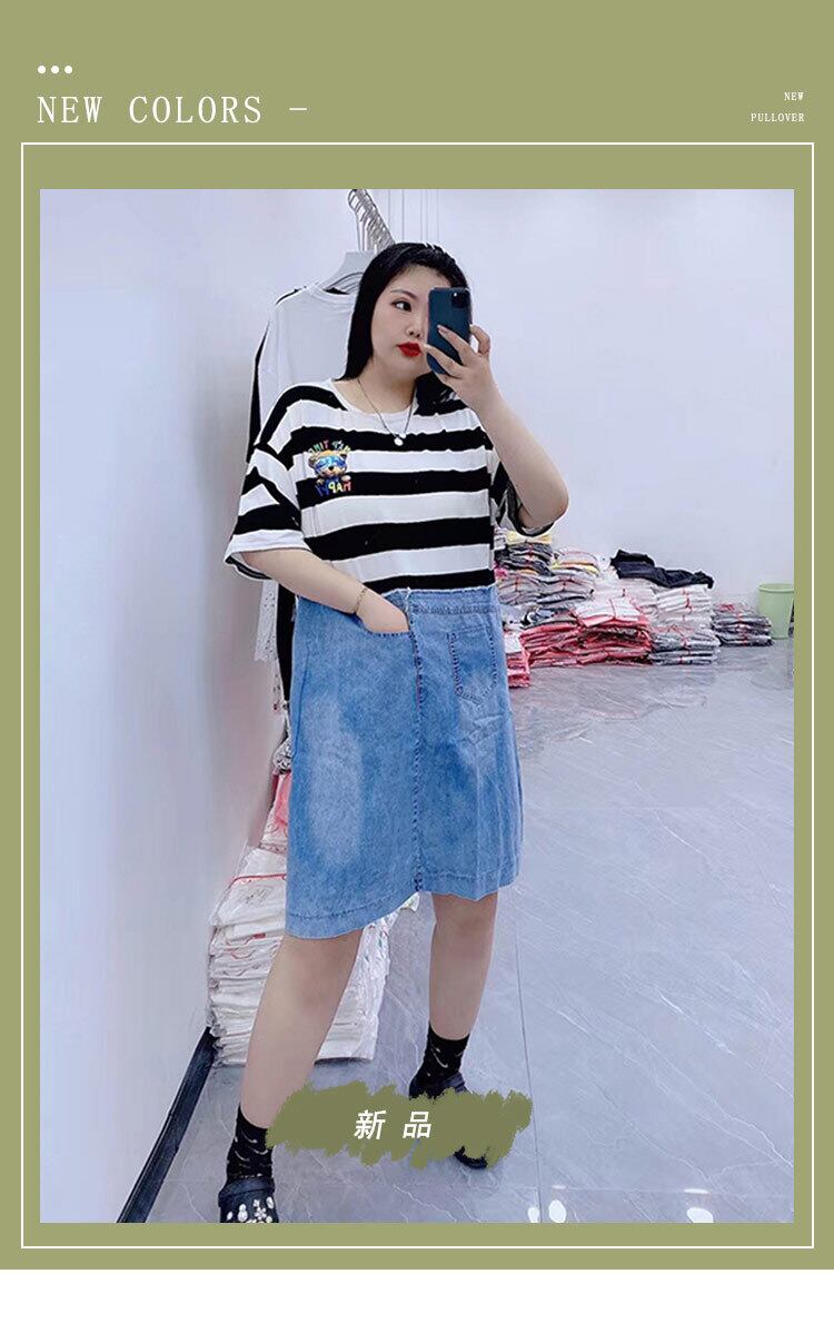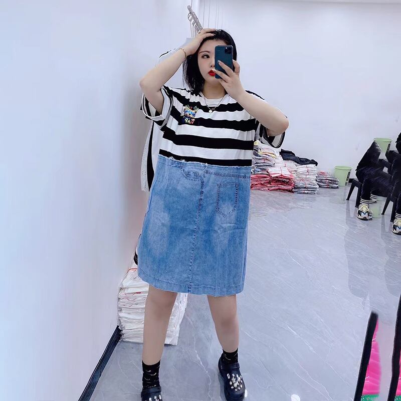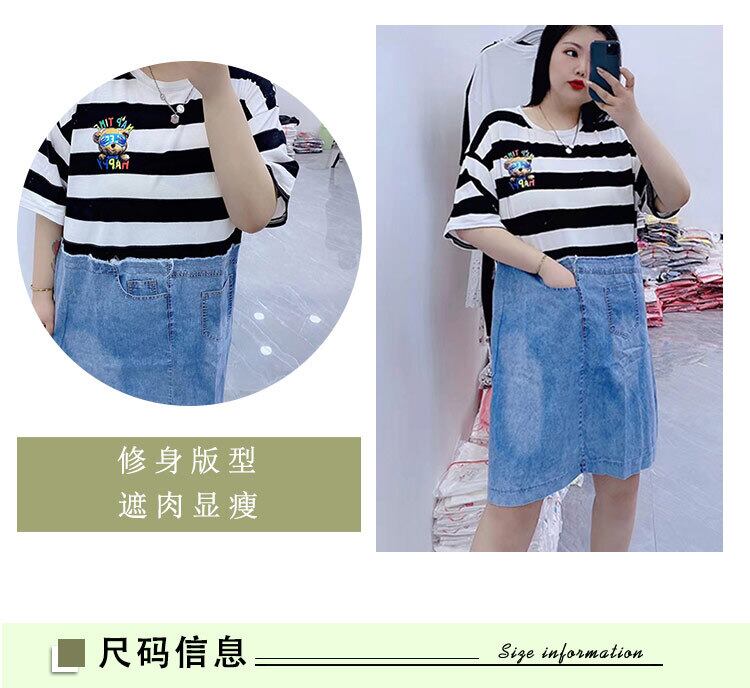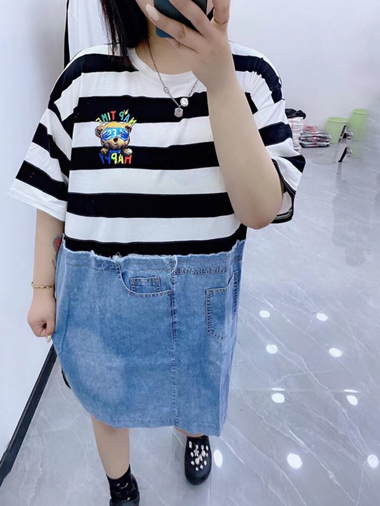 サマールーズラウンドネック半袖スリーブストライプドレス ショート ハーフスリーブ 大きめサイズ 夏物 Oネック ステッチ ミックスインファッション62617411825