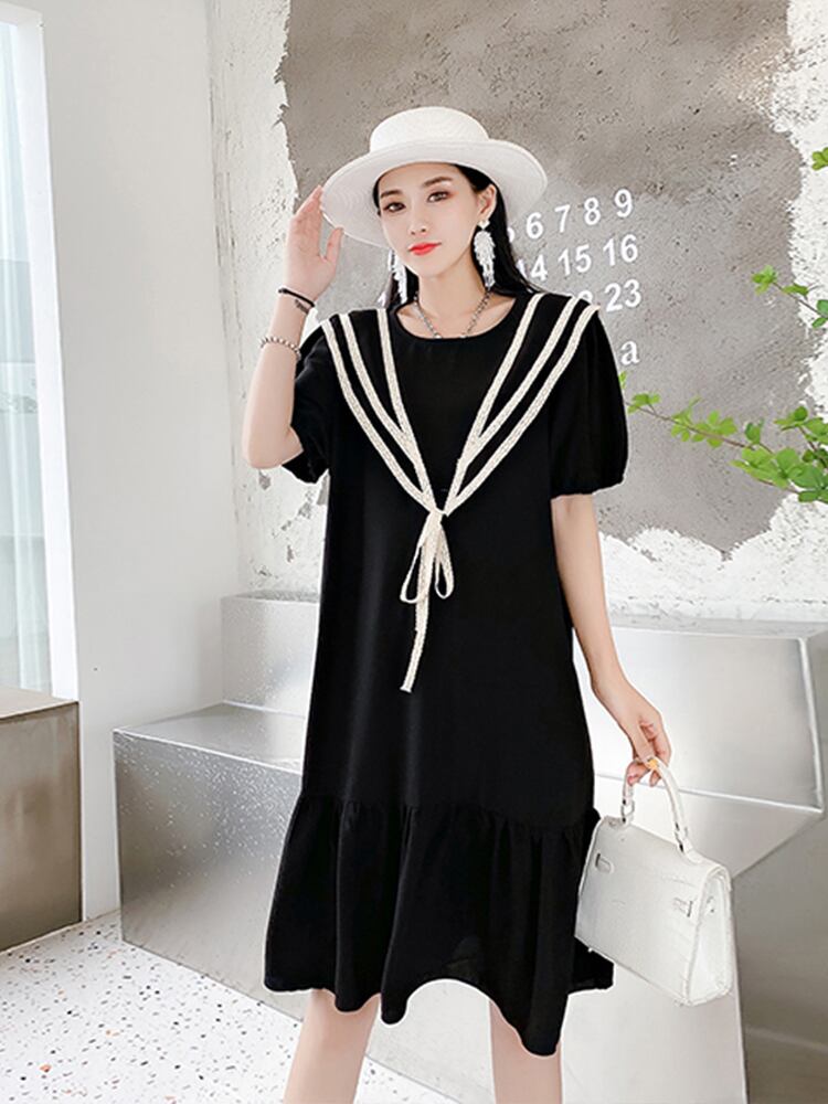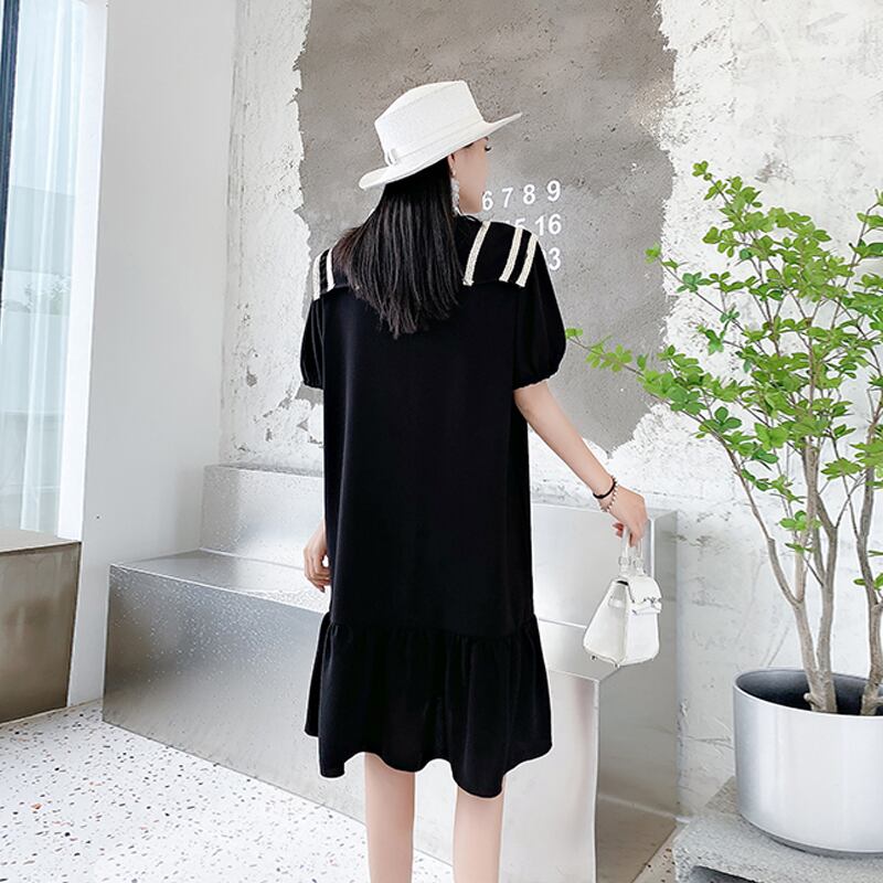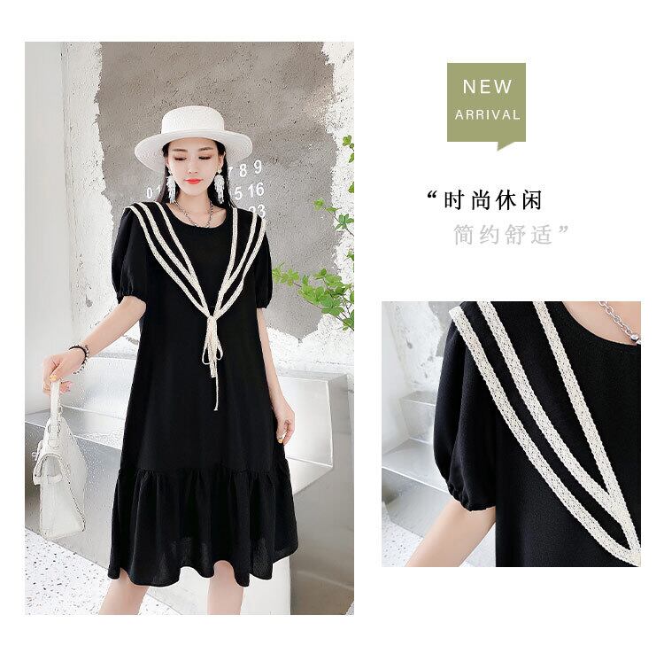 サマーラウンドネックレースドレス ルーズ薄手 大きめサイズ 夏物 Oネック ミックスインファッション64002685141