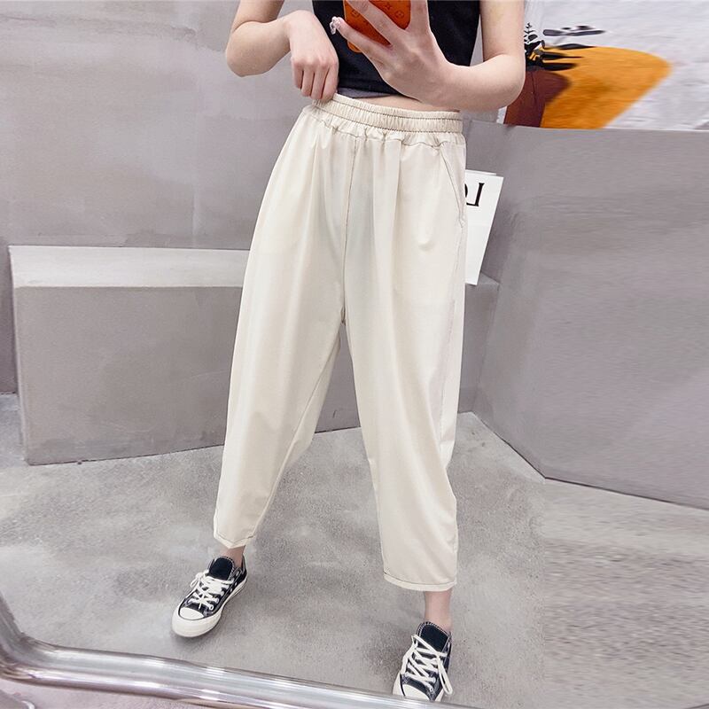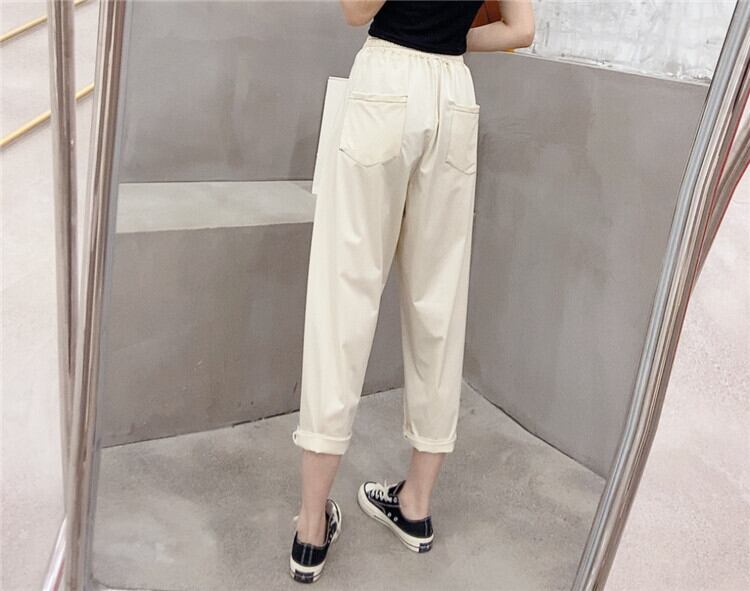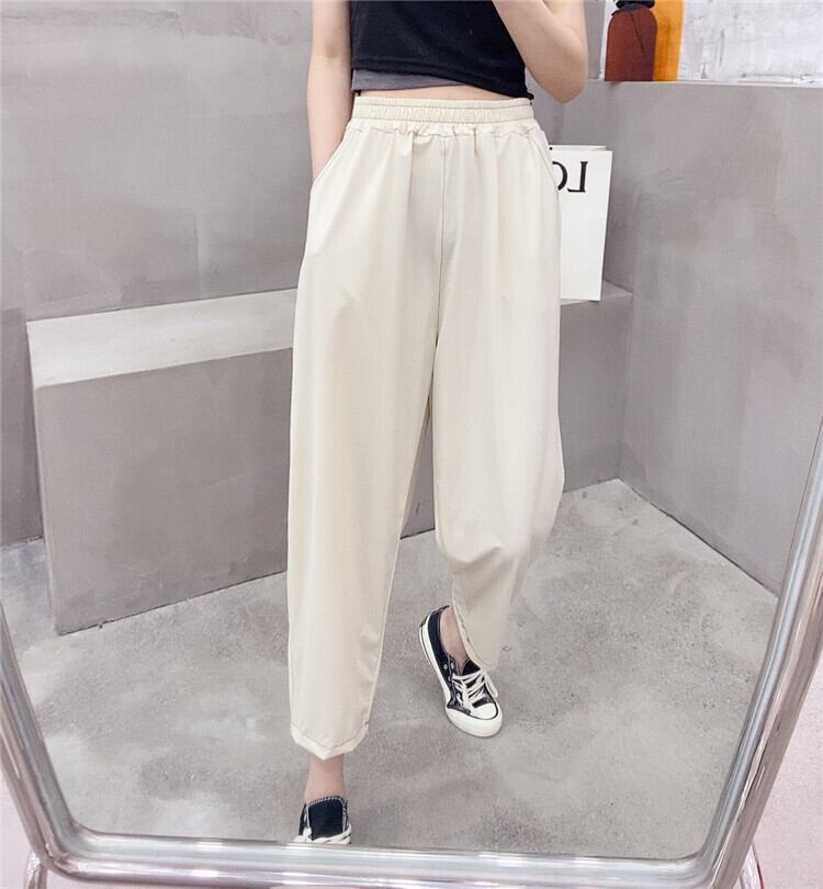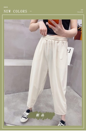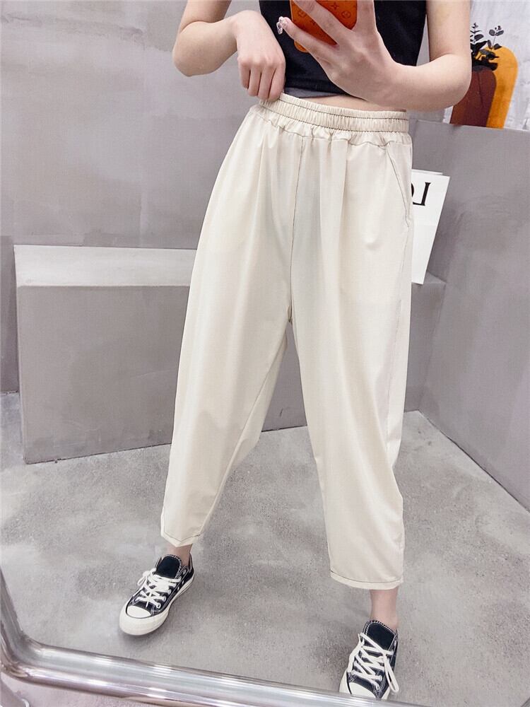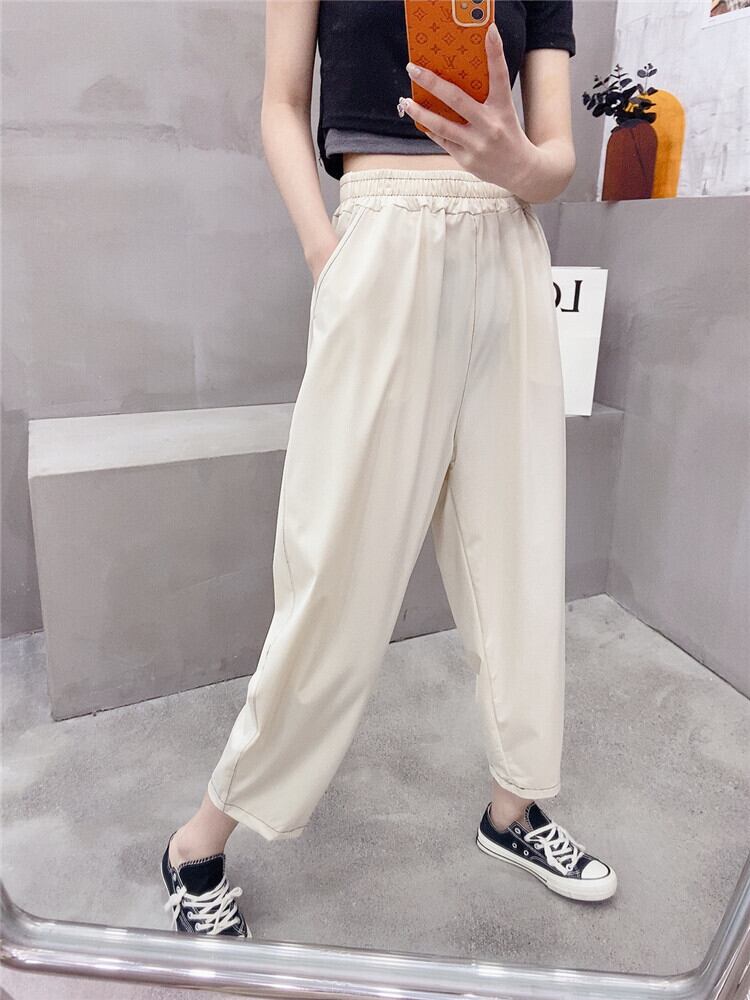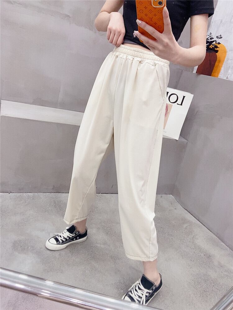 ソリッド カラーカジュアルパンツ サマーストレッチウェスト エラスティック 伸縮 大きめサイズ 夏物 ソリッドカラー ミックスインファッション51738229015
