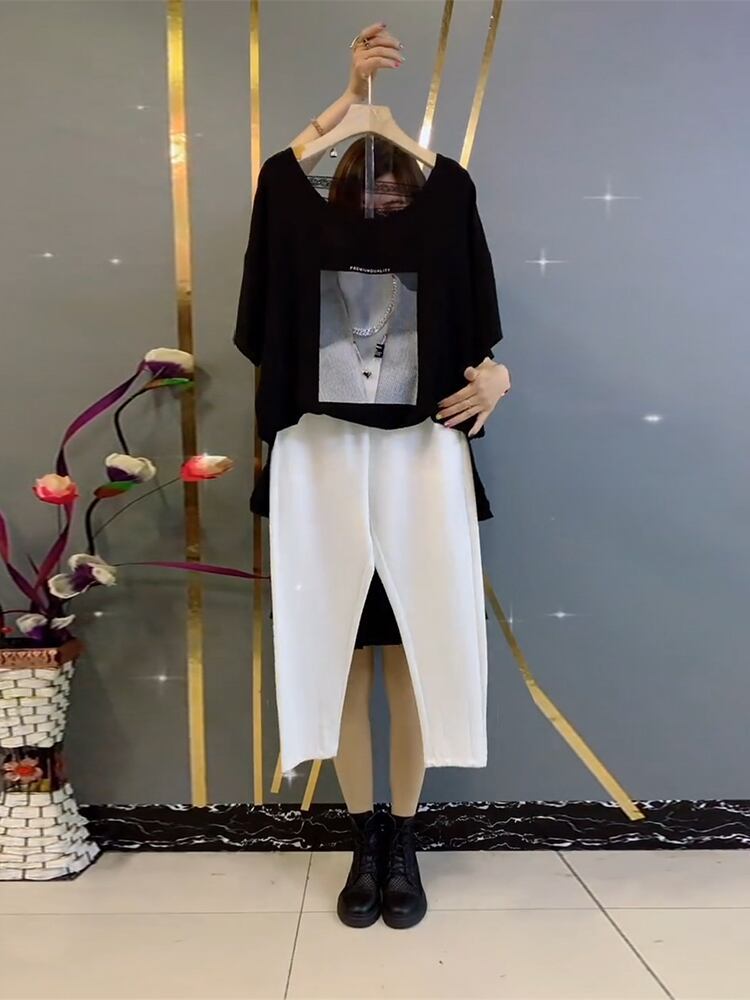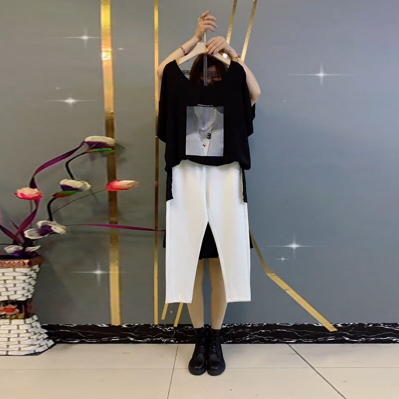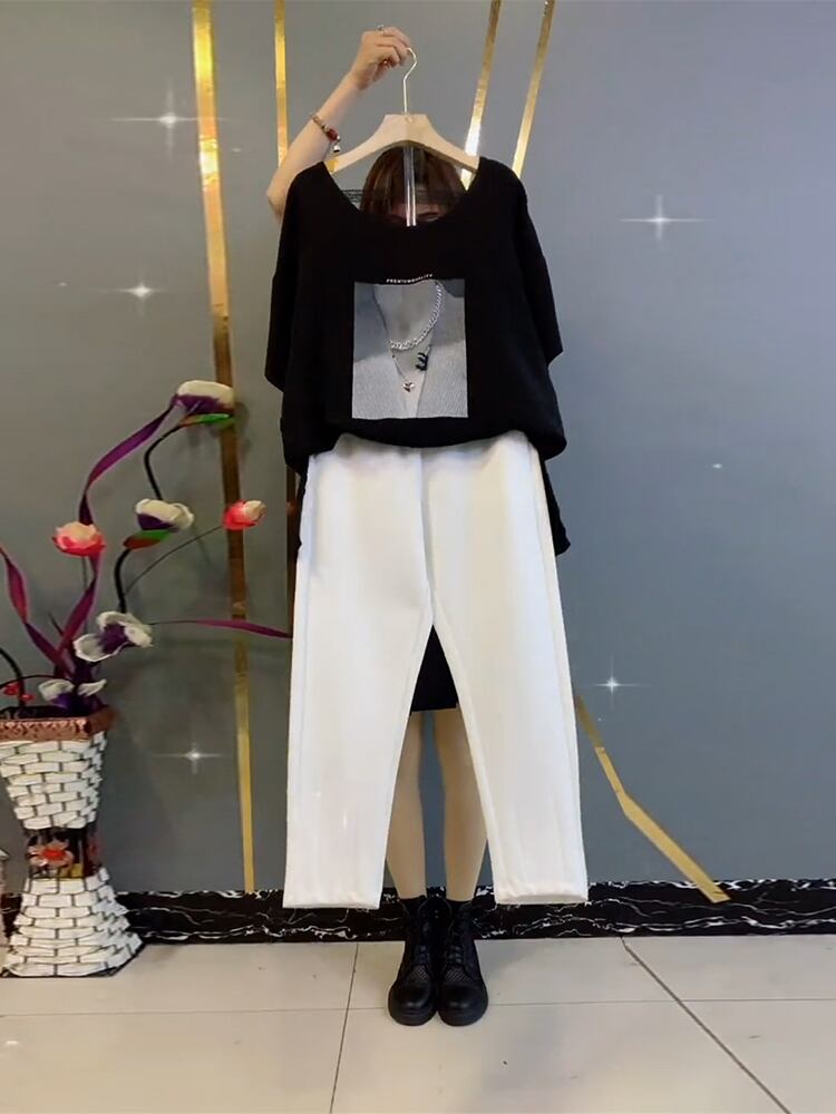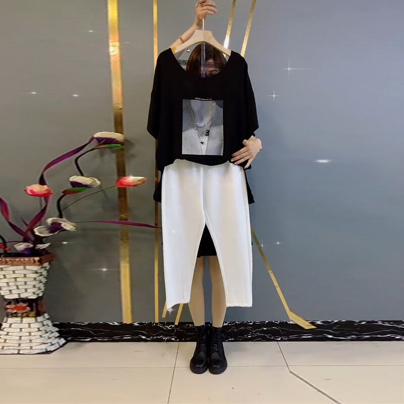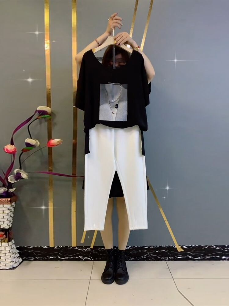 ラウンドネックTシャツ サマードレス トップス 大きめサイズ 夏物 Oネック ミックスインファッション45628502542