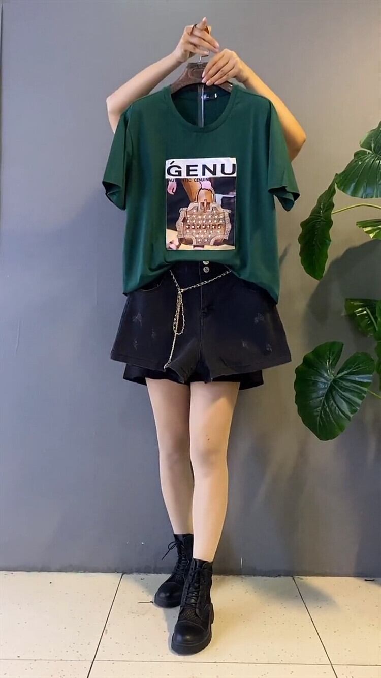 色:グリーンT,ブラックT,レッドT,黒いズボン