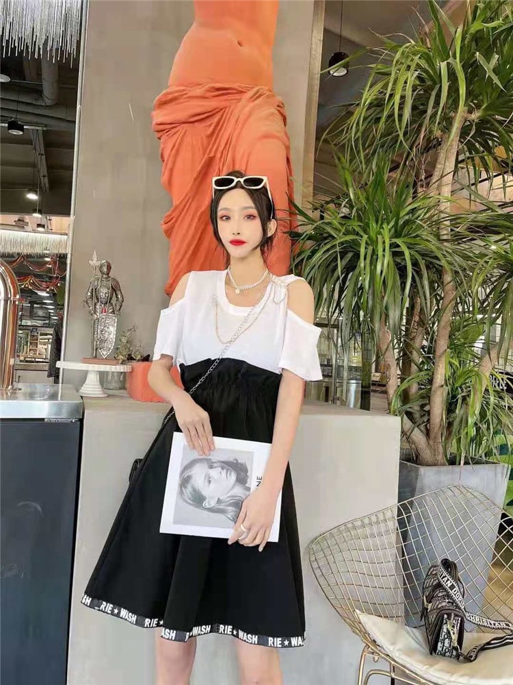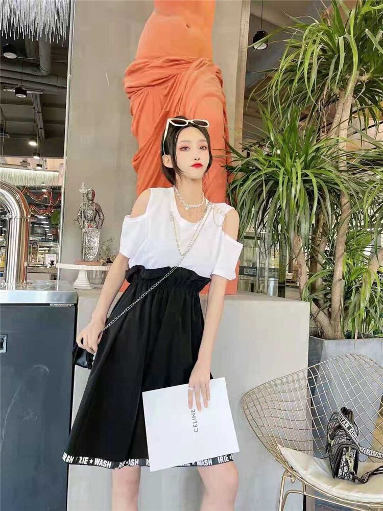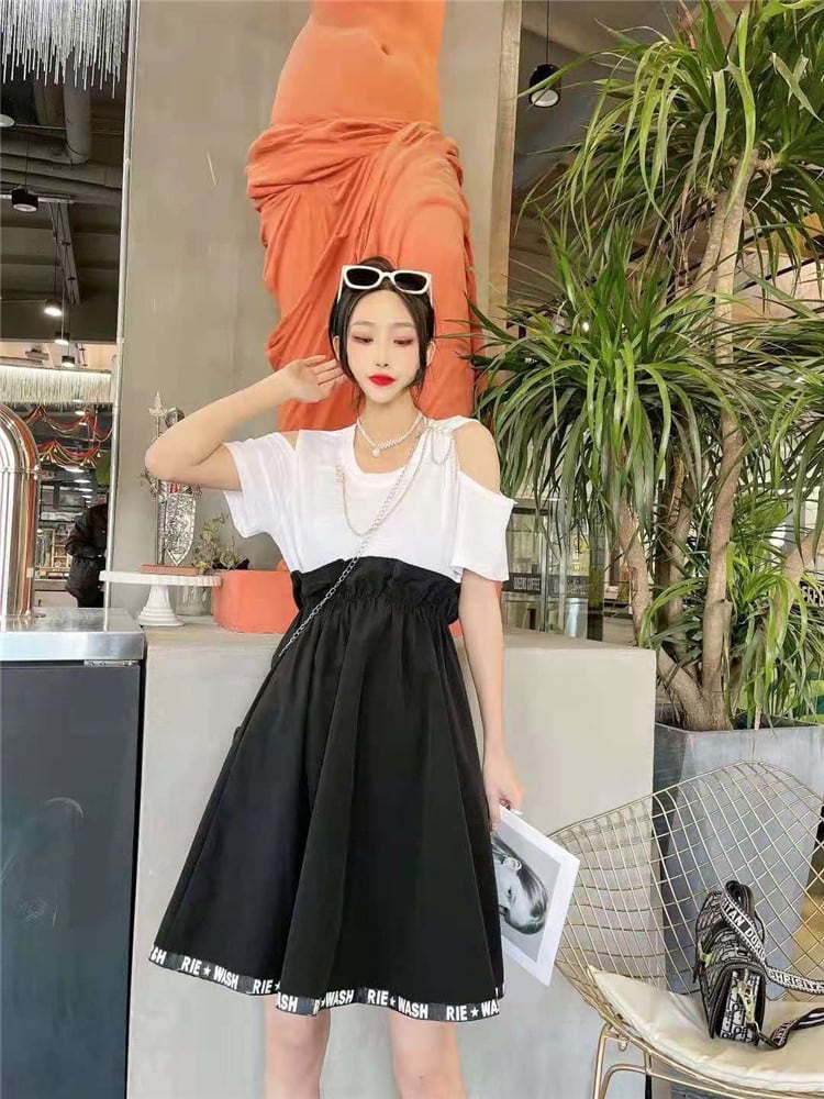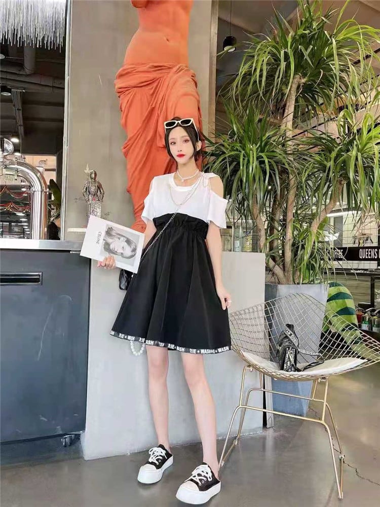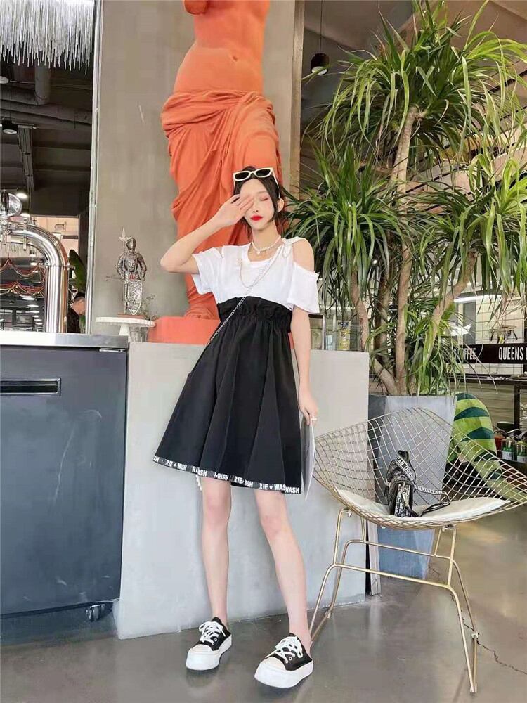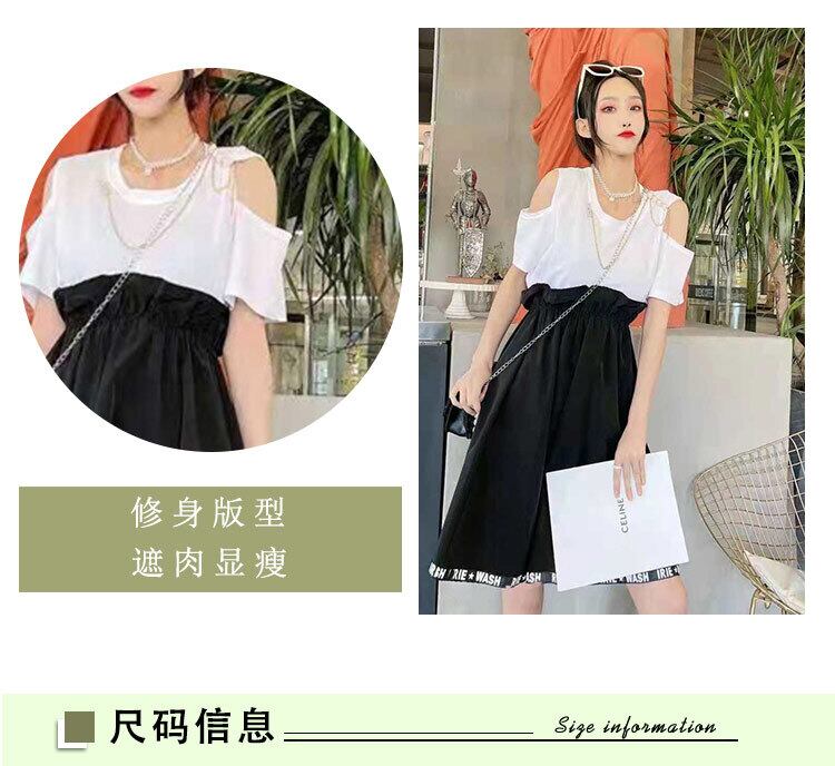 ストラップレスTシャツ サマーストレッチウェストスカート エラスティック 伸縮 大きめサイズ 夏物 ミックスインファッション93712468192