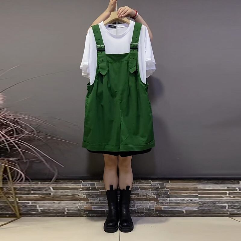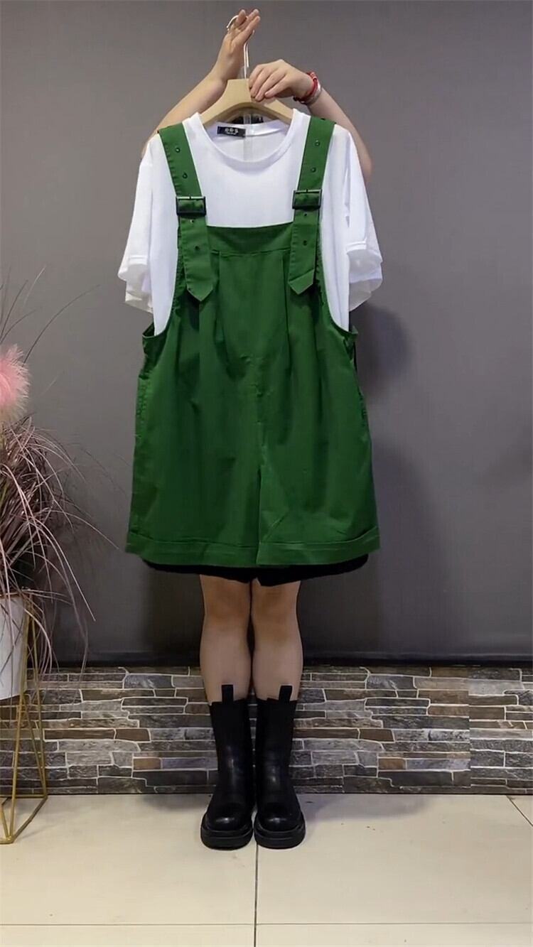 サマーラウンドネックTシャツ ショーツ 大きめサイズ 夏物 ブルマー Oネック ミックスインファッション33549975726