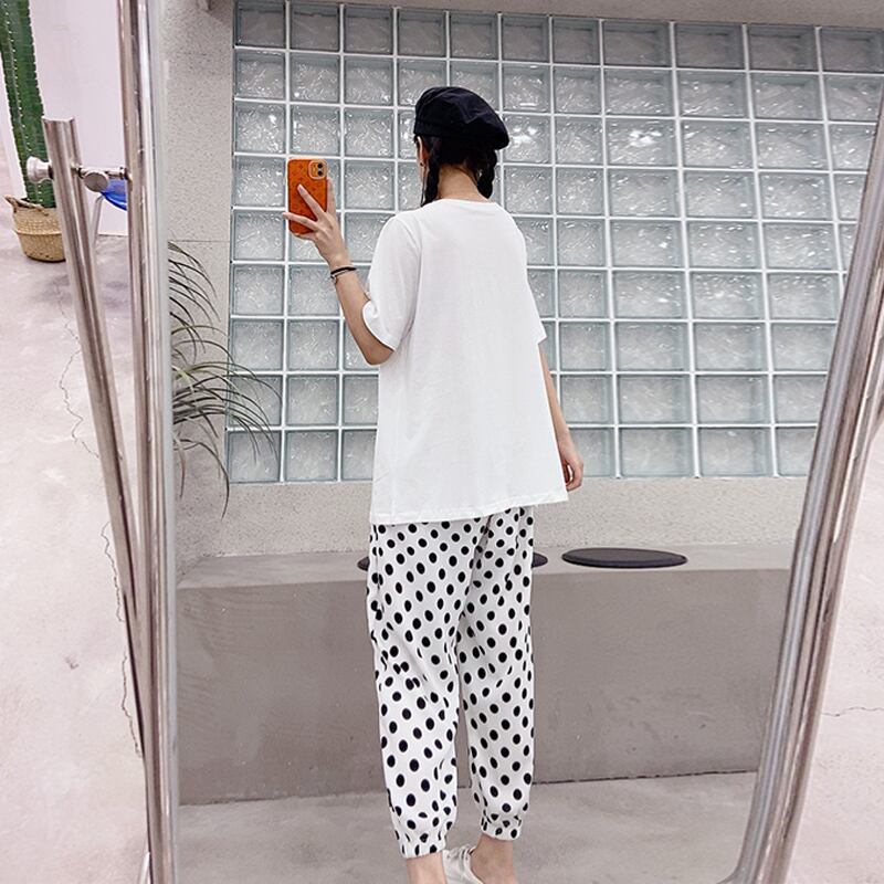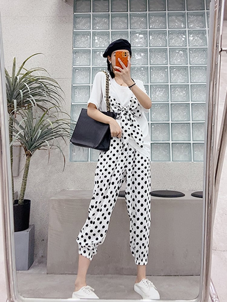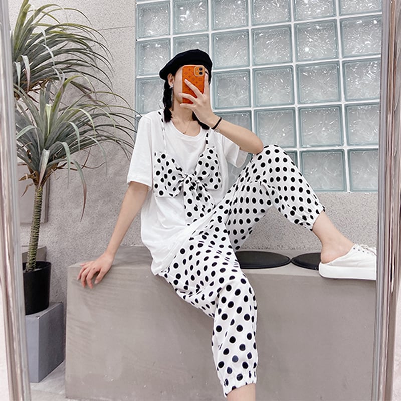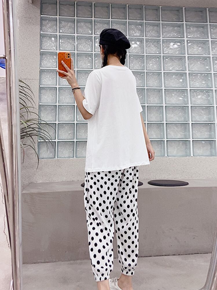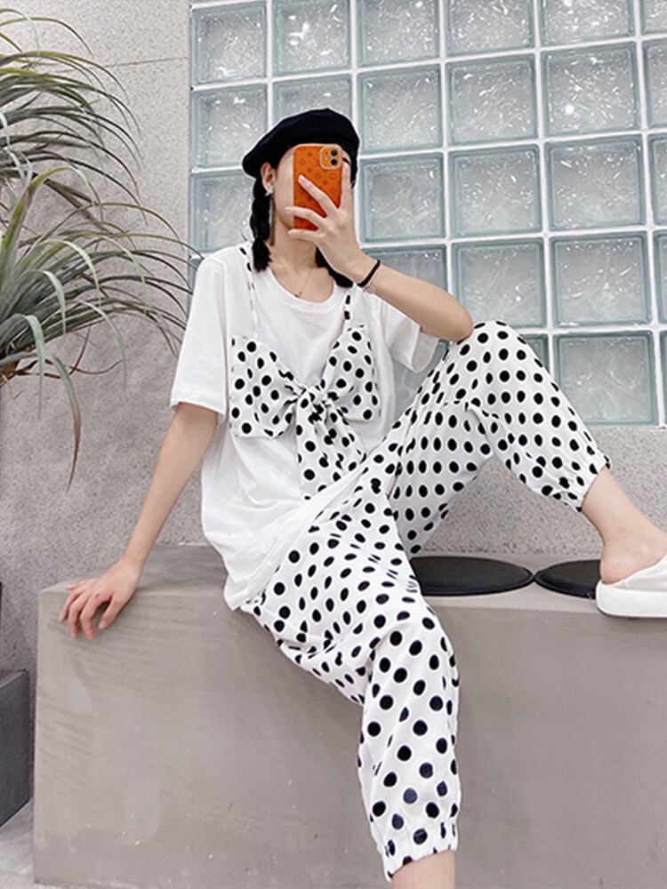 サマーリボンスタイルカジュアルTシャツ クロップドパンツ ストリート 大きめサイズ 夏物 ミックスインファッション58077982419