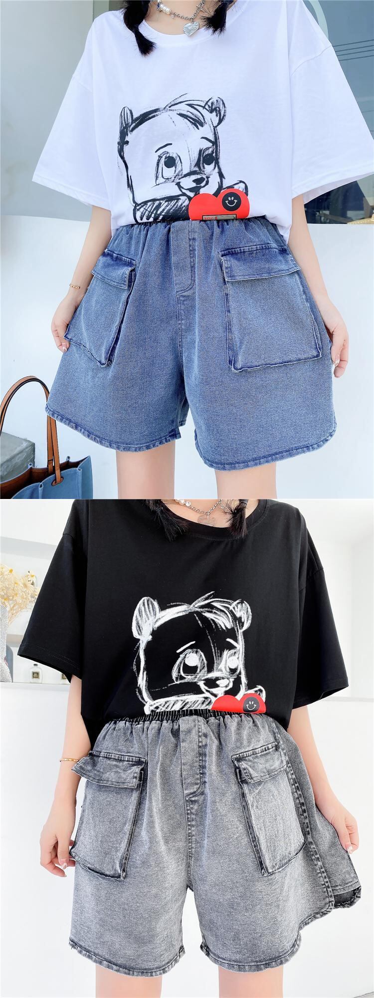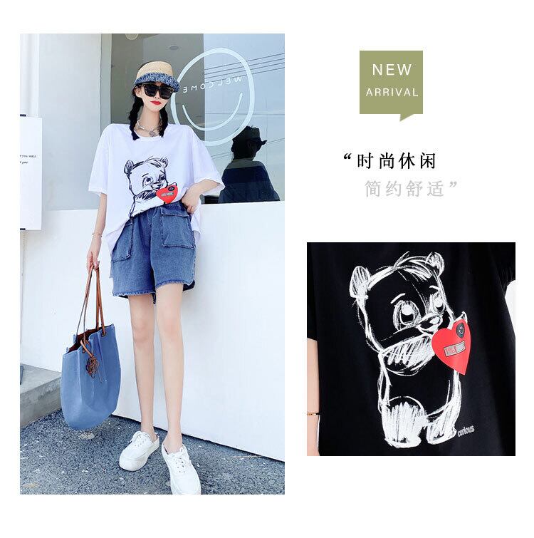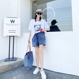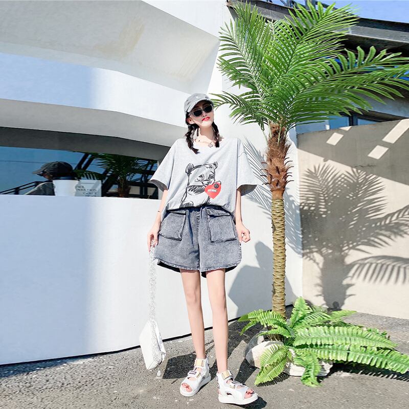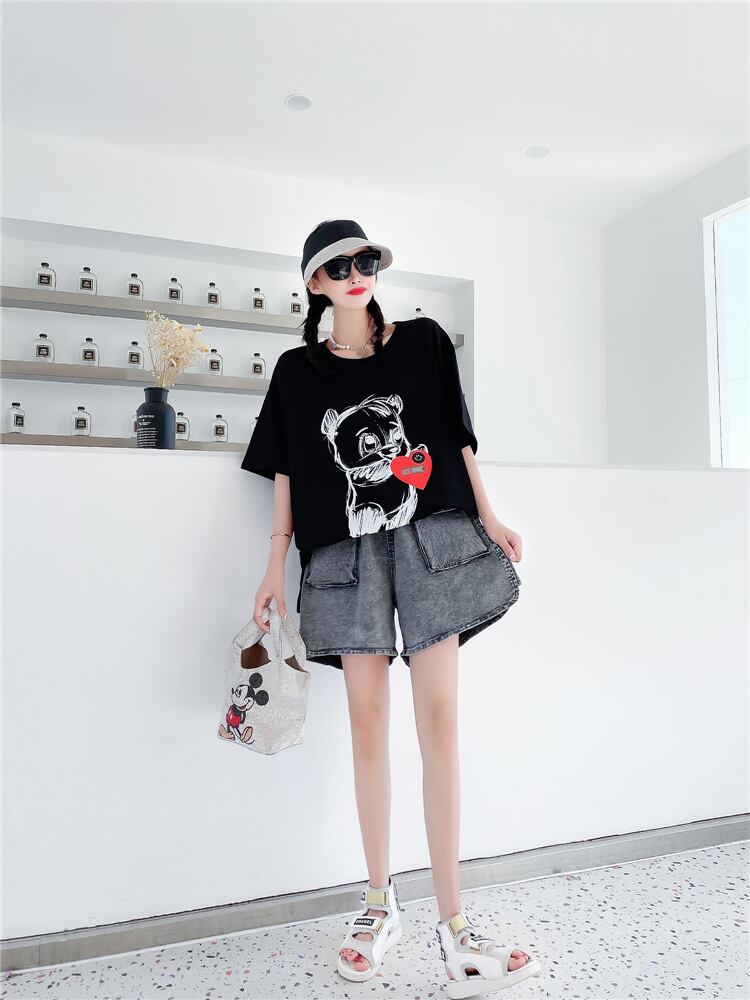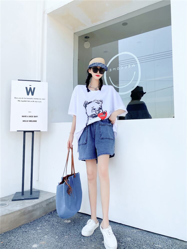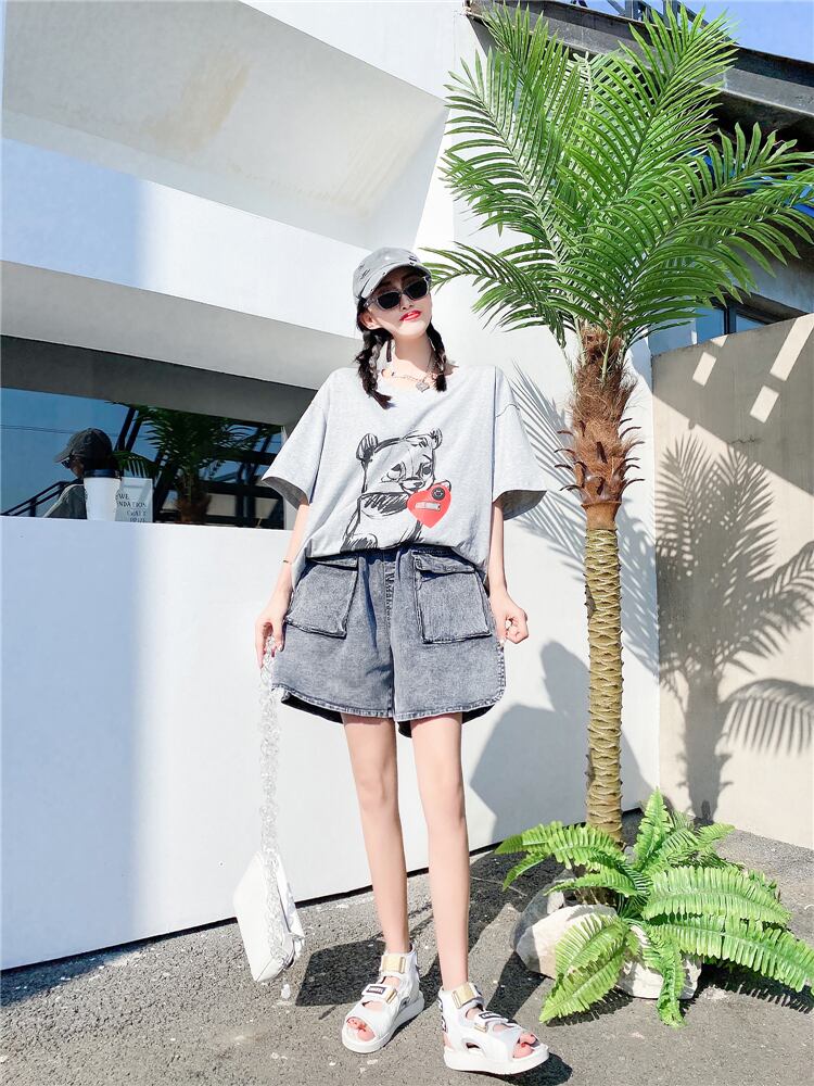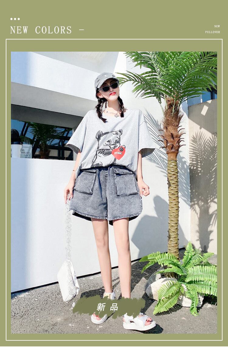 サマーラウンドネックトップス ルーズショーツ Tシャツ 大きめサイズ 夏物 ブルマー Oネック ミックスインファッション85956835591