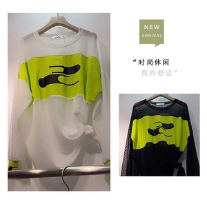 スリムシャツ サマールーズラウンドネック長袖スリーブTシャツ ロング 大きめサイズ 夏物 Oネック ミックスインファッション26566765396