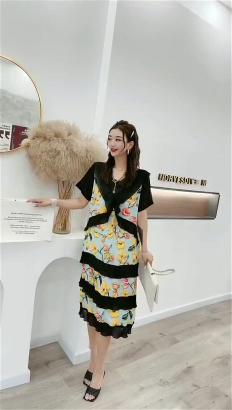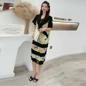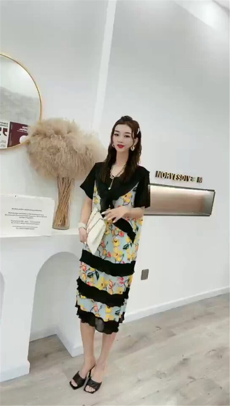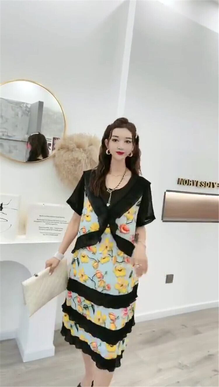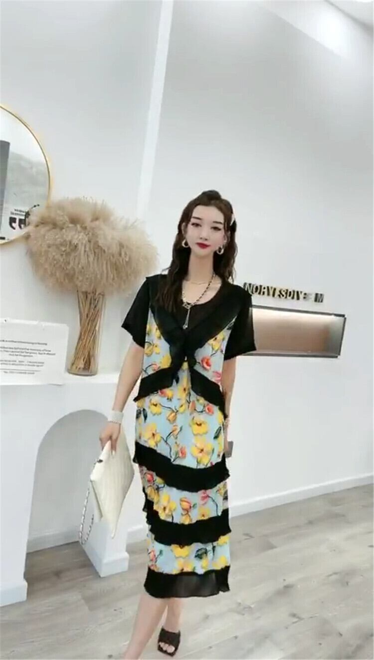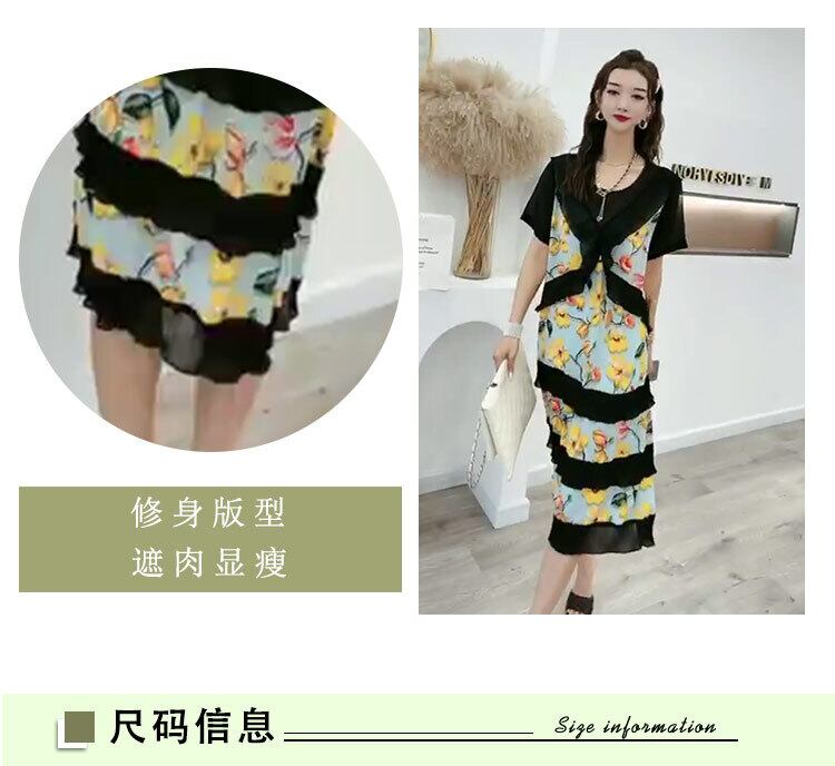 ラウンドネックFlowerデザイン シフォンドレス 薄手 大きめサイズ Oネック フラワーデザイン ミックスインファッション94097508639