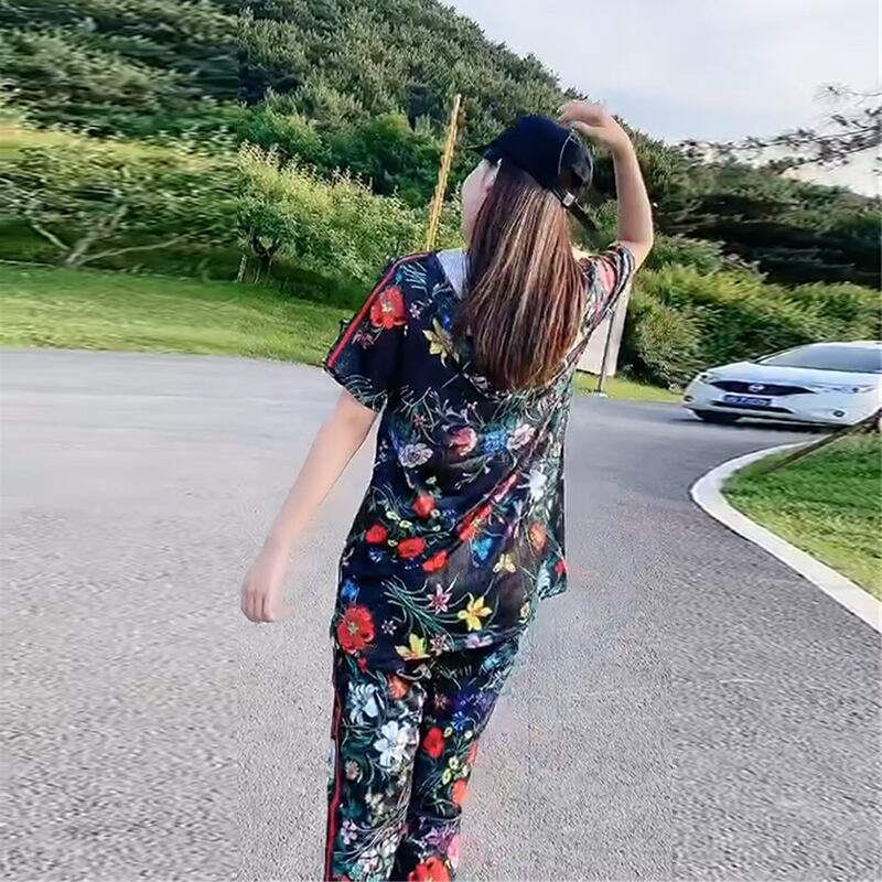 スタイルフードFlowerデザイン ブラウス クロップドパンツ サマー 大きめサイズ 夏物 フラワーデザイン ミックスインファッション14316295467
