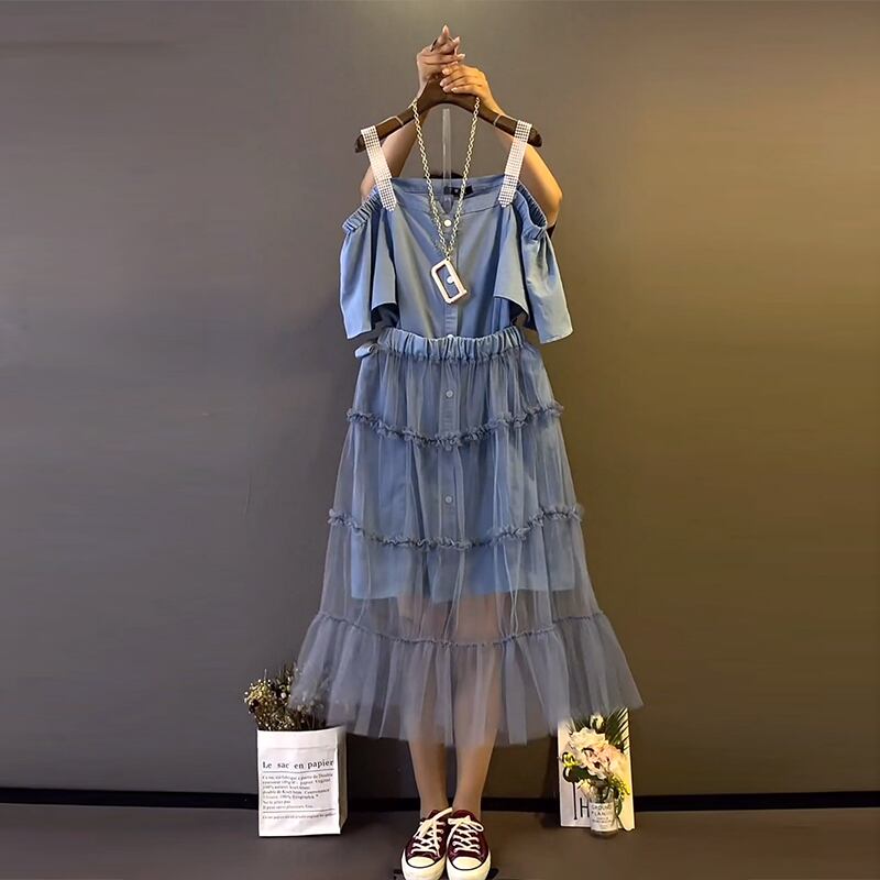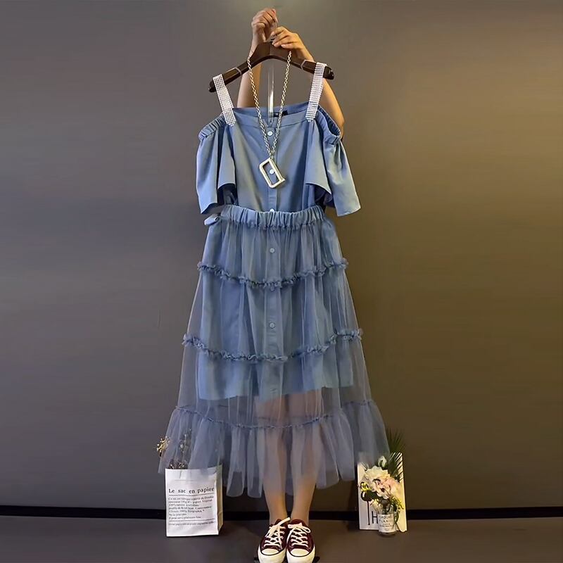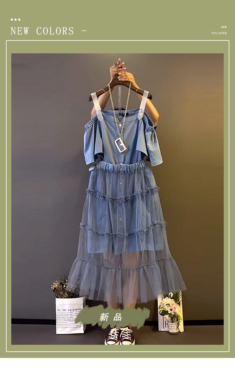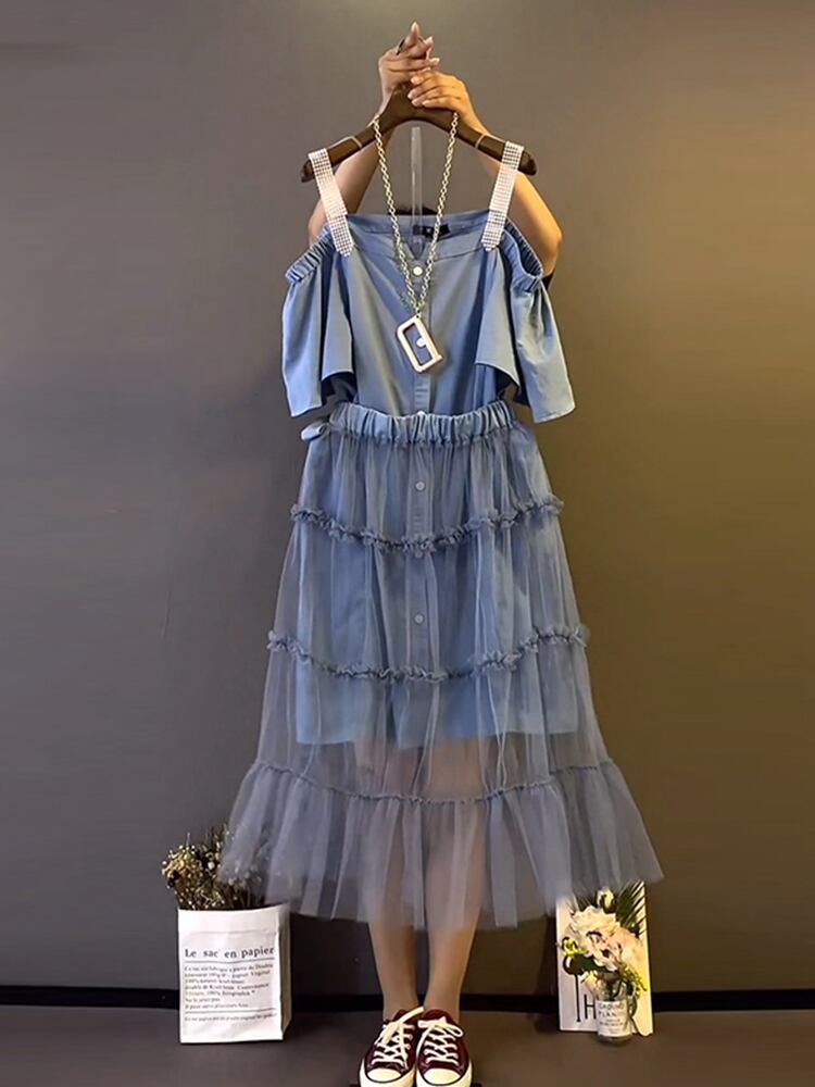 ドレス メッシュスカート サマー 大きめサイズ 夏物 ミックスインファッション95149866420