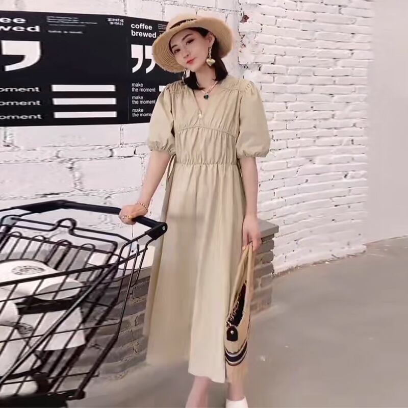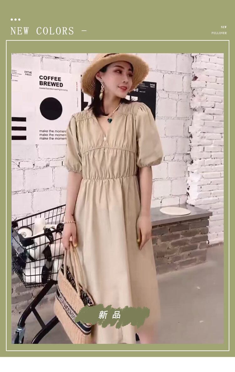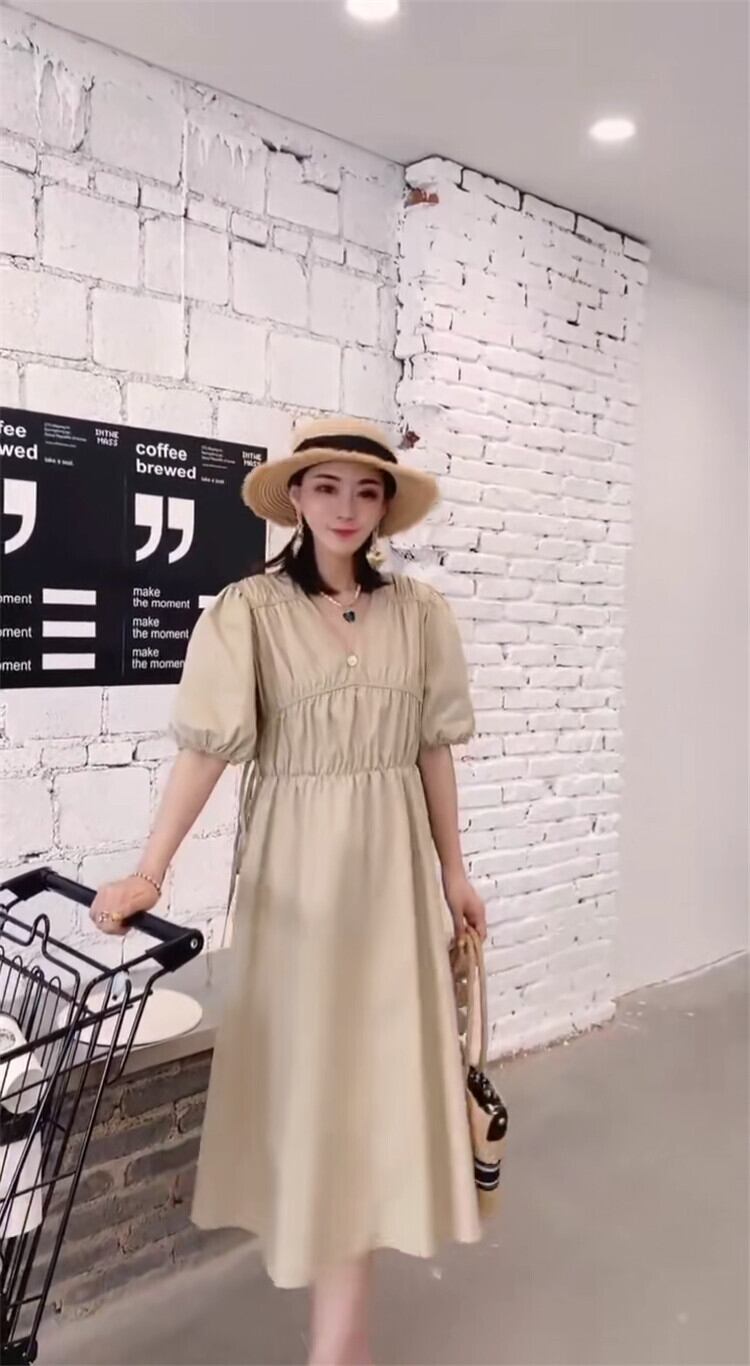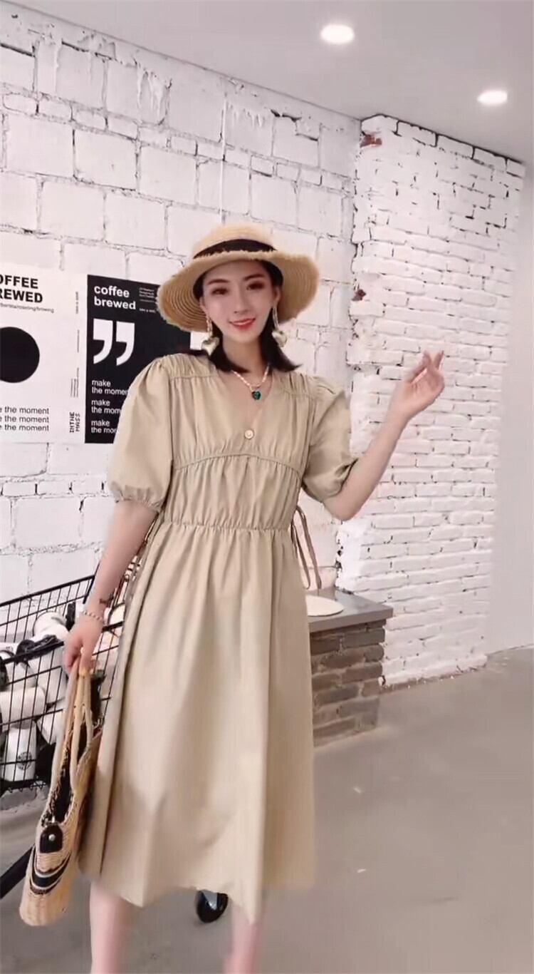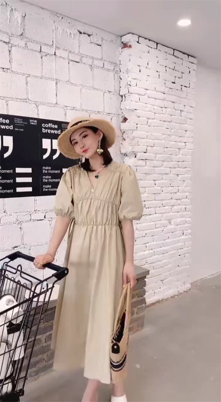 サマードレス スタイルルーズVネックスカート ランタンスリーブ 大きめサイズ 夏物 ミックスインファッション62698456689