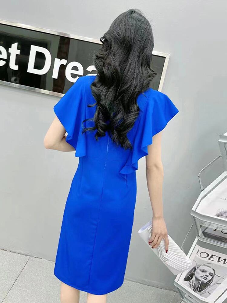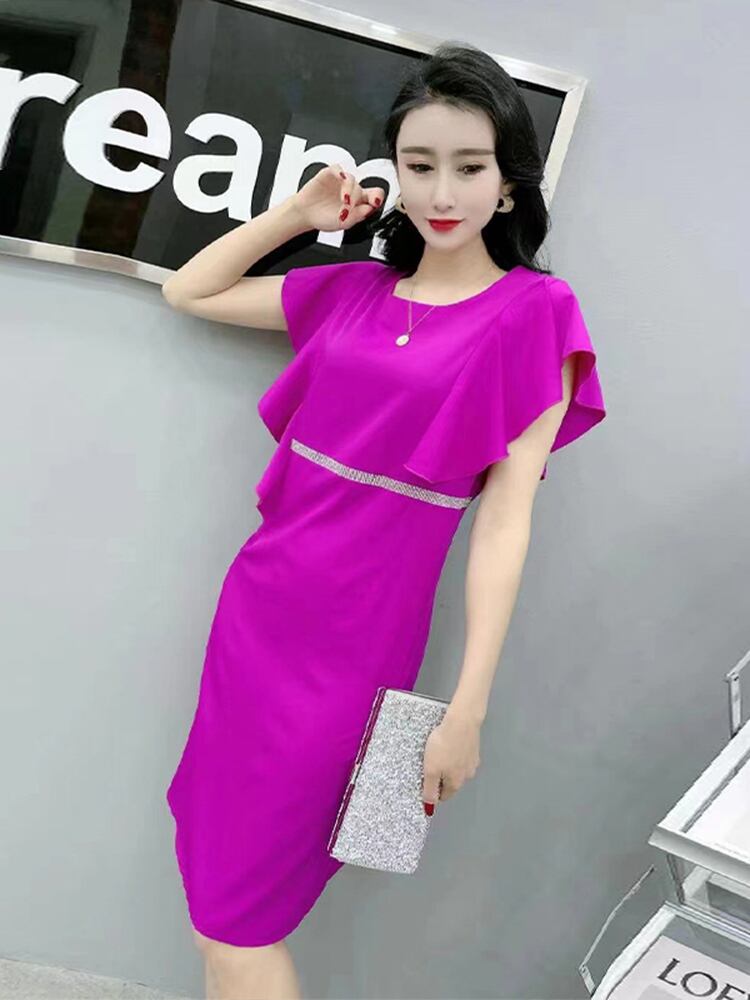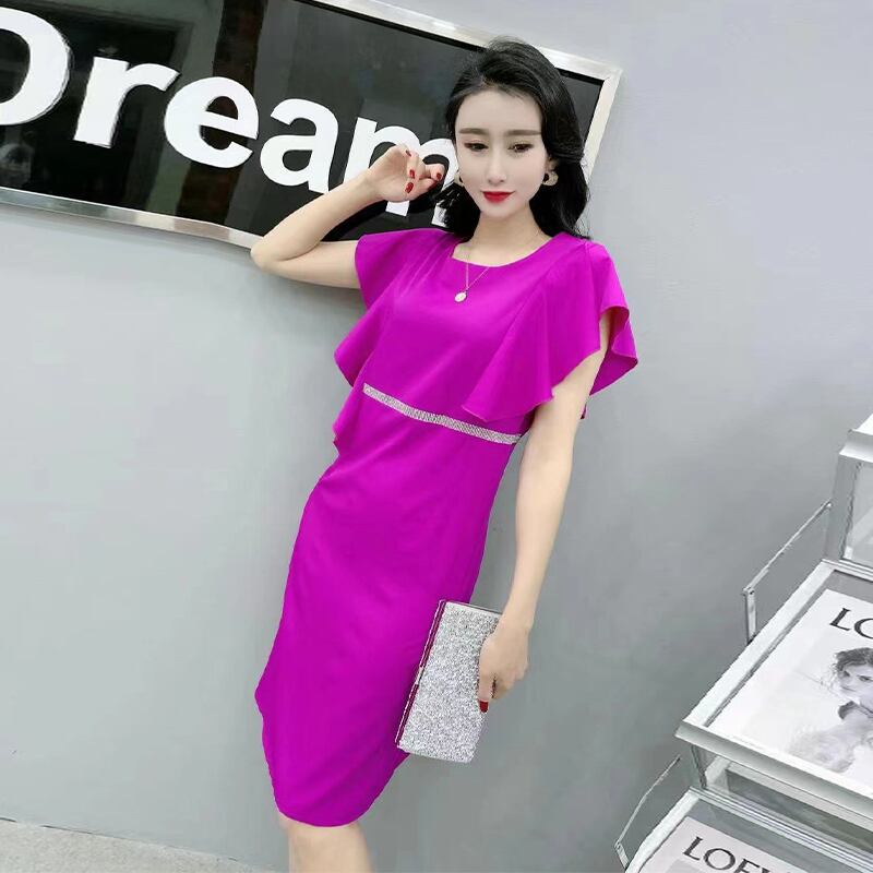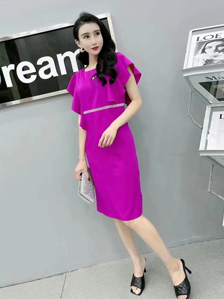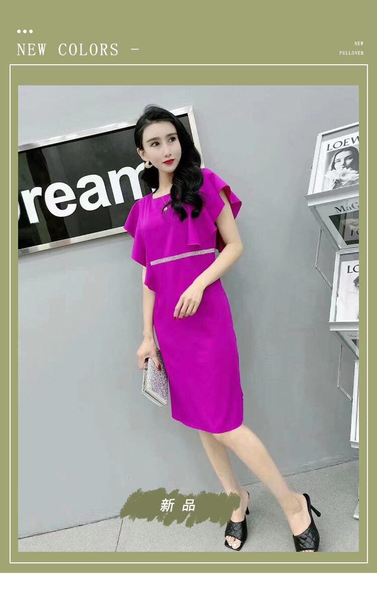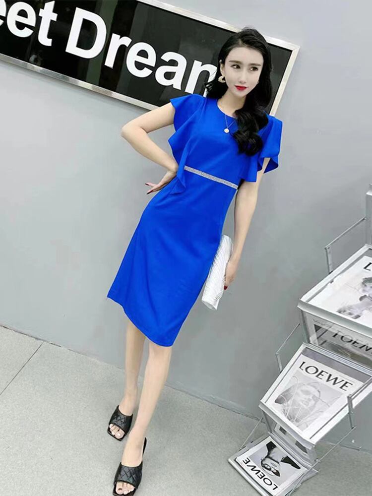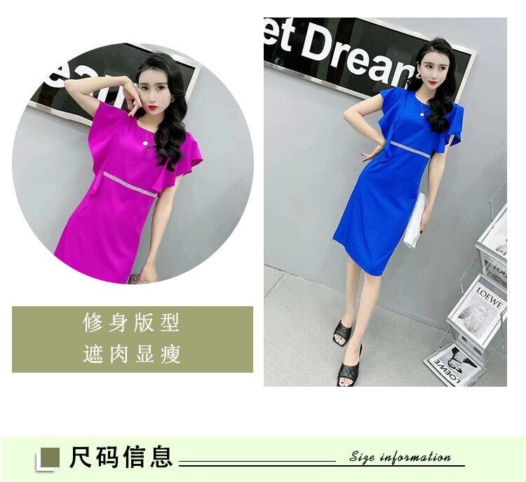 サマースタイルルーズラウンドネックウェストドレス 薄手 大きめサイズ 夏物 Oネック ミックスインファッション90688668163