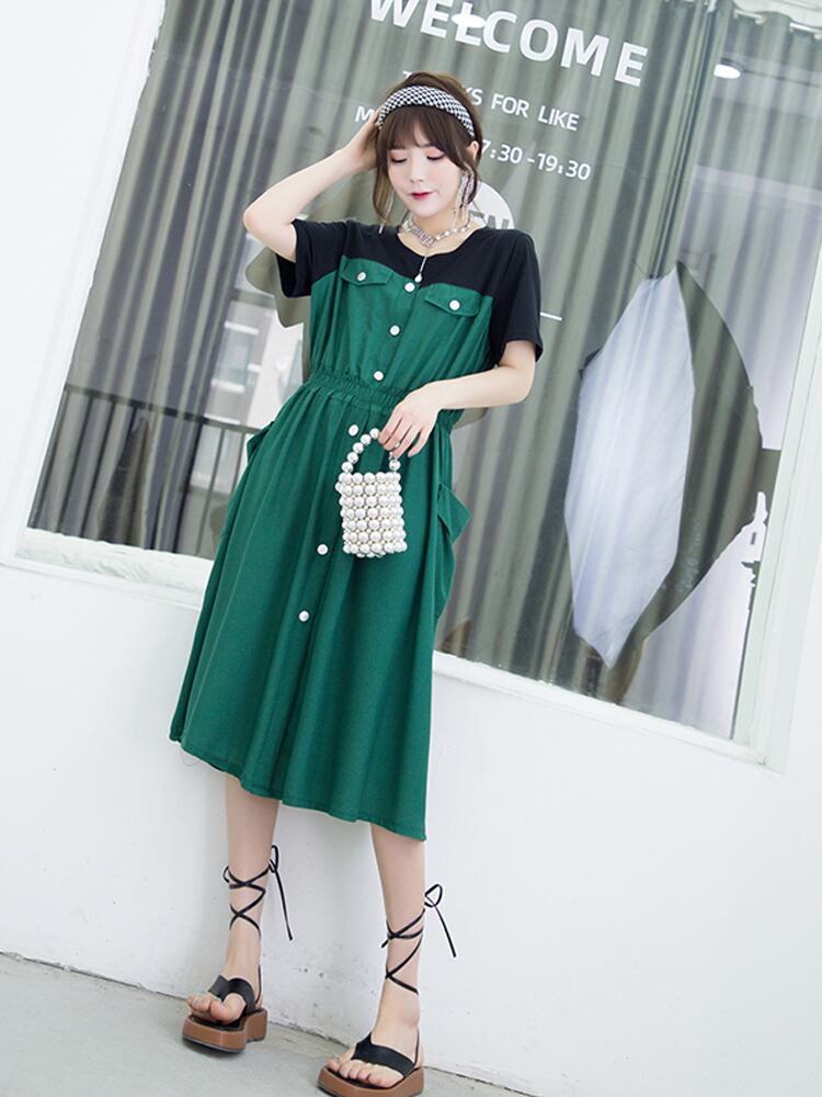 サマードレス カラースカート 大きめサイズ 夏物 ミックスインファッション26828405709