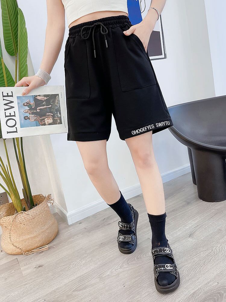 サマーハイウェストウェストギャザー刺繍プリントカジュアルショーツ 大きめサイズ 夏物 ブルマー ミックスインファッション5164573518
