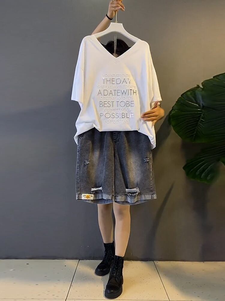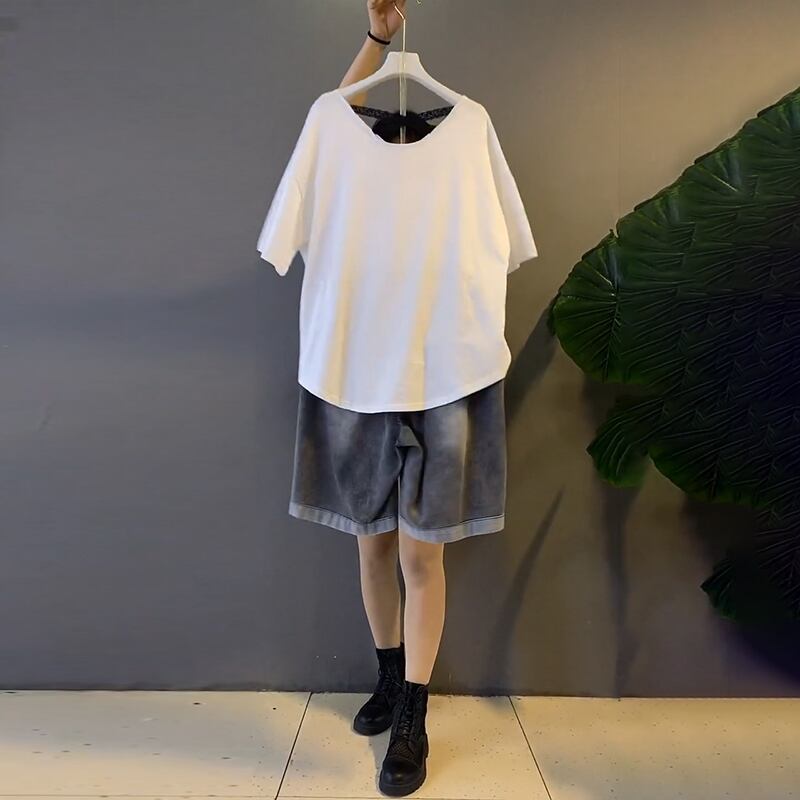 Tシャツ トップス サマーカジュアルルーズショーツ 大きめサイズ 夏物 ブルマー ミックスインファッション20522491346