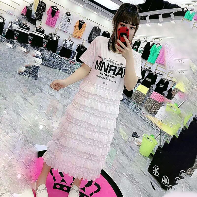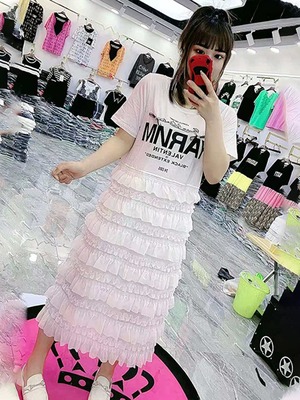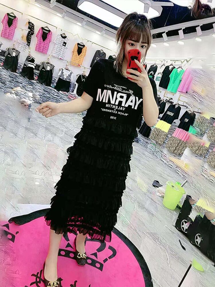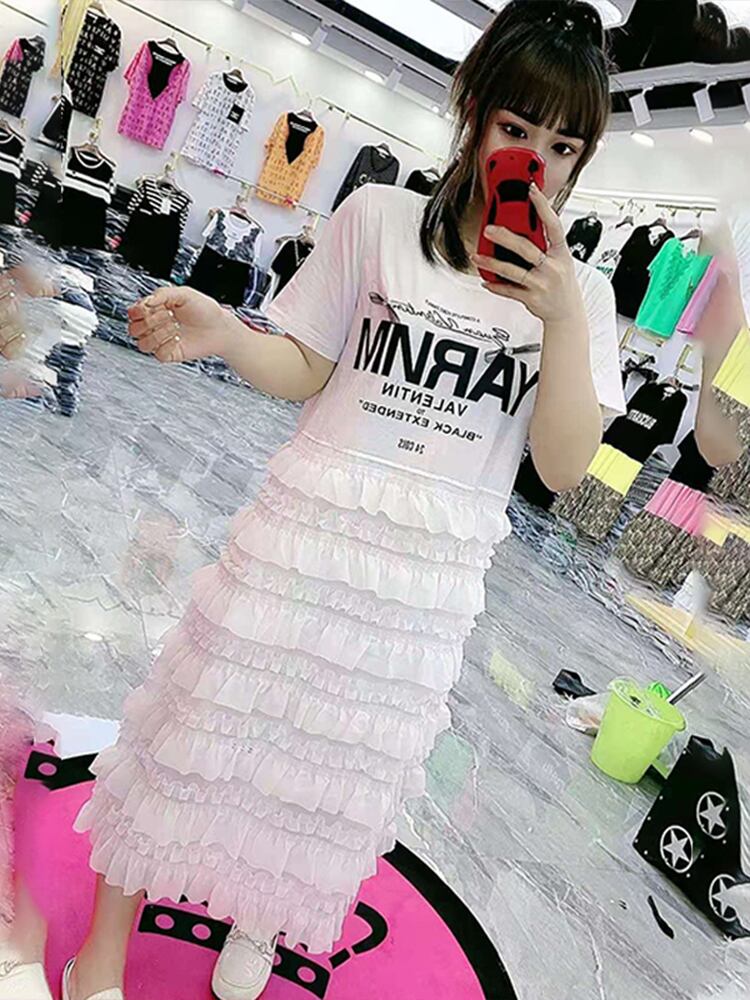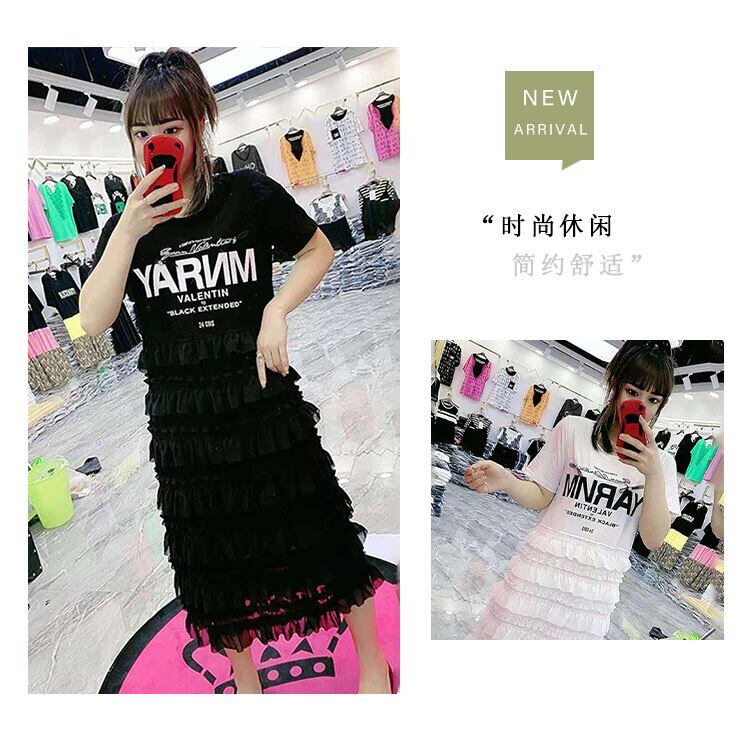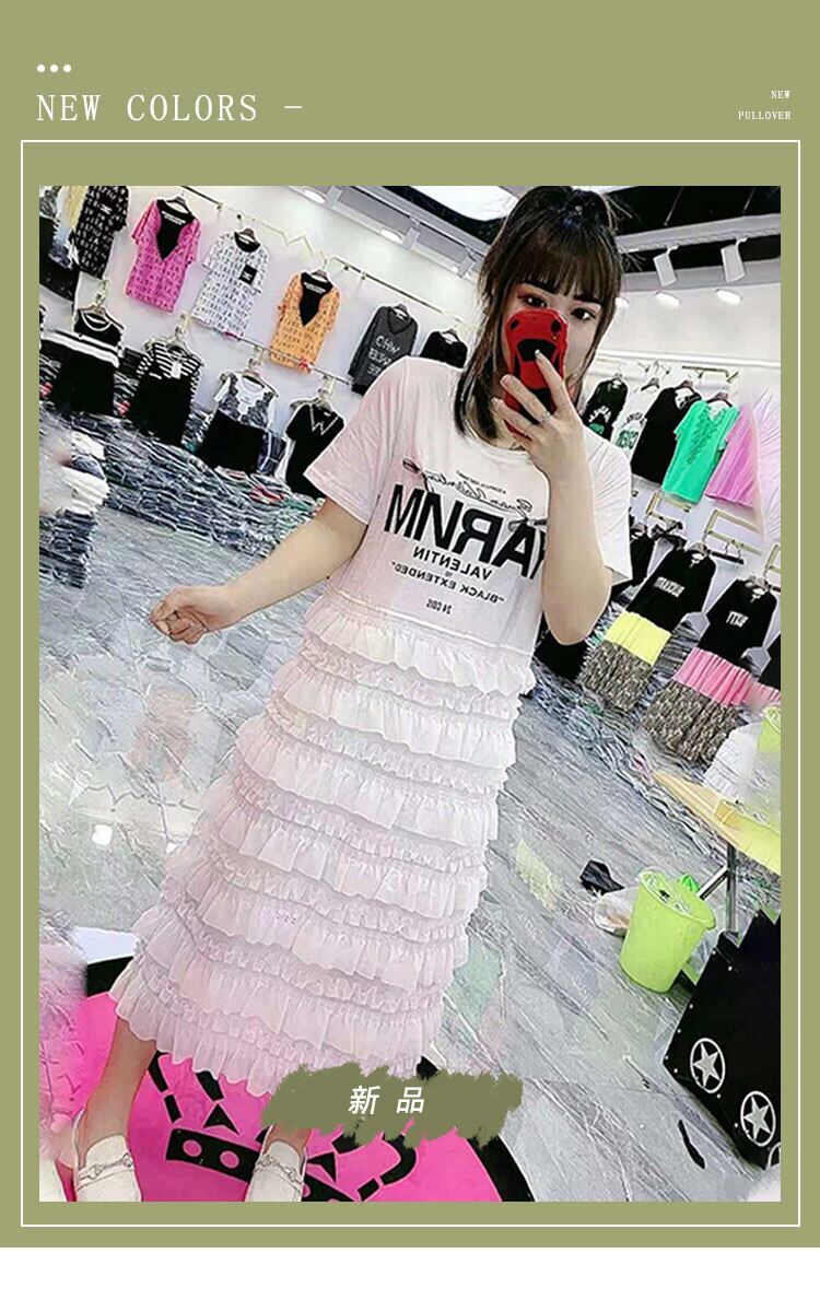 ルーズ薄手ラウンドネックドレス 半袖スリーブスカート ショート ハーフスリーブ 大きめサイズ Oネック ミックスインファッション13821751125