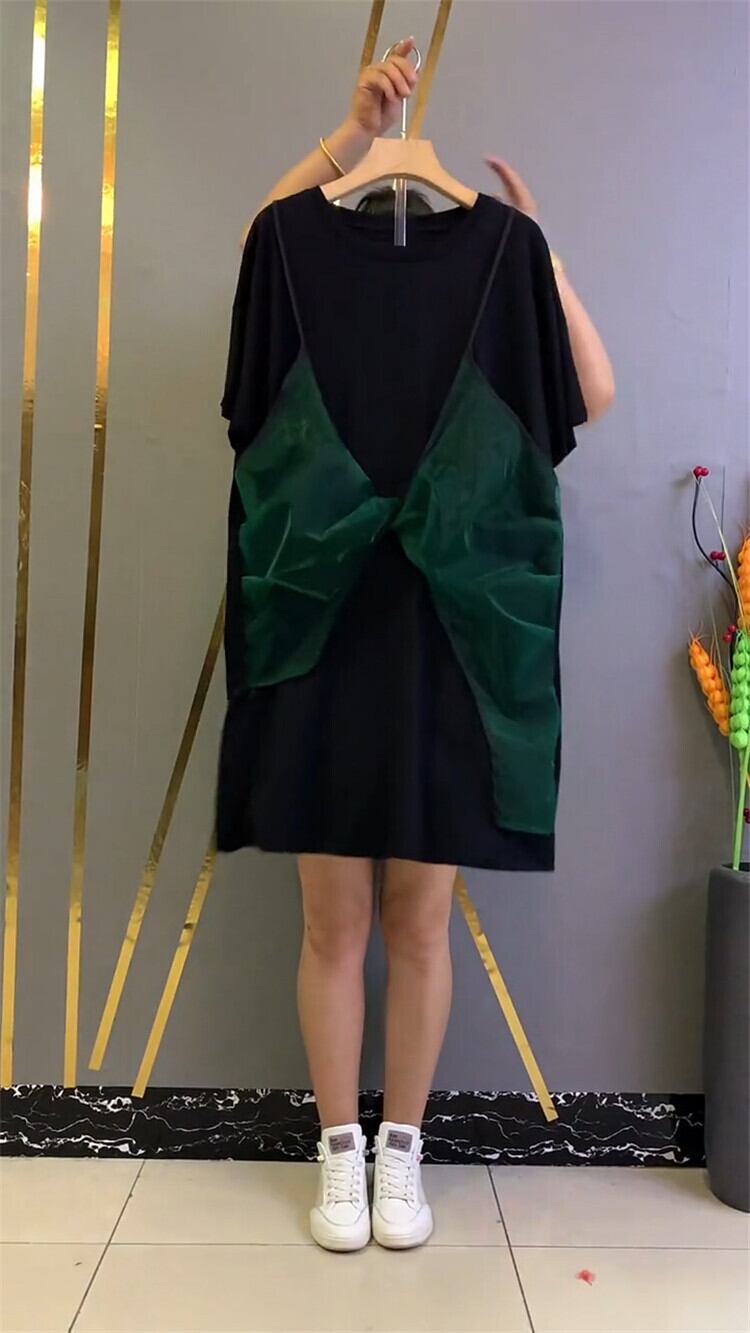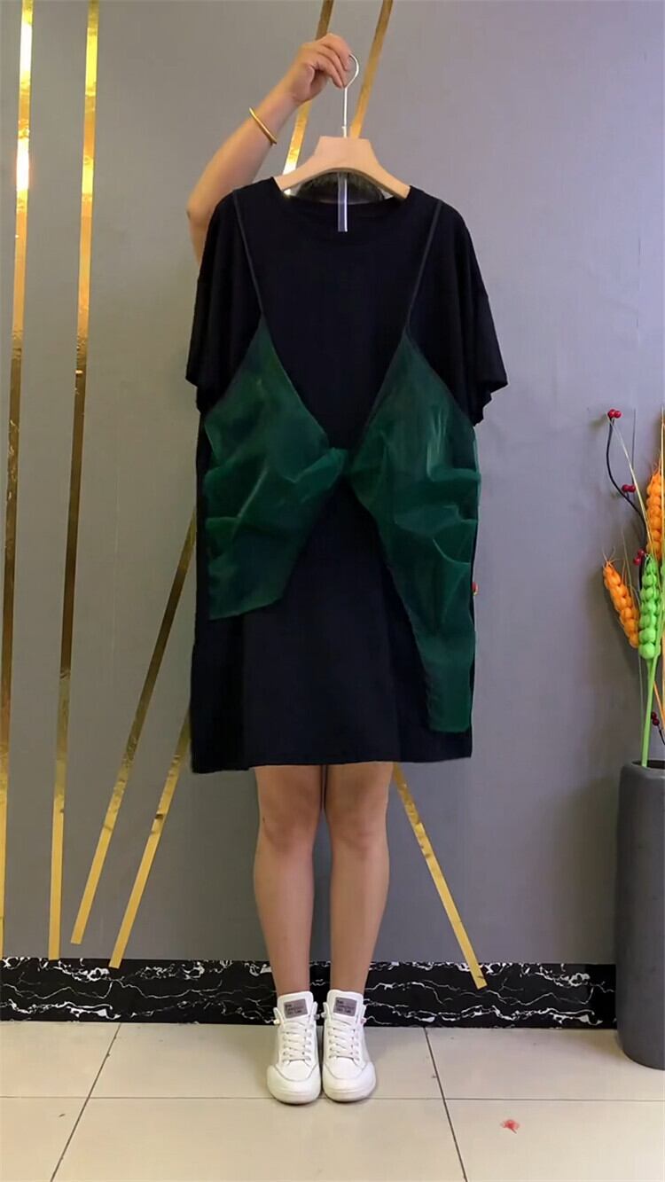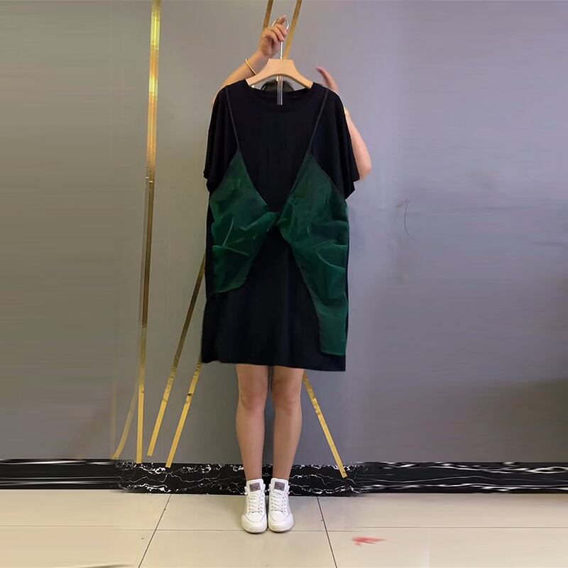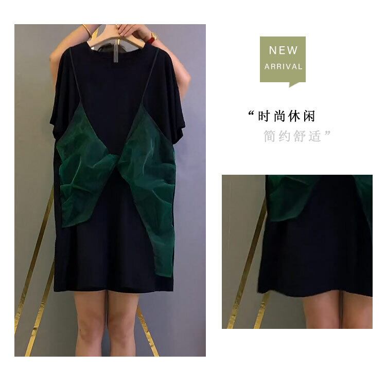 サマーラウンドネックドレス 半袖スリーブルーズ薄手スカート ショート ハーフスリーブ 大きめサイズ 夏物 Oネック ミックスインファッション70361580503