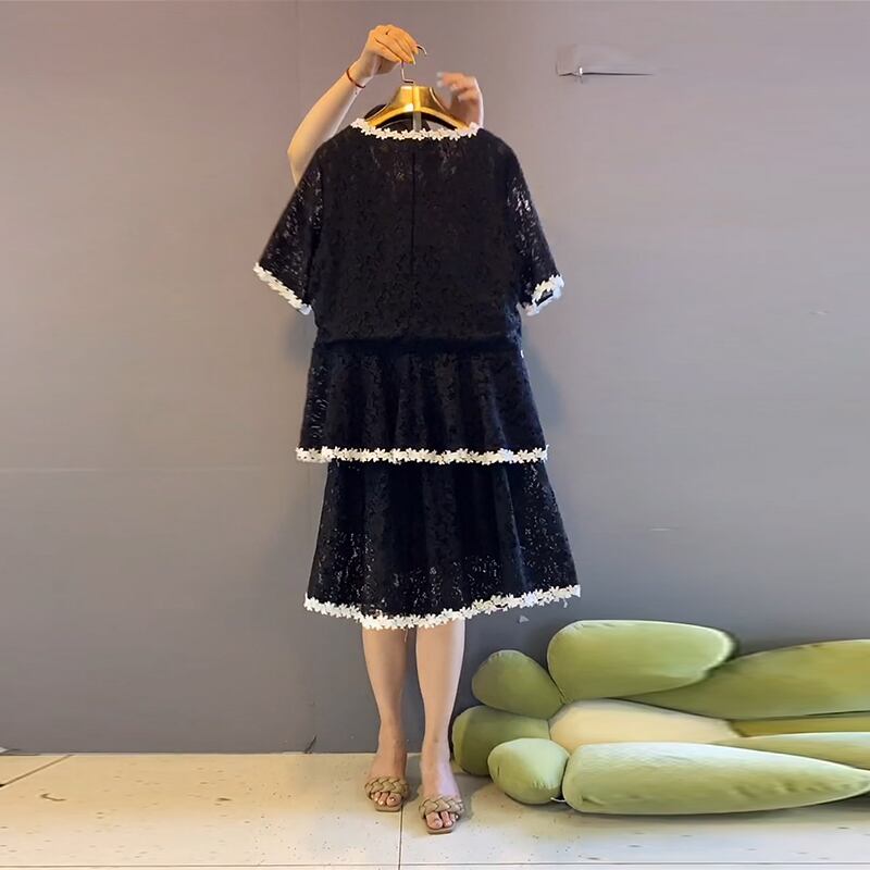 サマーレースブラウス スカート 薄手 大きめサイズ 夏物 ミックスインファッション70831313105