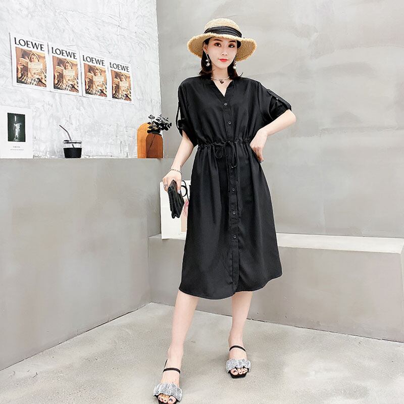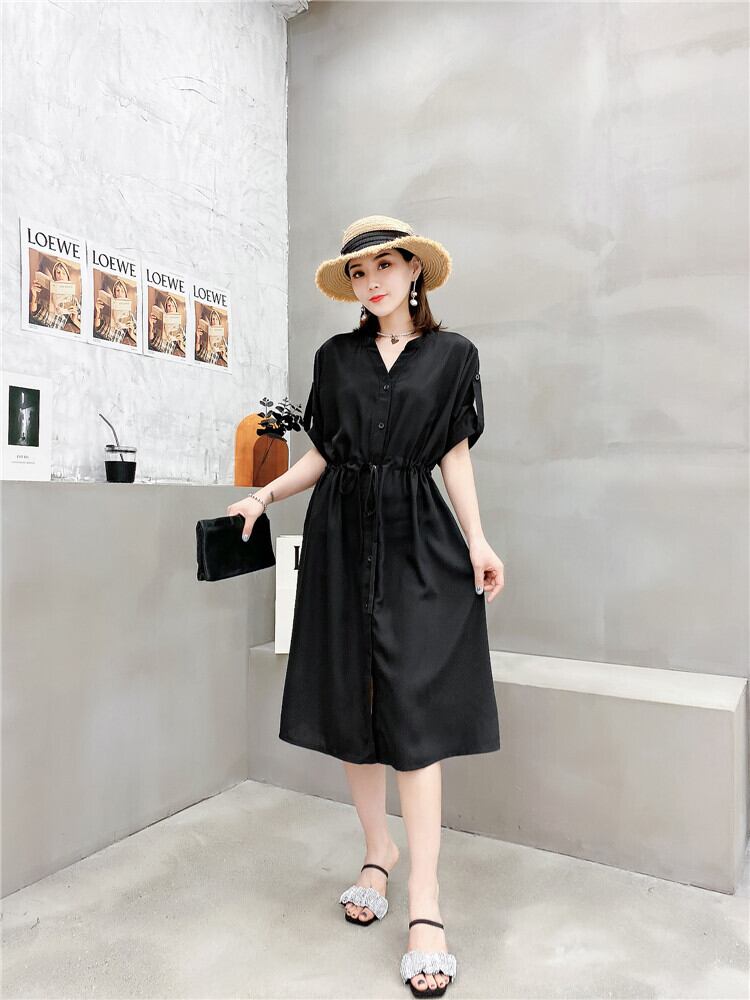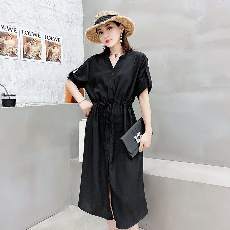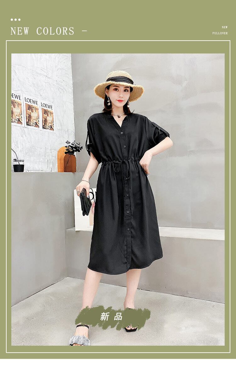 サマースタイルVネックギャザーウェスト薄手ドレス 大きめサイズ 夏物 ヨーロピアン ミックスインファッション57164385785