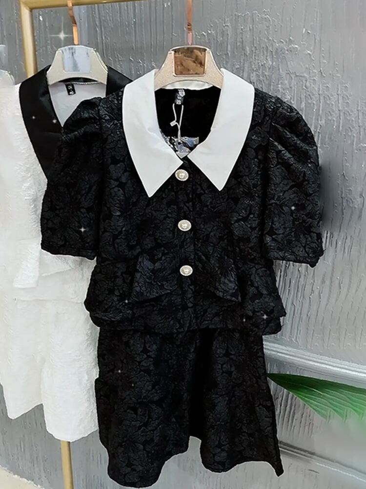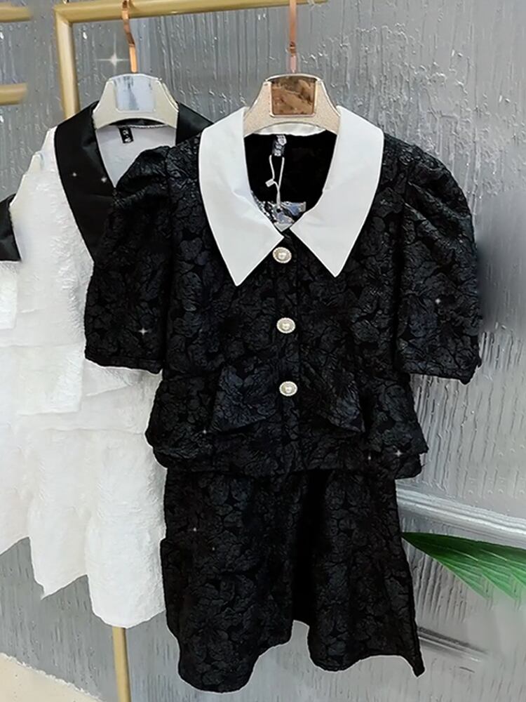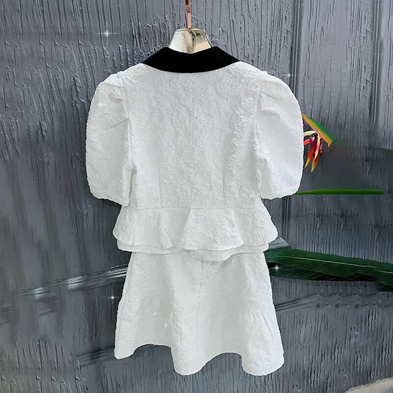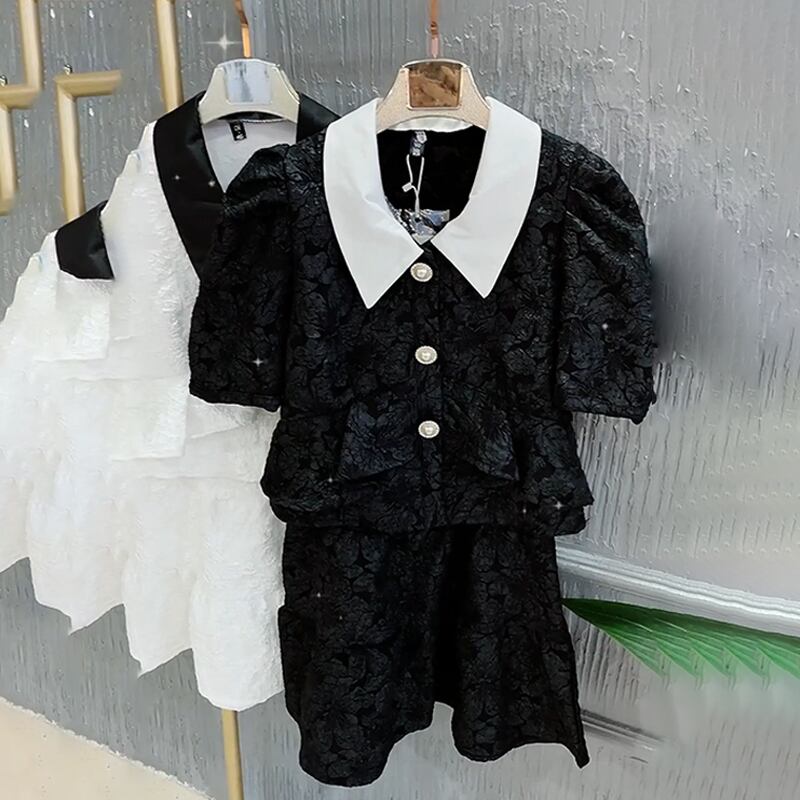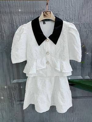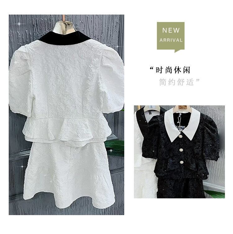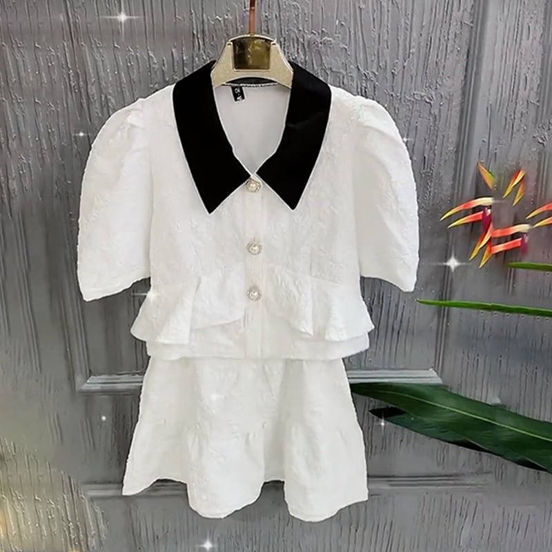 スタンダードラッフル薄手ブラウス Aラインショートスカート レトロ 大きめサイズ エレガント ミックスインファッション39352046268