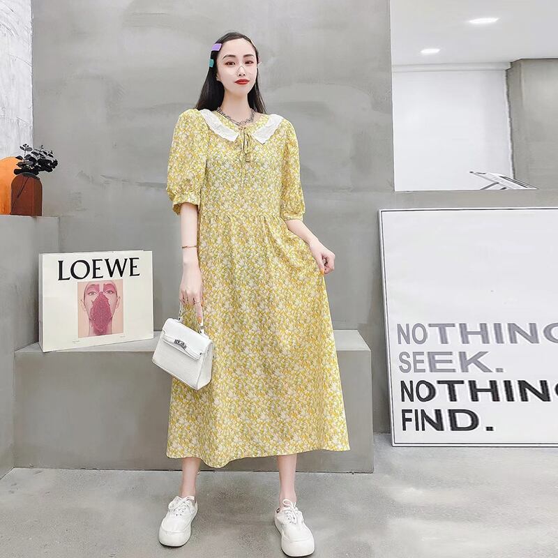 ショートサマー薄手フローラルスカート 半袖 ハーフスリーブ 大きめサイズ 夏物 花柄 ミックスインファッション675601215