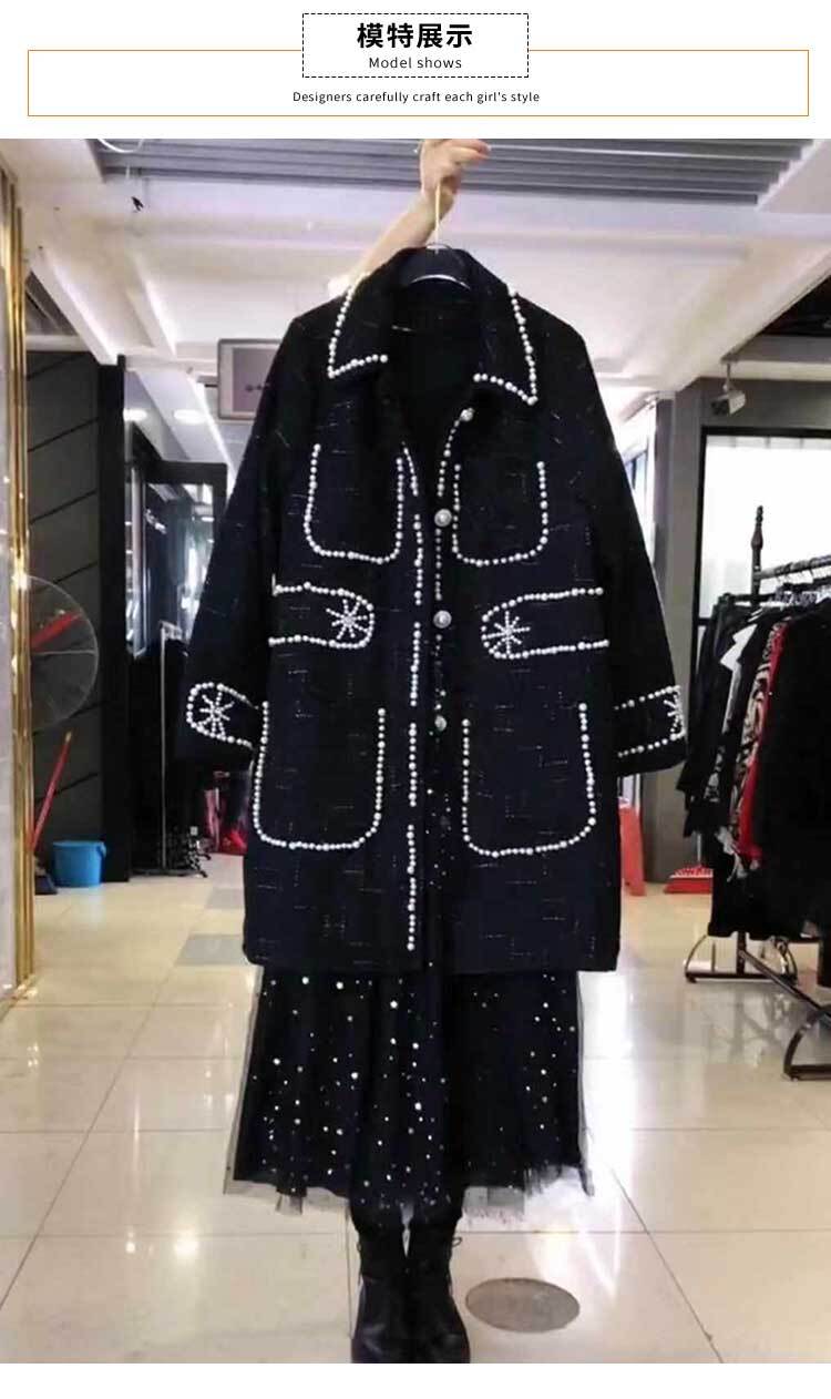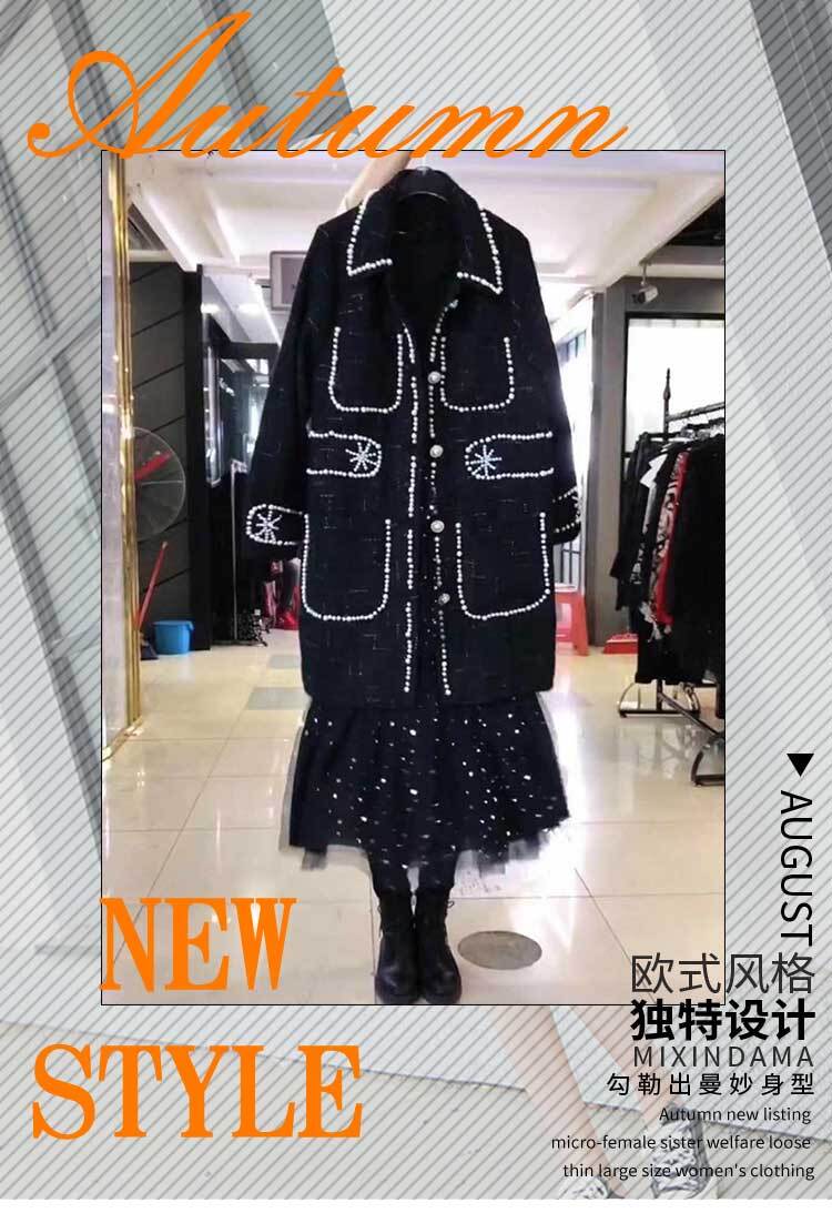 スプリングオータムツィードコート 薄手ドレス 大きめサイズ 春物 秋物 ミックスインファッション10453526889