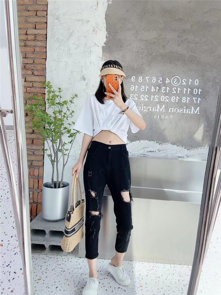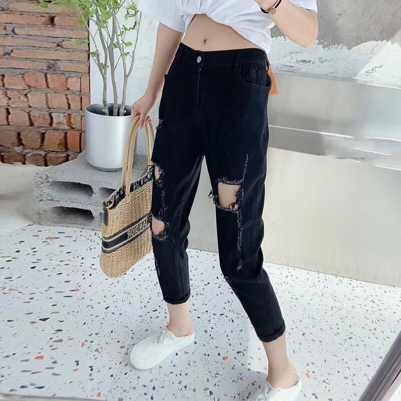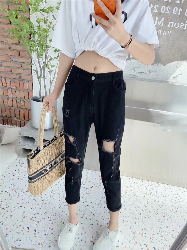 パンツ サマースタイルブラックジーンズ 大きめサイズ 夏物 ミックスインファッション7506923951
