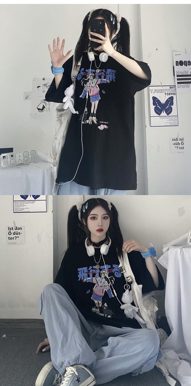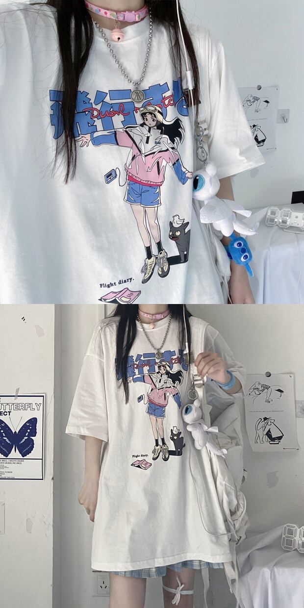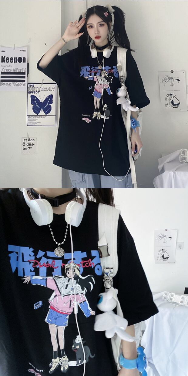 スタイルサマーカジュアルTシャツ プリント柄ルーズトップス 夏物 ケッペル59107510544