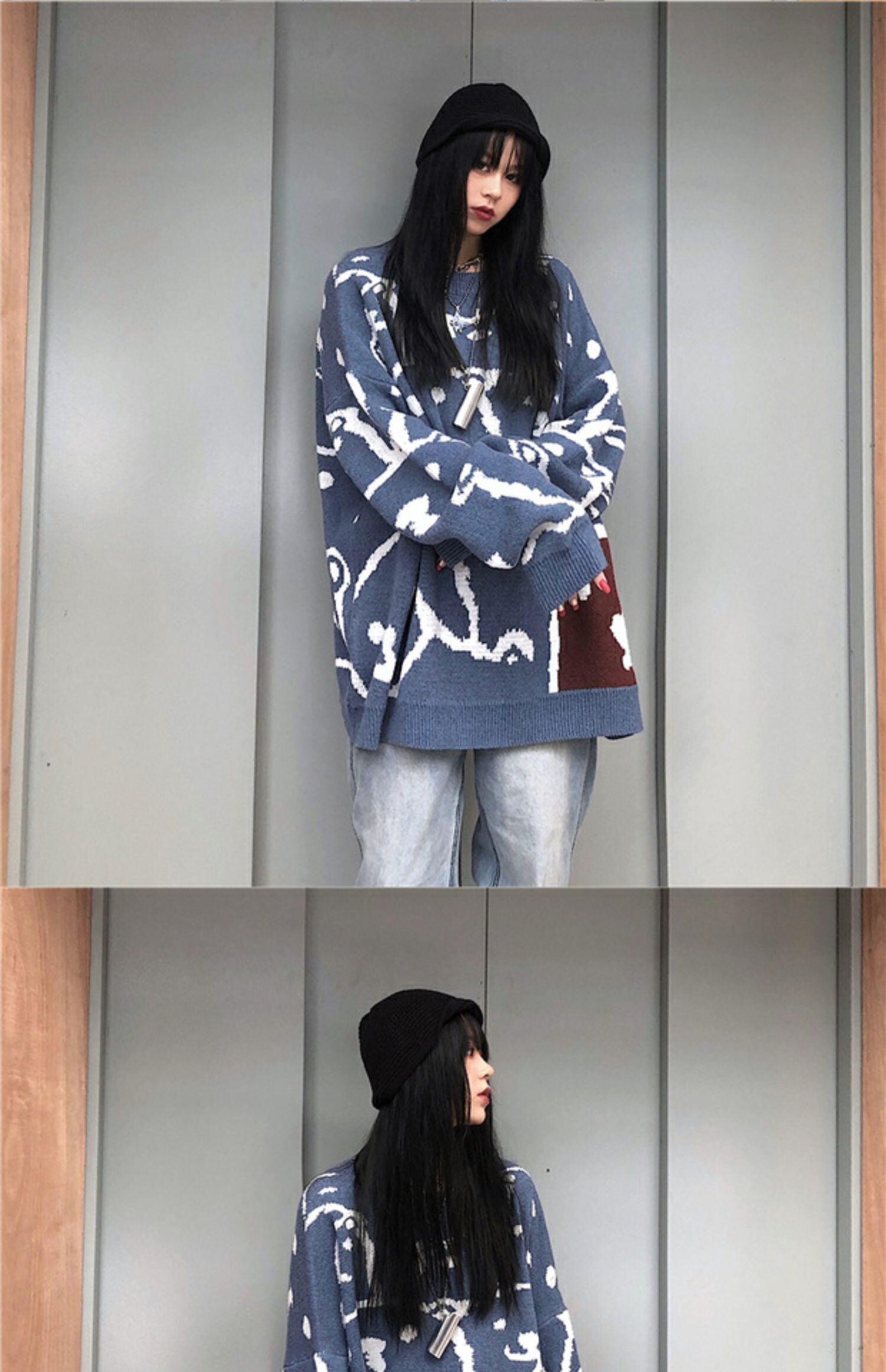 セーター レディースオータムウィンタールーズ長袖スリーブラウンドネックプルオーバー カジュアル ロング 大きめサイズ 秋物 冬物 Oネック ケッペル75105383981