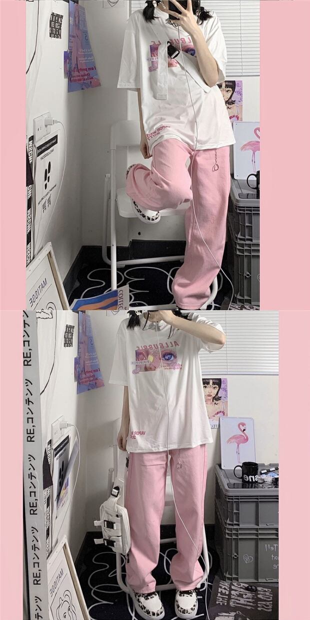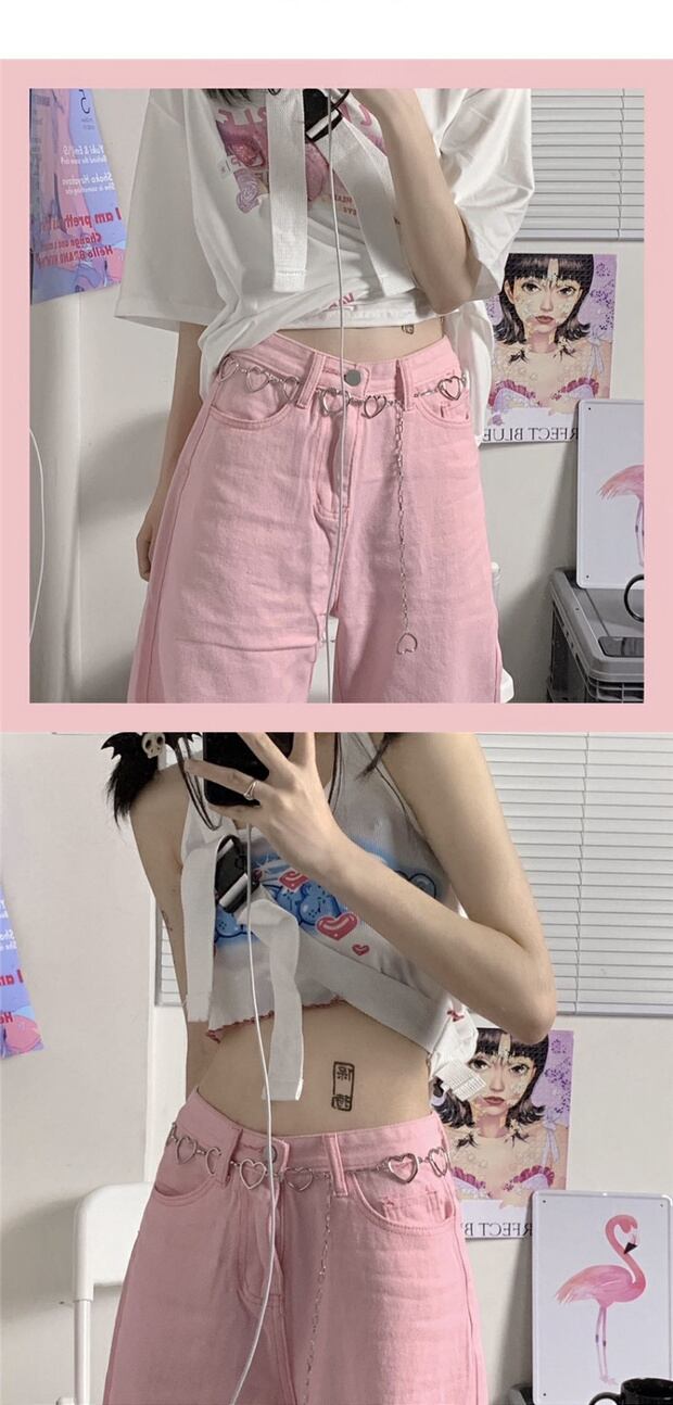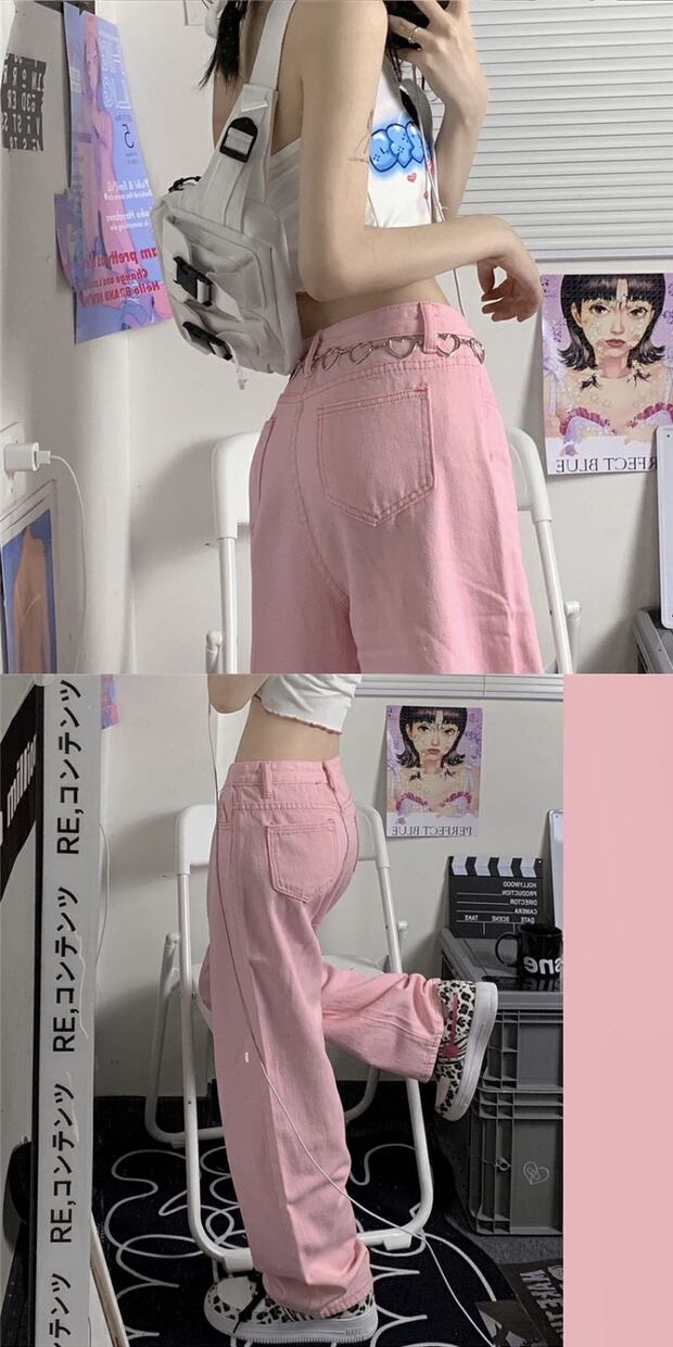 スタンダードカジュアルパンツ ジーンズ ピンク レトロ かわいい ケッペル61965577993