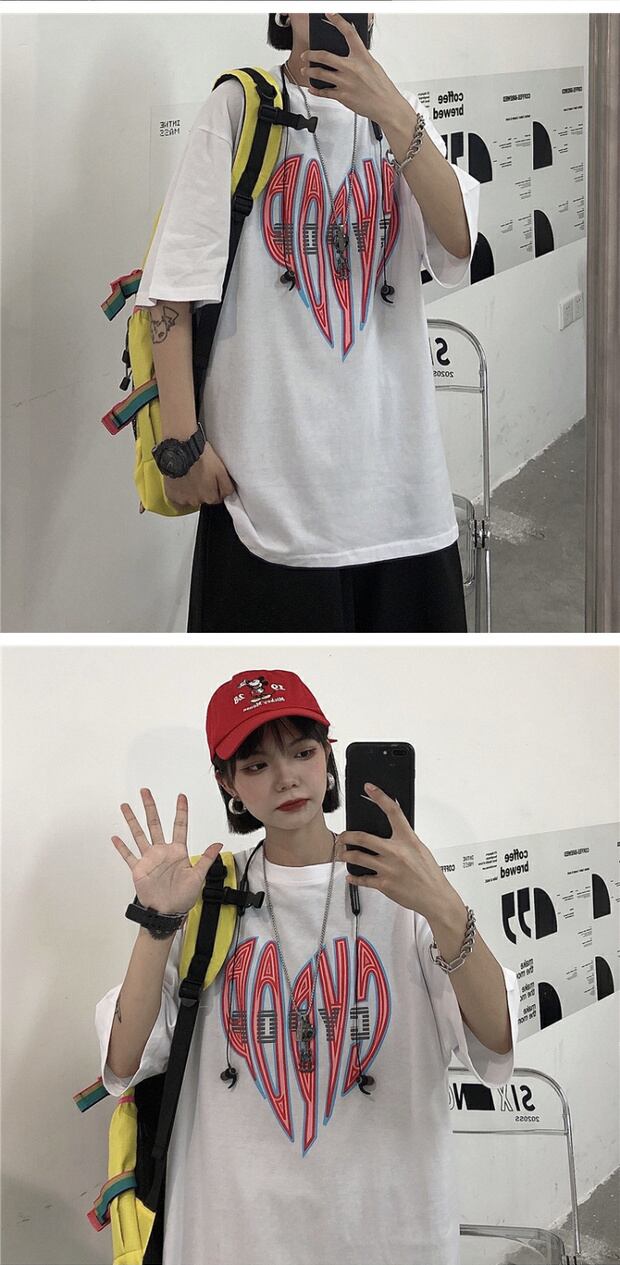 サマールーズプリント柄シャツ レディースカジュアルTシャツ ラウンドネック コットン 夏物 Oネック ケッペル43225905778