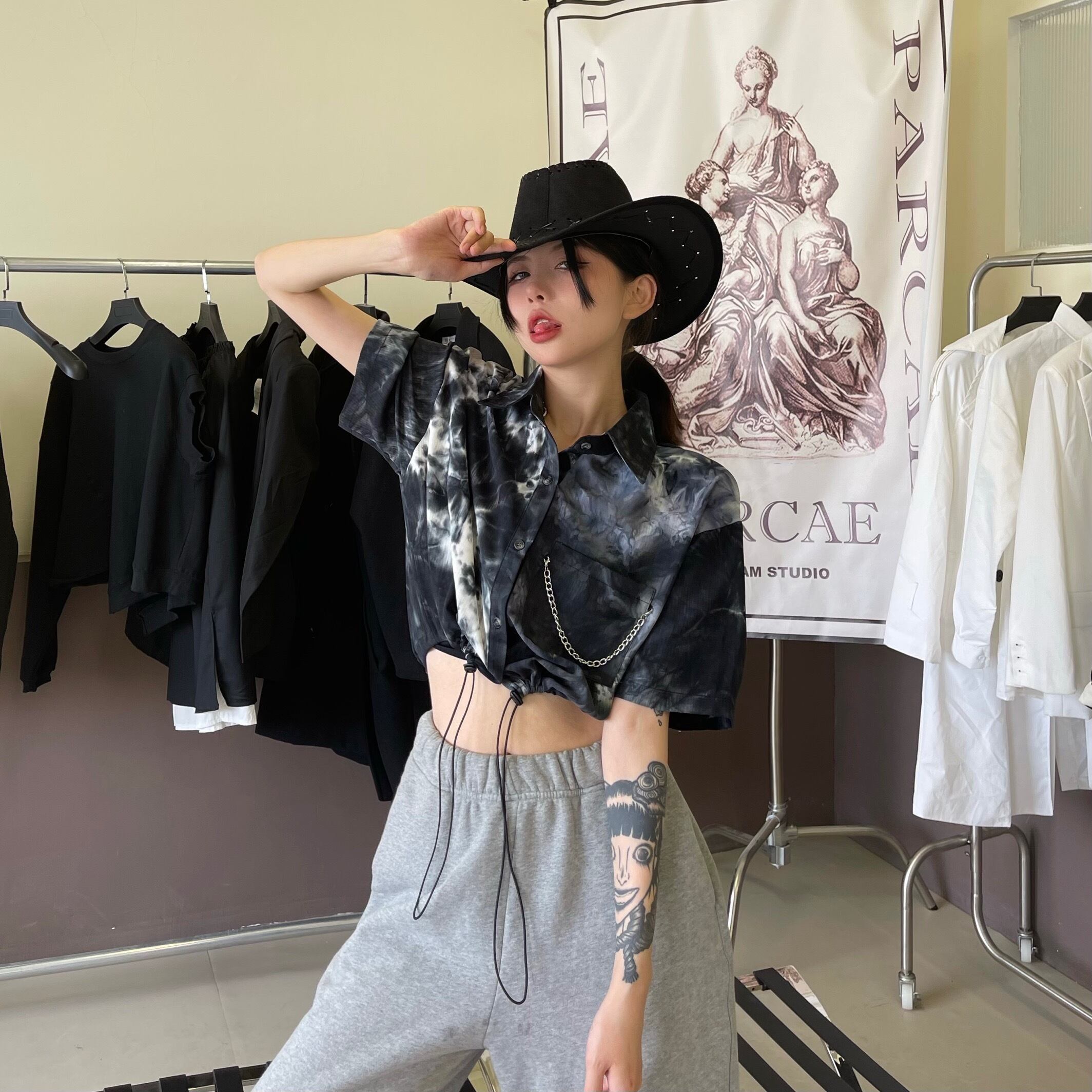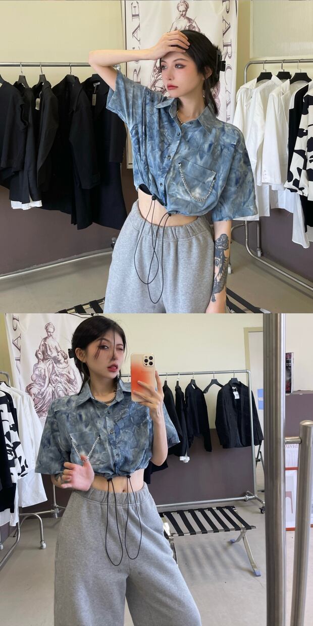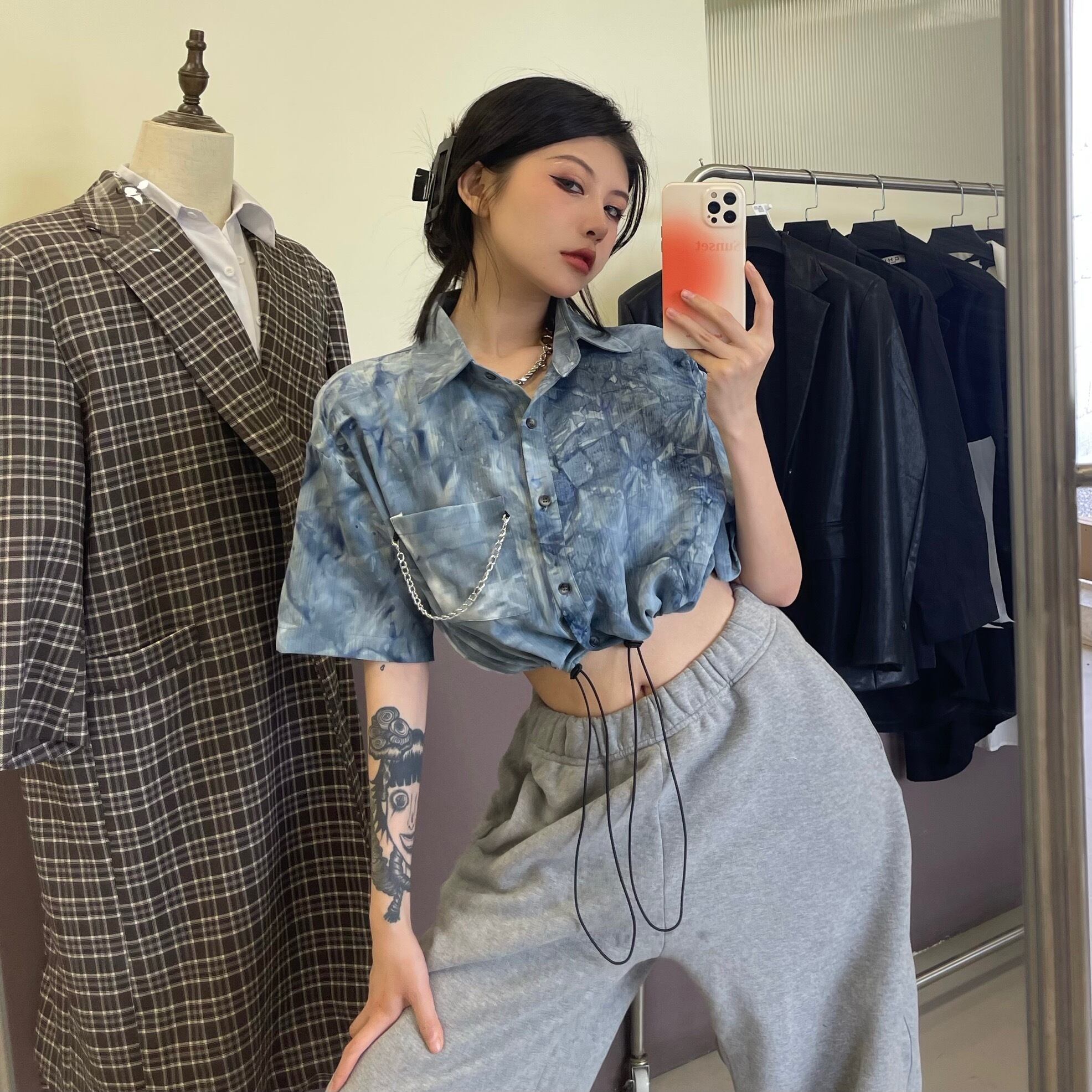 サマーショートカジュアルシャツ スタンダードスタイルハイウェストウェストTシャツ レトロ 夏物 ケッペル64891179476