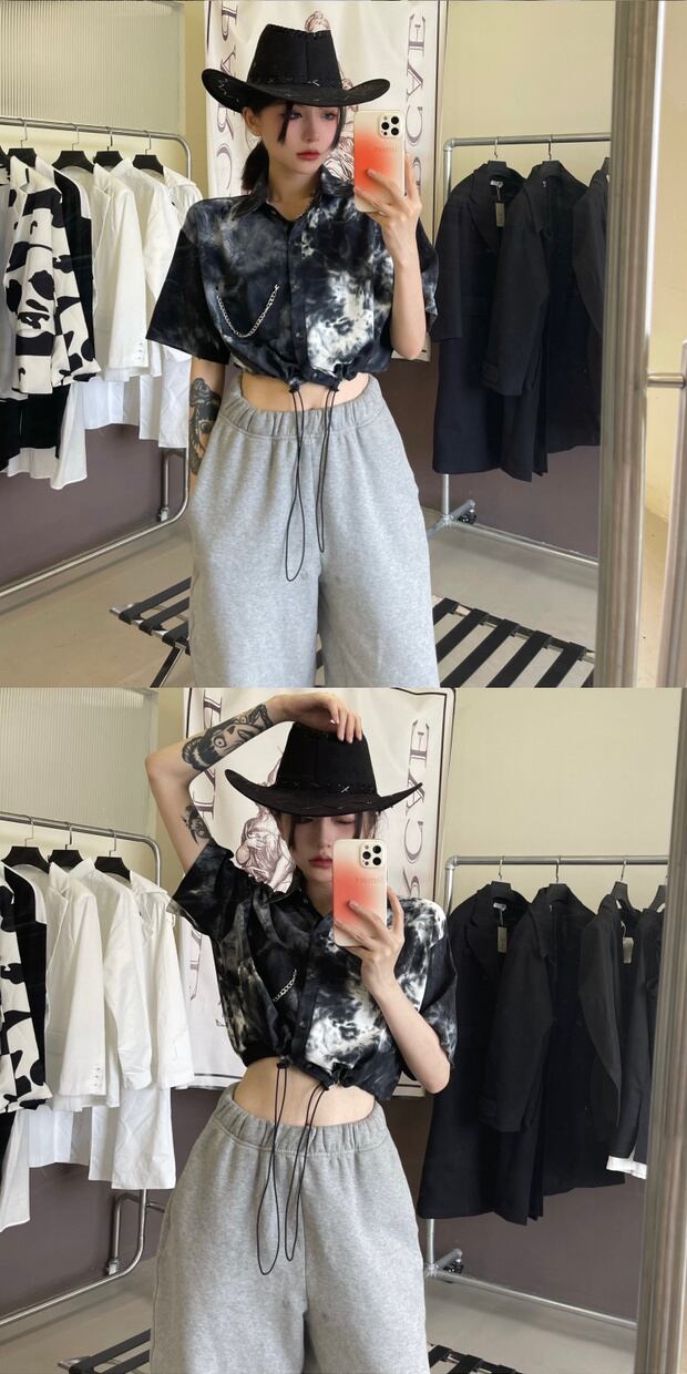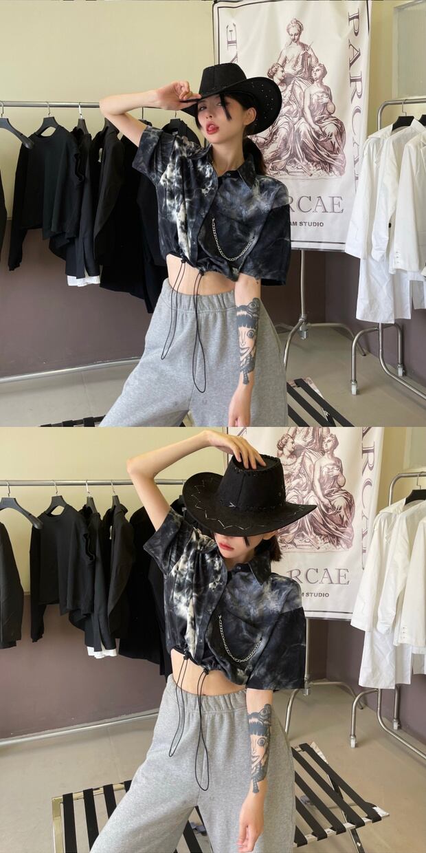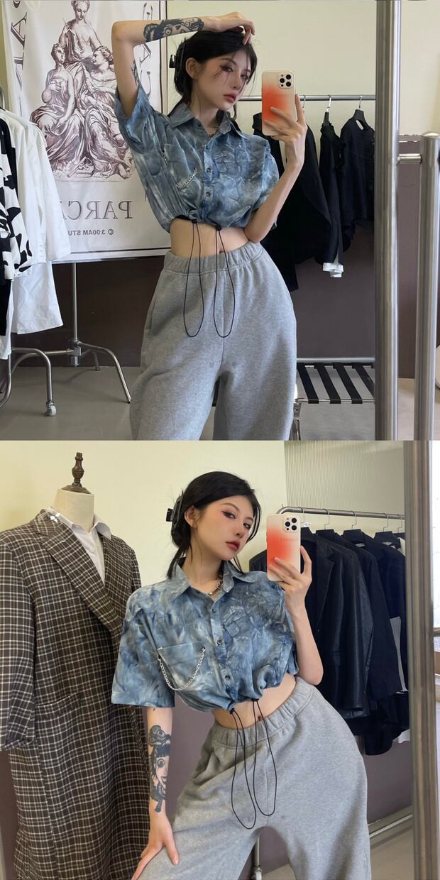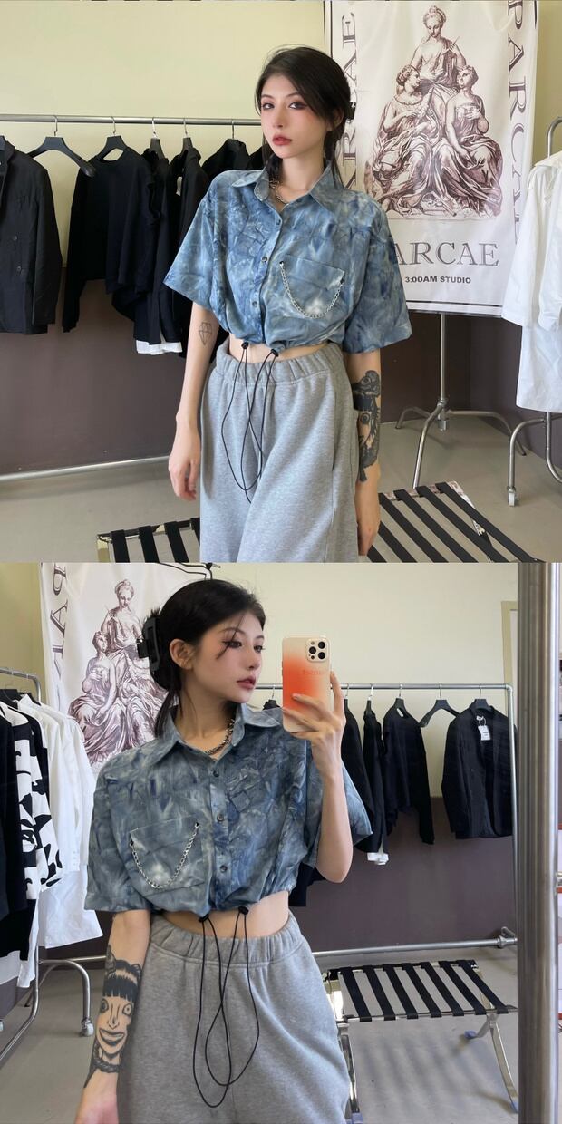 サマーショートカジュアルシャツ スタンダードスタイルハイウェストウェストTシャツ レトロ 夏物 ケッペル64891179476