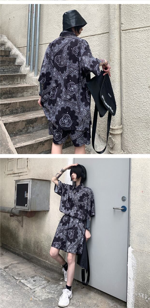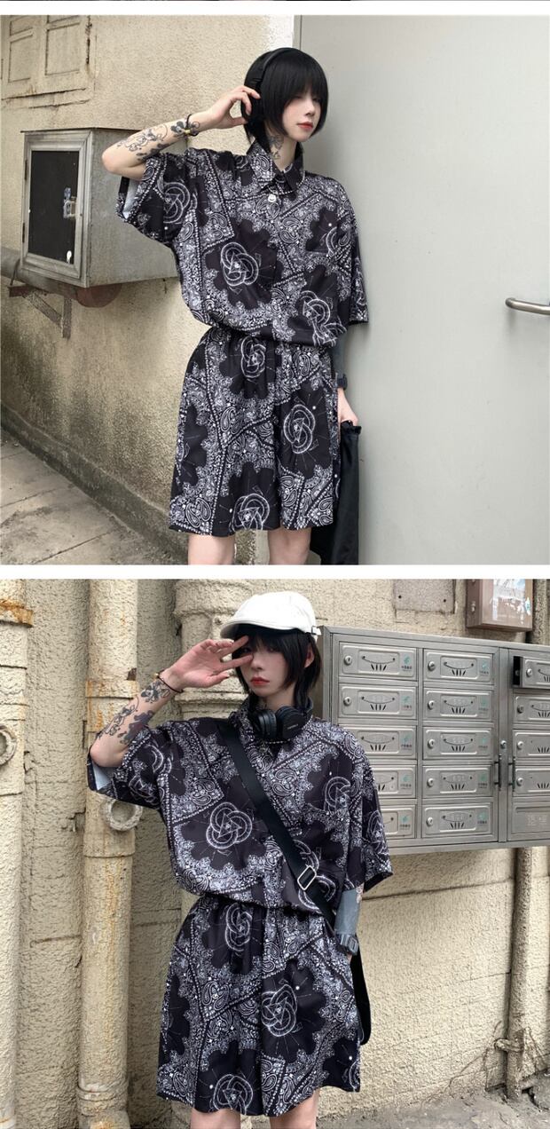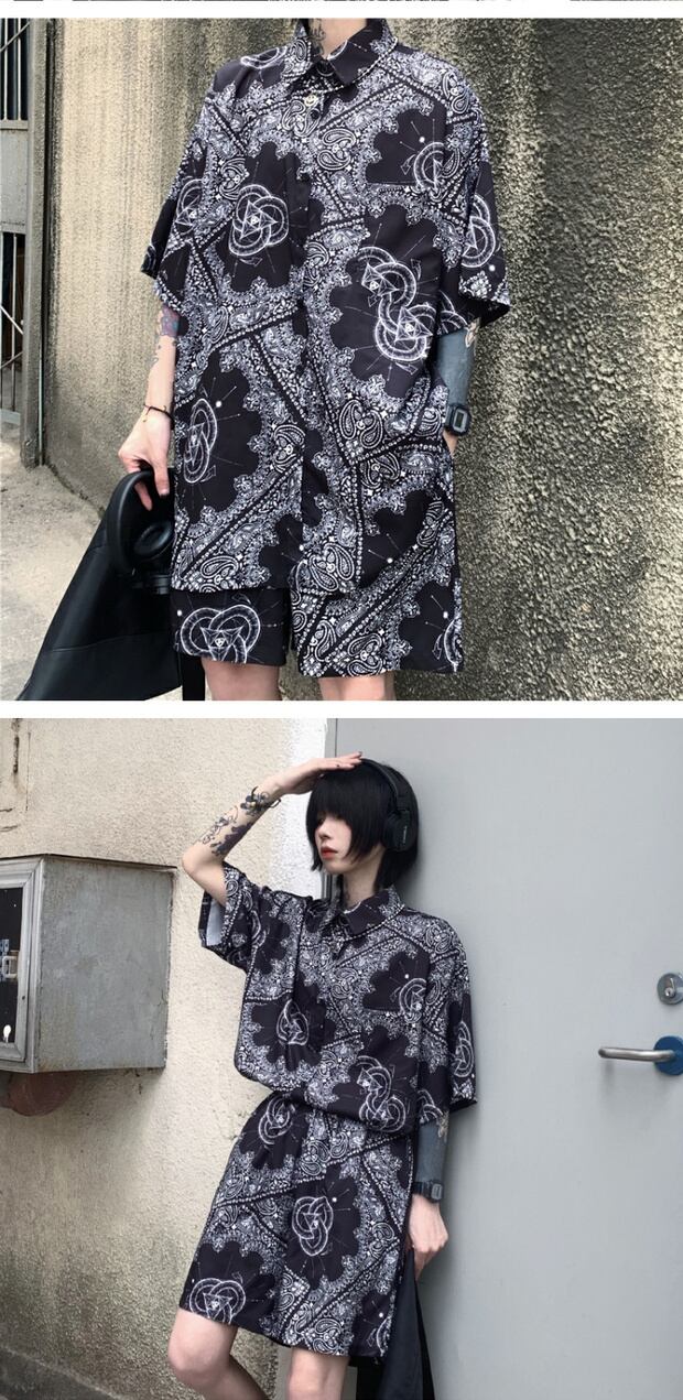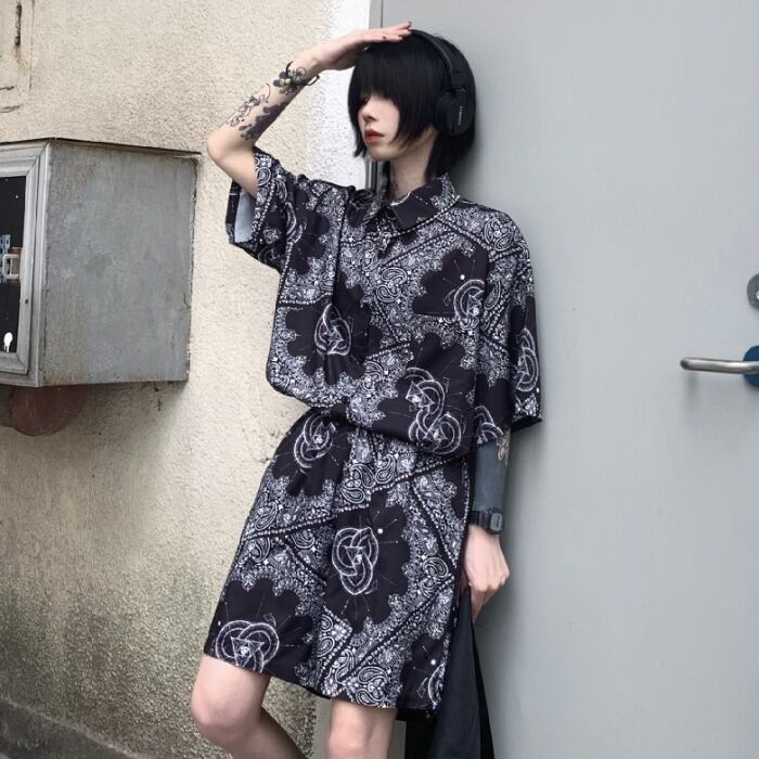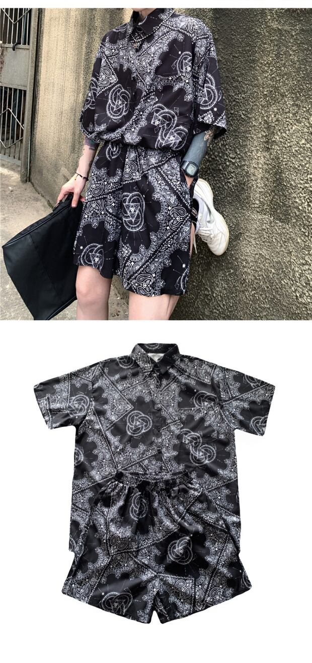 スタイルサマースタンダードFlowerデザイン プリント柄ルーズカジュアルTシャツ パンツ レトロ 大きめサイズ かわいい 夏物 フラワーデザイン ケッペル47599686041