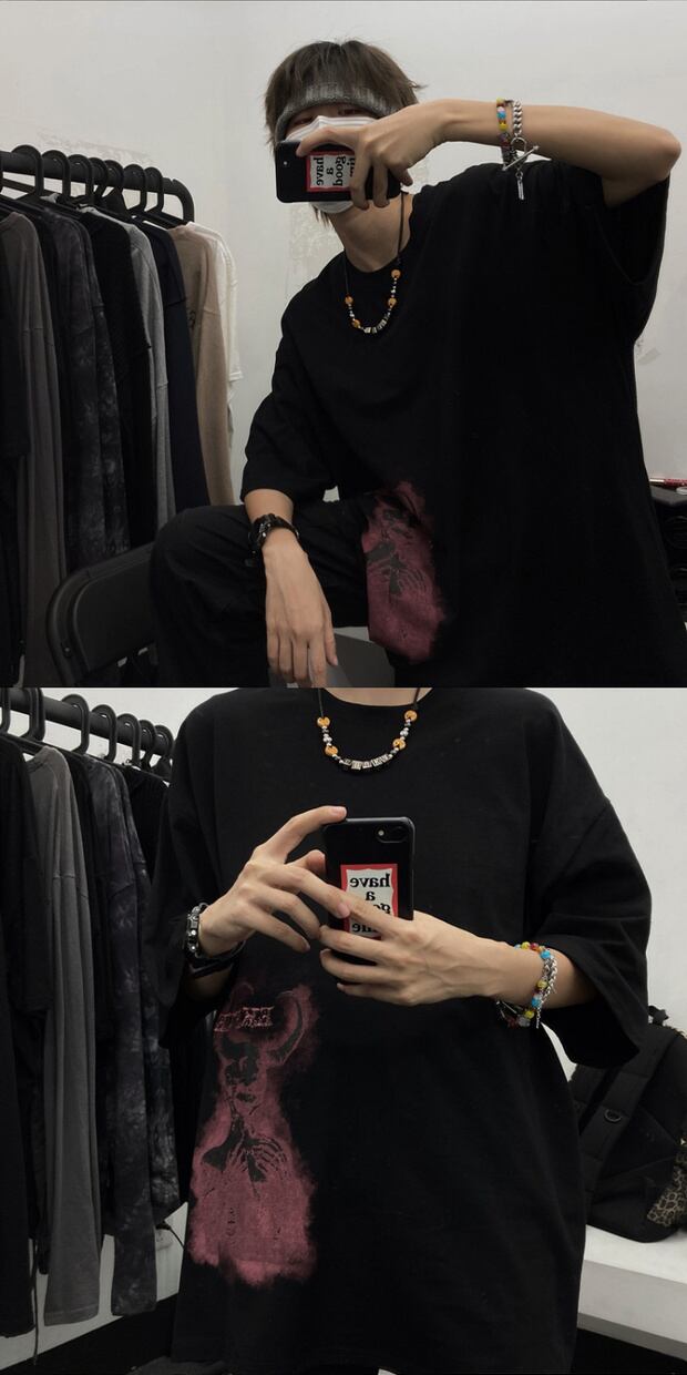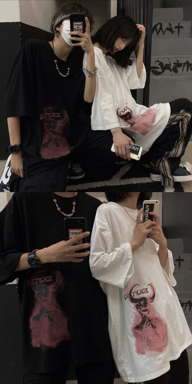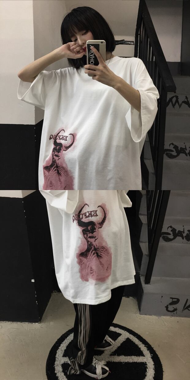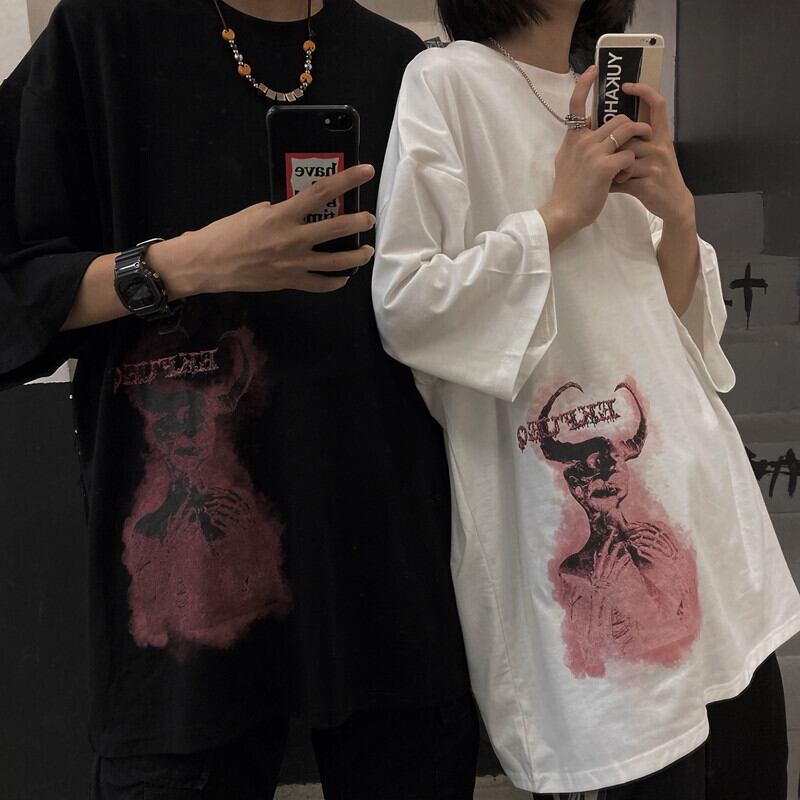 ダークサマースタンダードプリントTシャツ ルーズレディーストップス レトロ 大きめサイズ 夏物 ケッペル97312810171