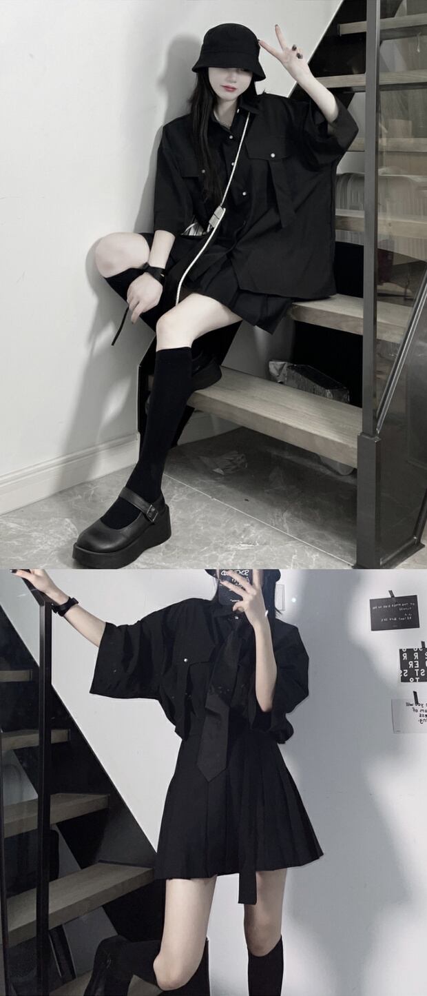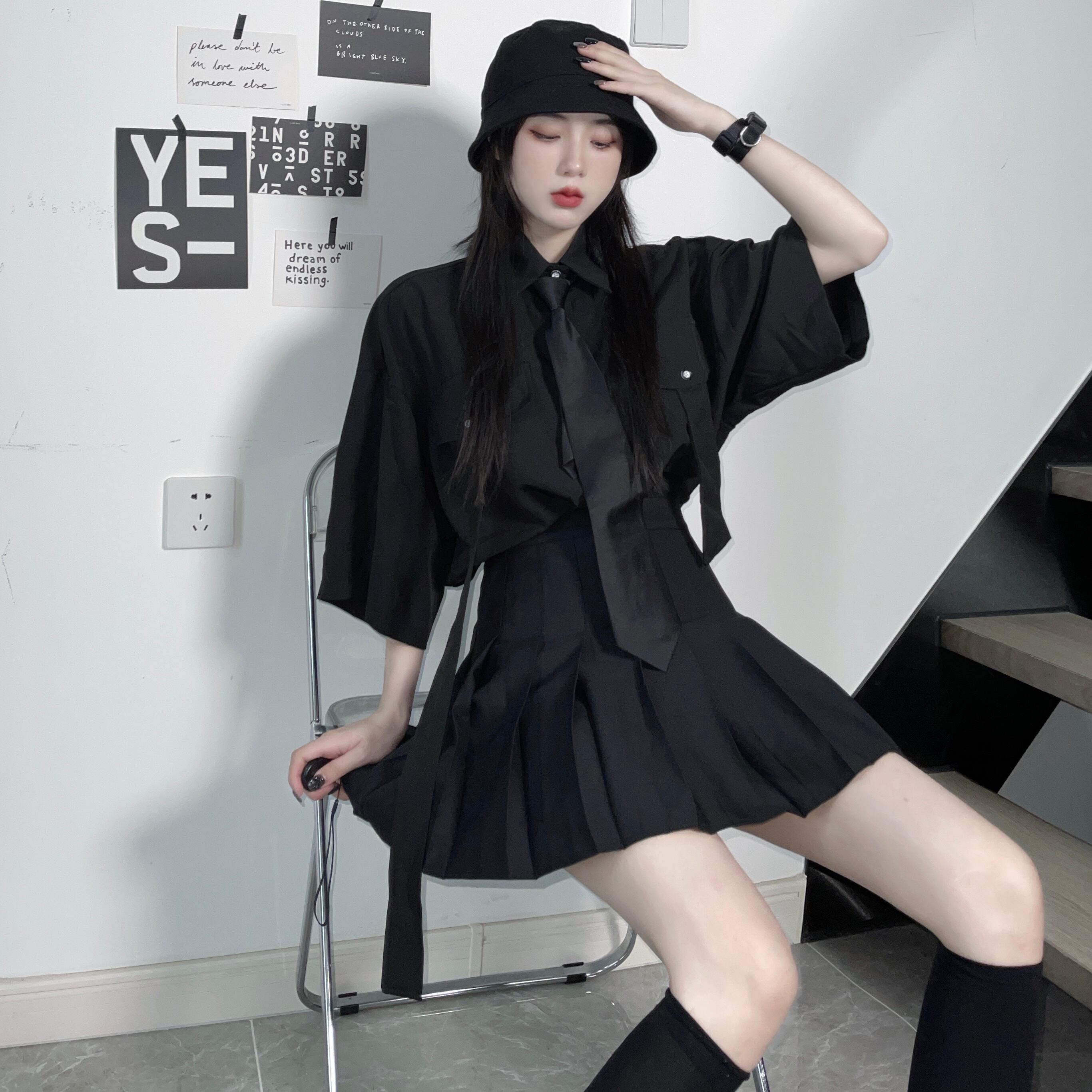 サマーダークカジュアルシャツ プリーツスカート Aラインミニ 夏物 ケッペル39508318692